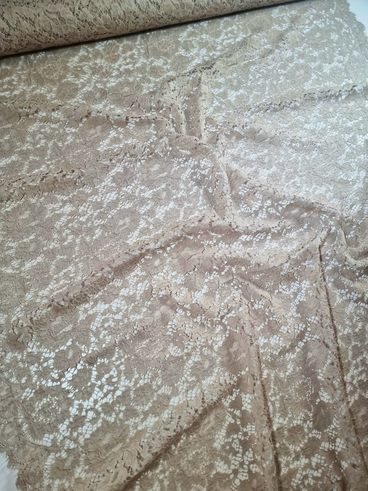 Dantela ajurată din fibre naturale – model floral, Bej / Cafea cu lapte