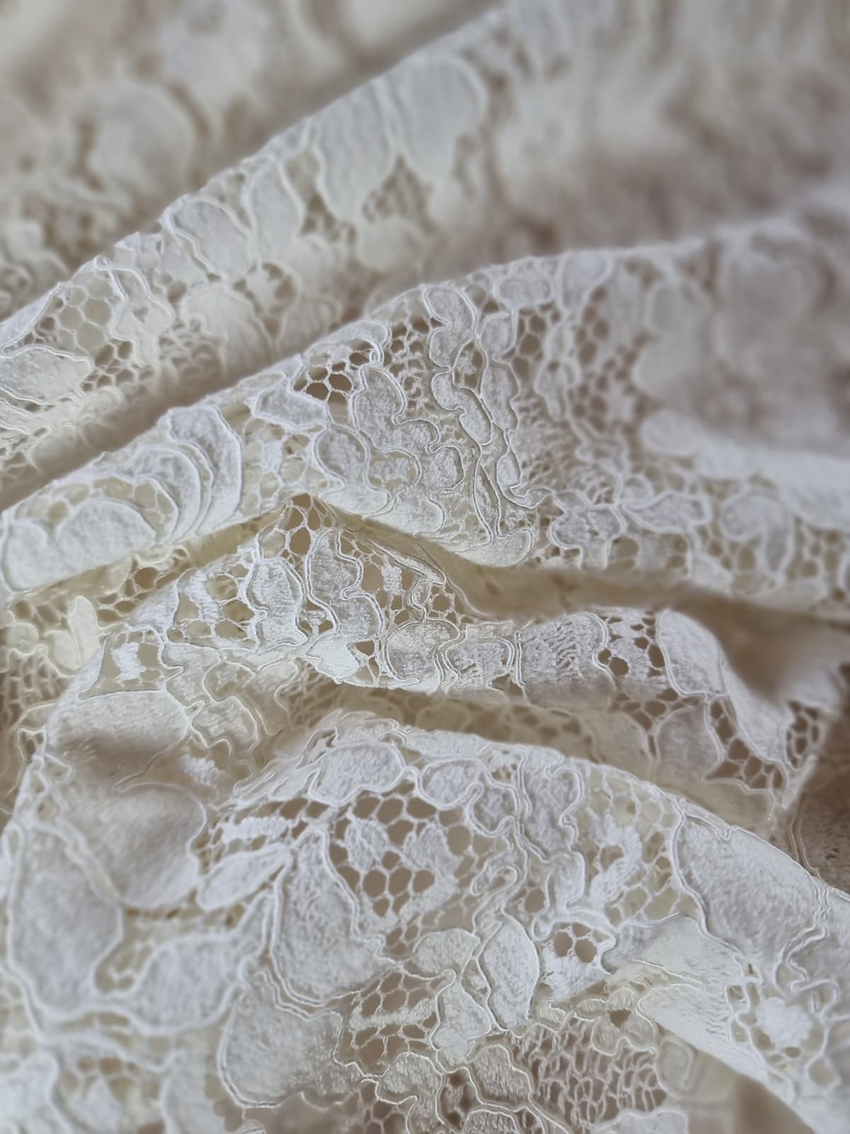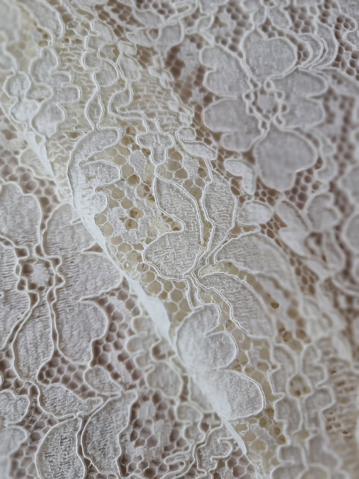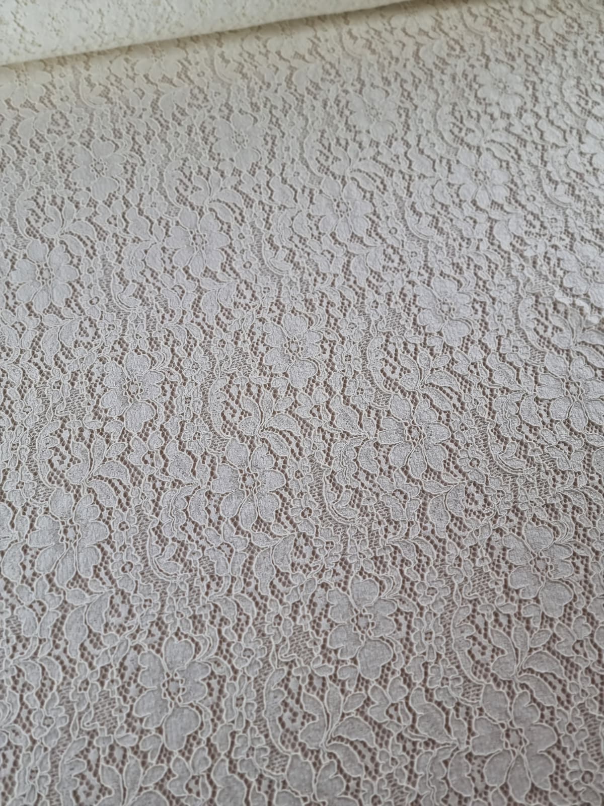 Dantela ajurată din fibre naturale – model floral, Ivoire