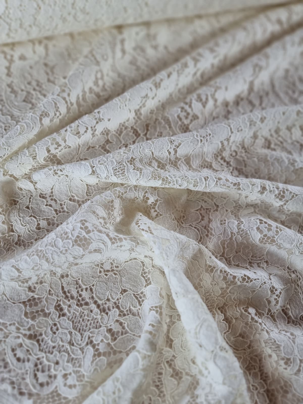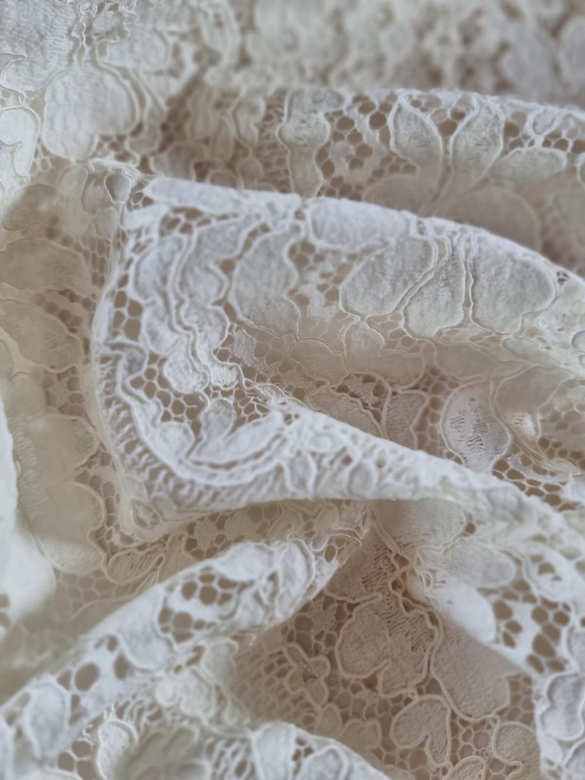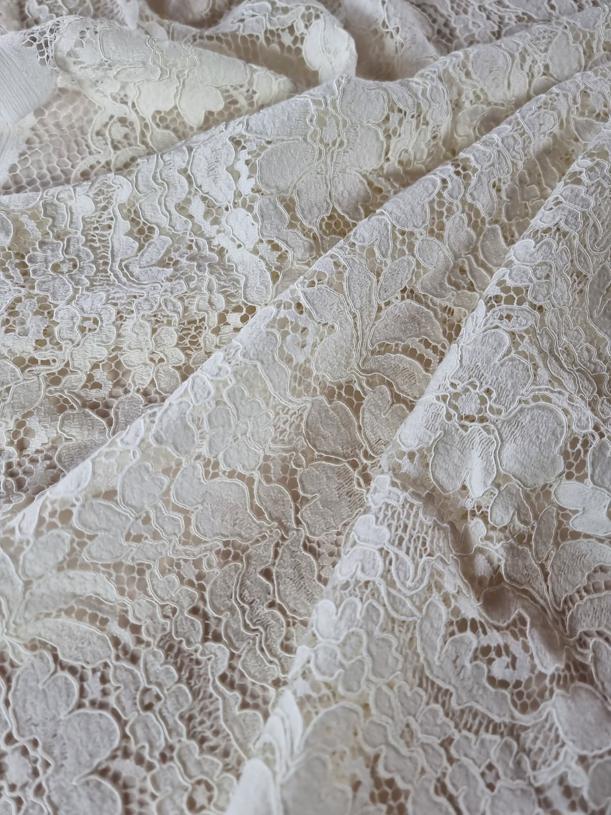 Dantela ajurată din fibre naturale – model floral, Ivoire