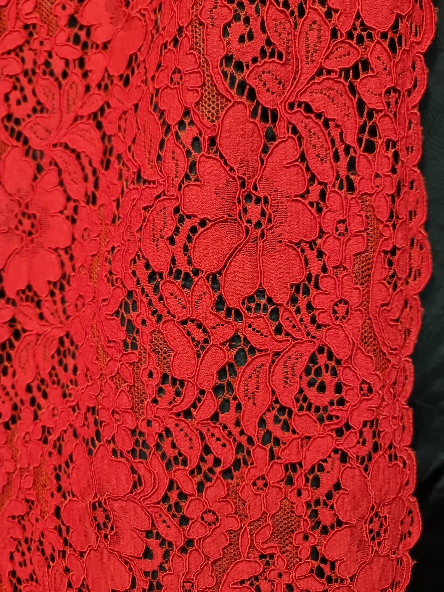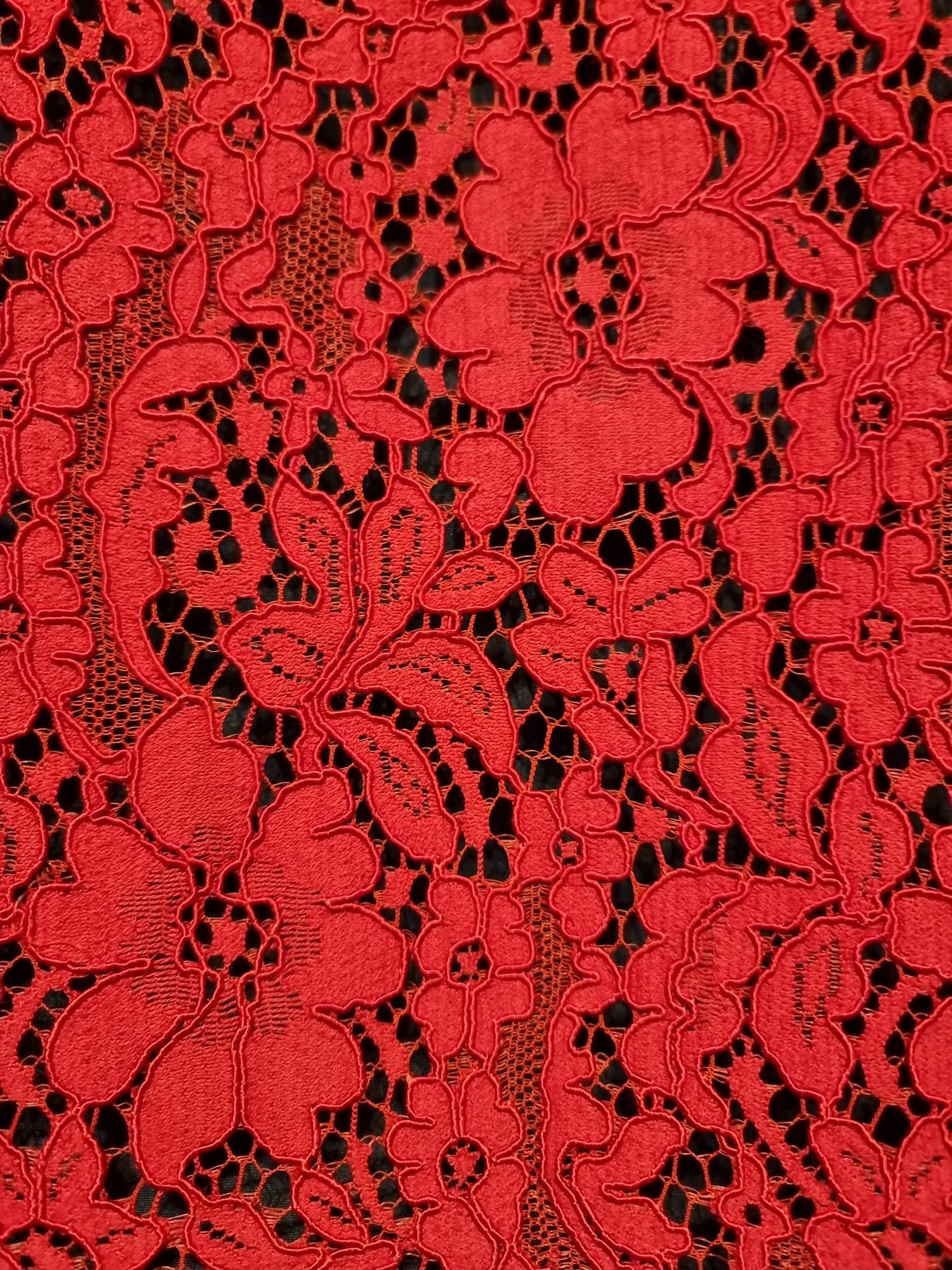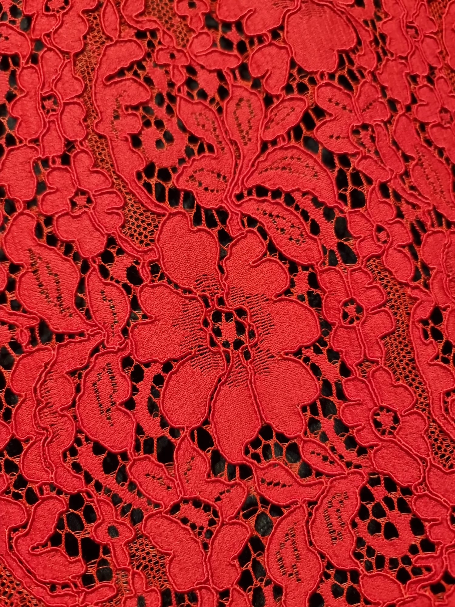 Dantela ajurată din fibre naturale – model floral, Rosu