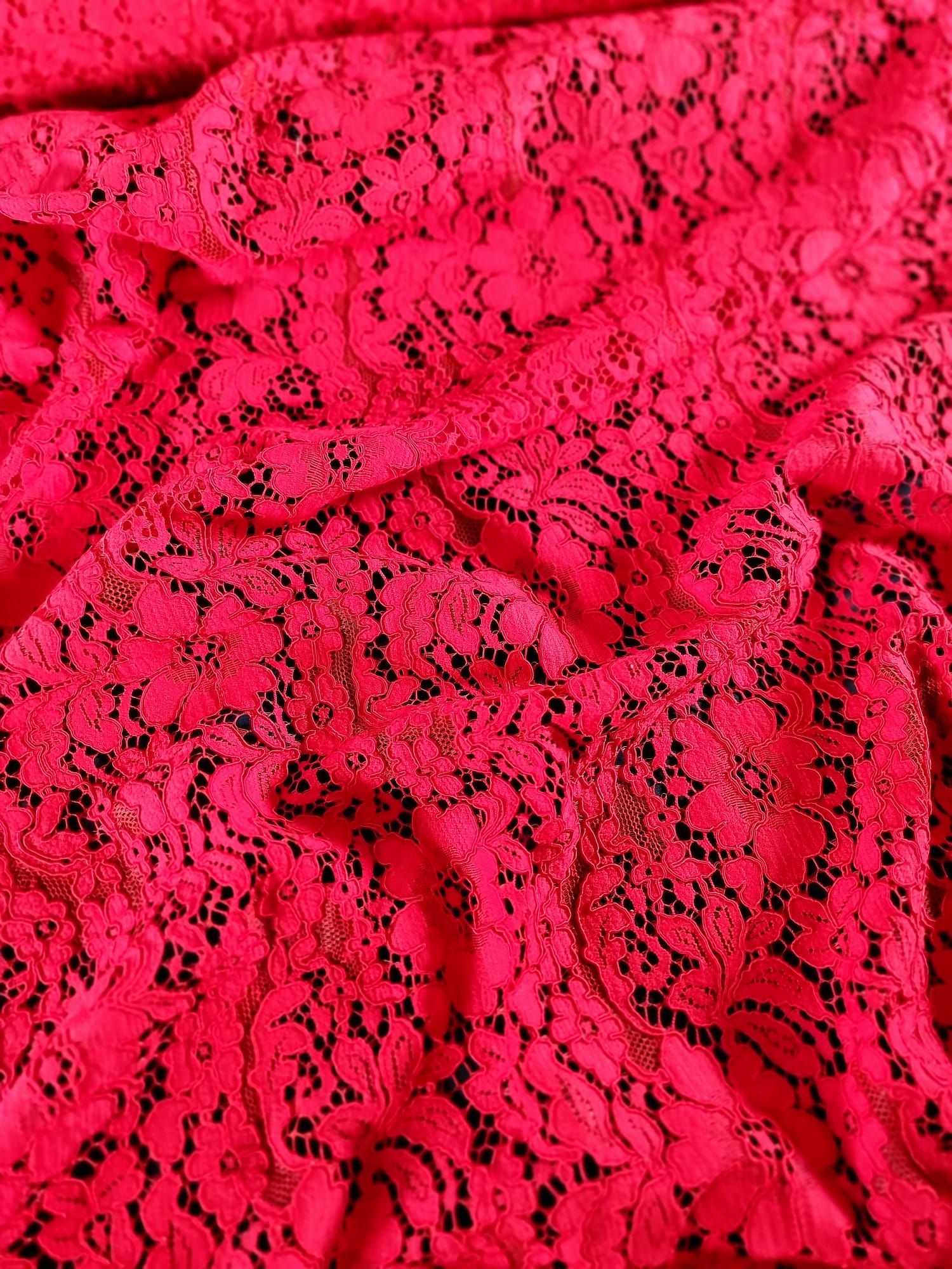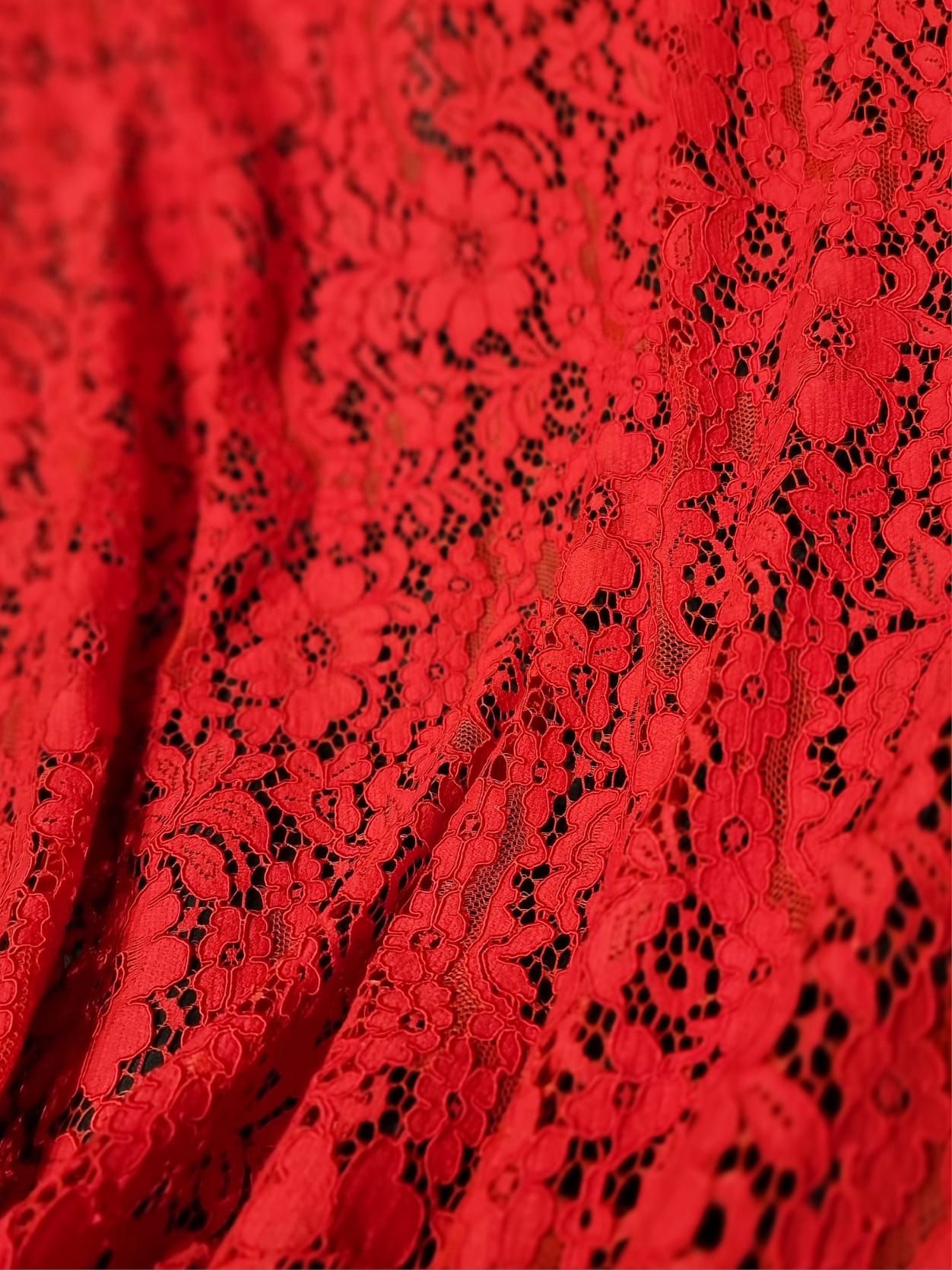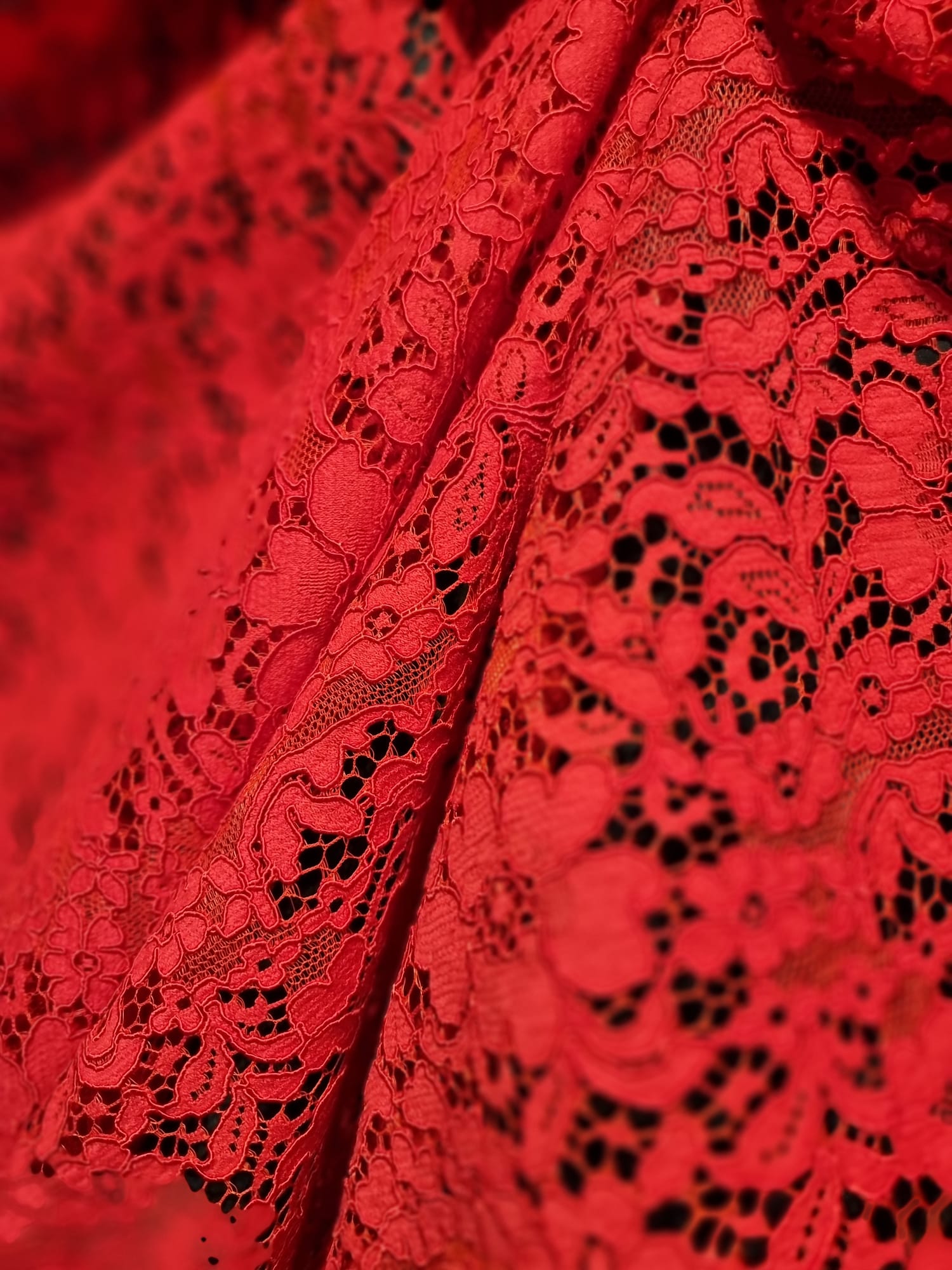 Dantela ajurată din fibre naturale – model floral, Rosu