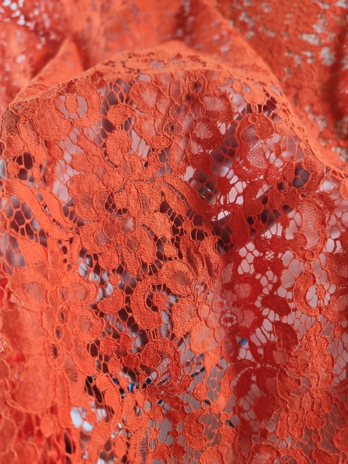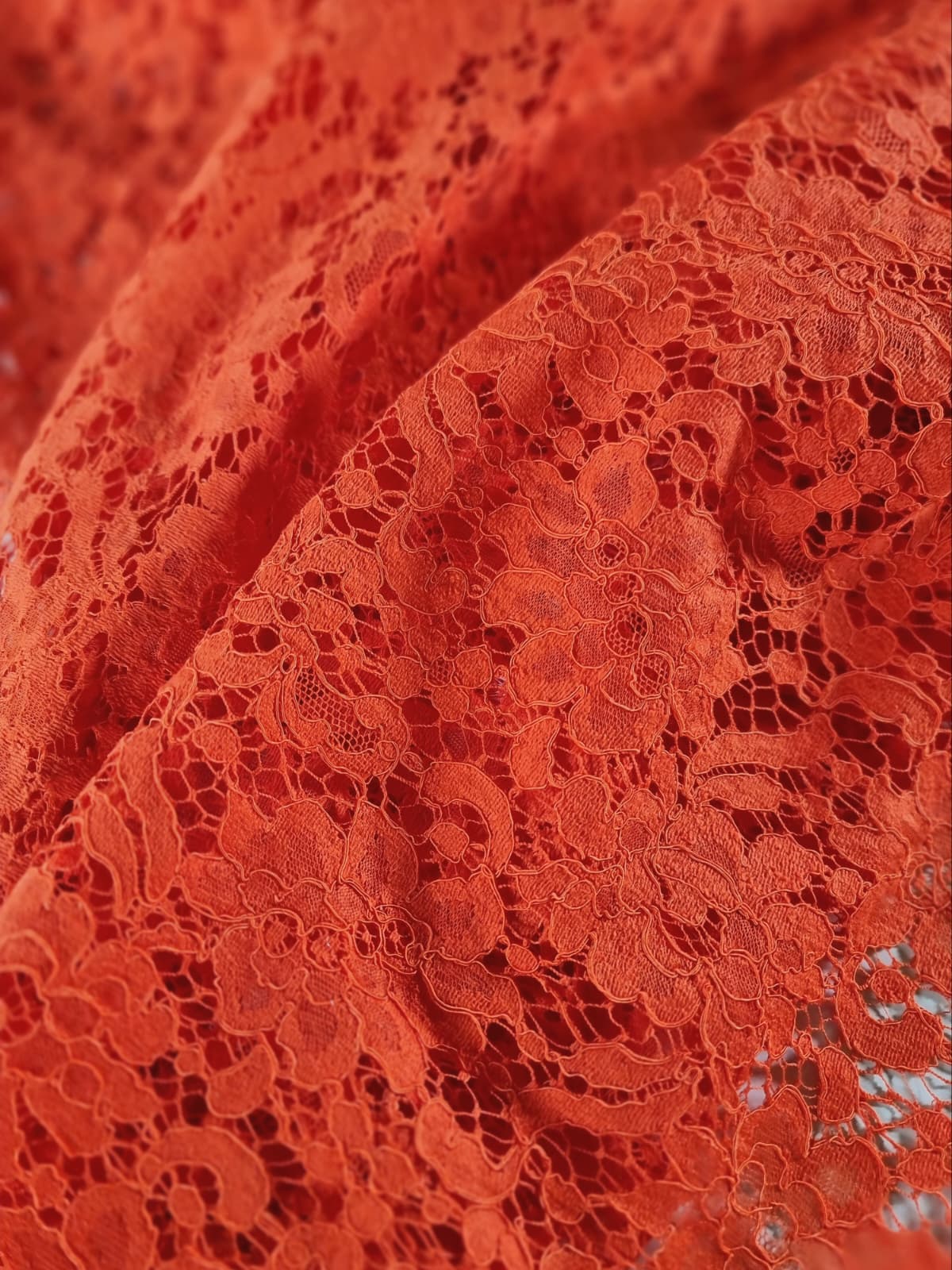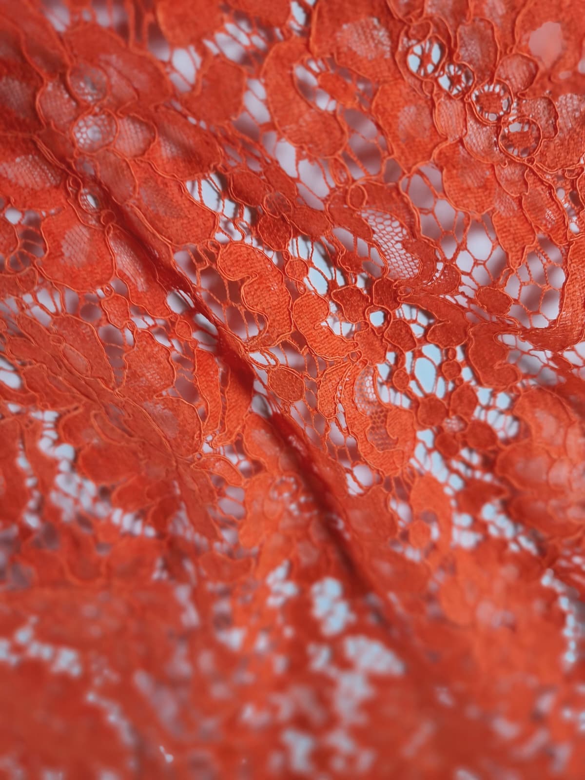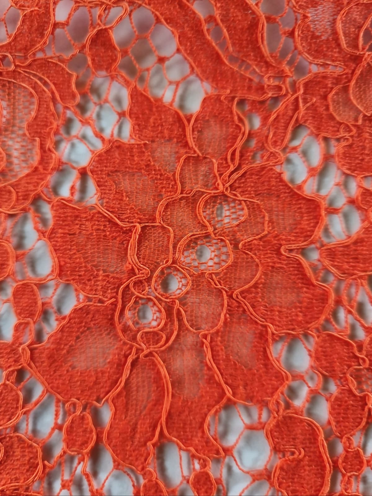 Dantela ajurată din fibre naturale – model floral, Rosu corai