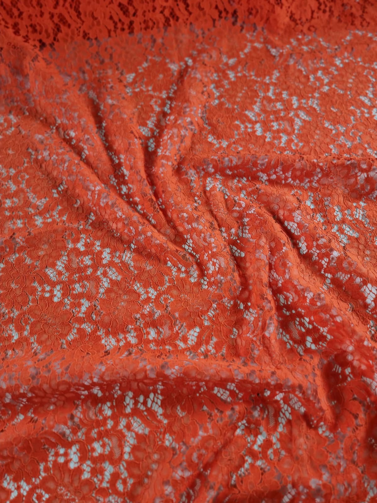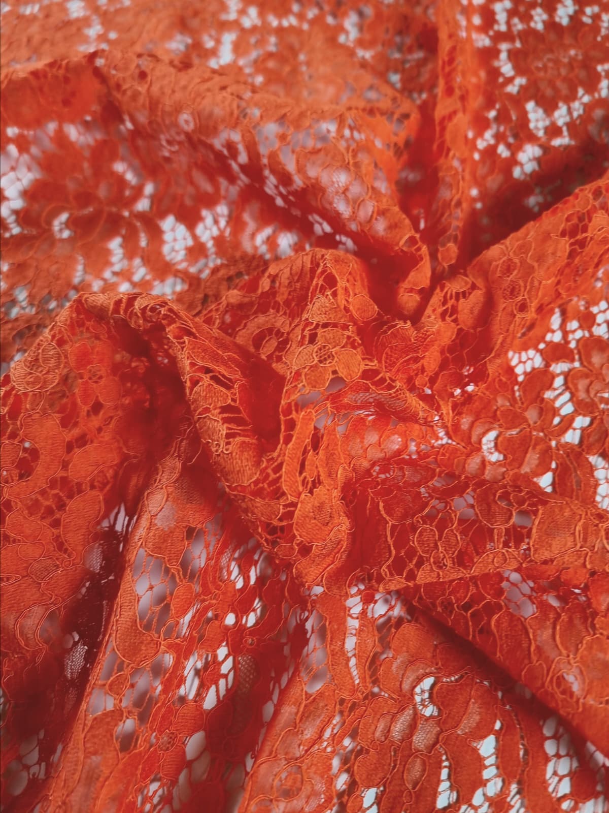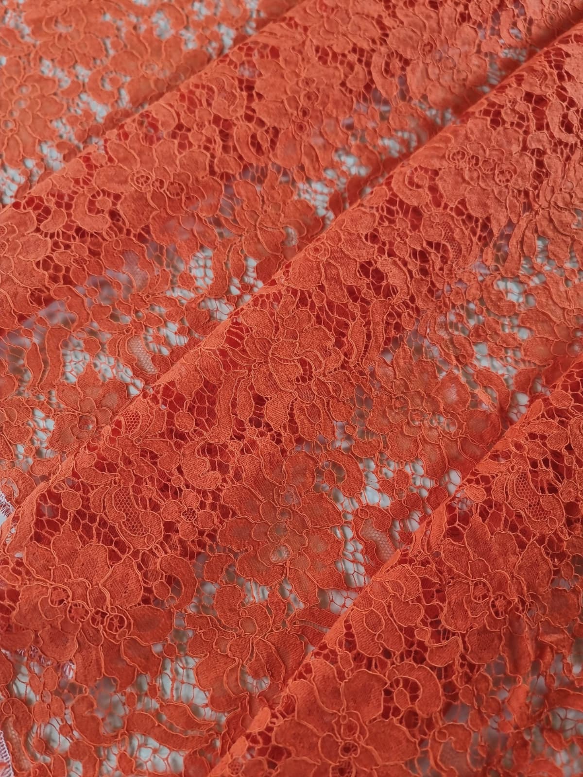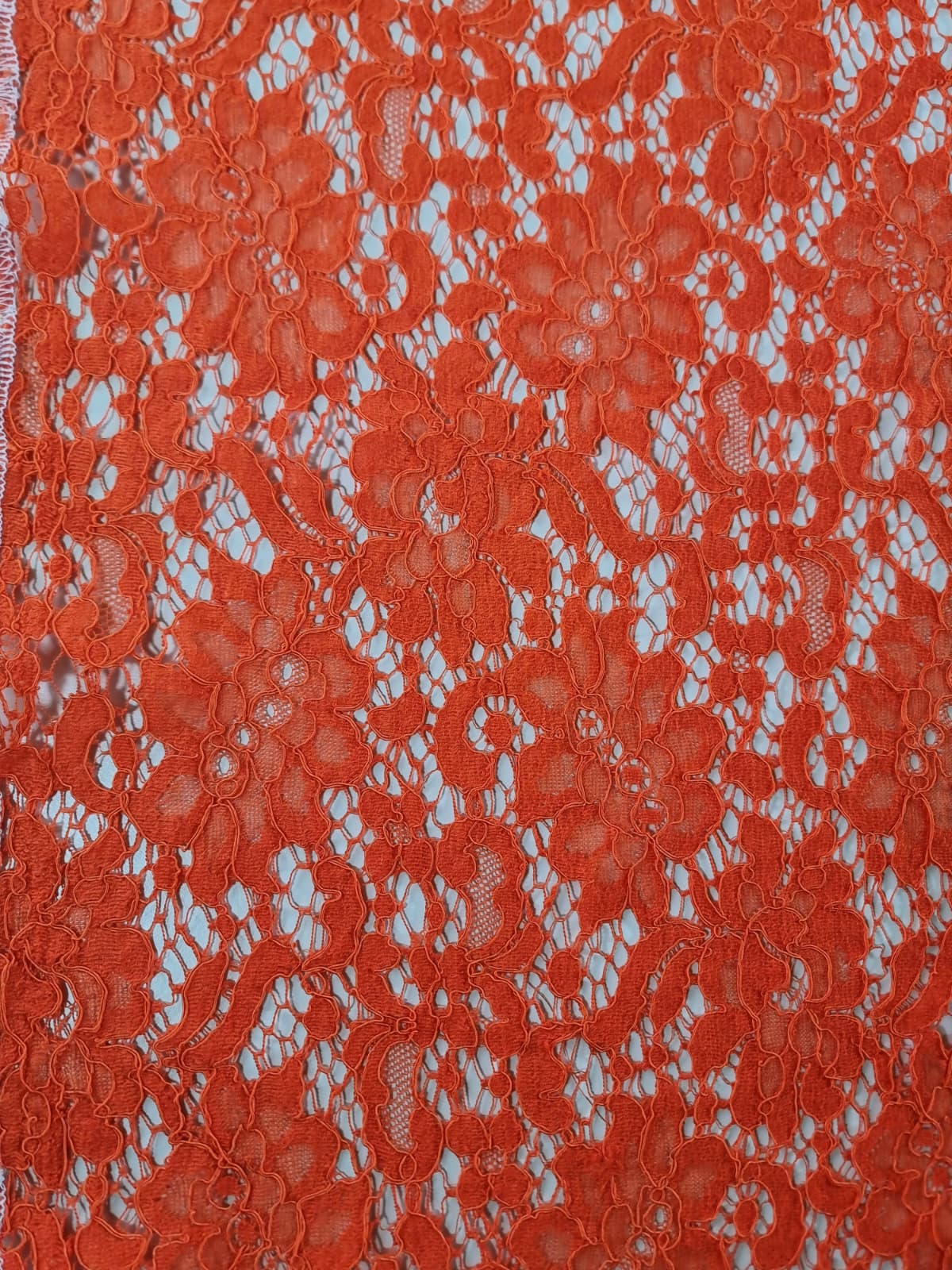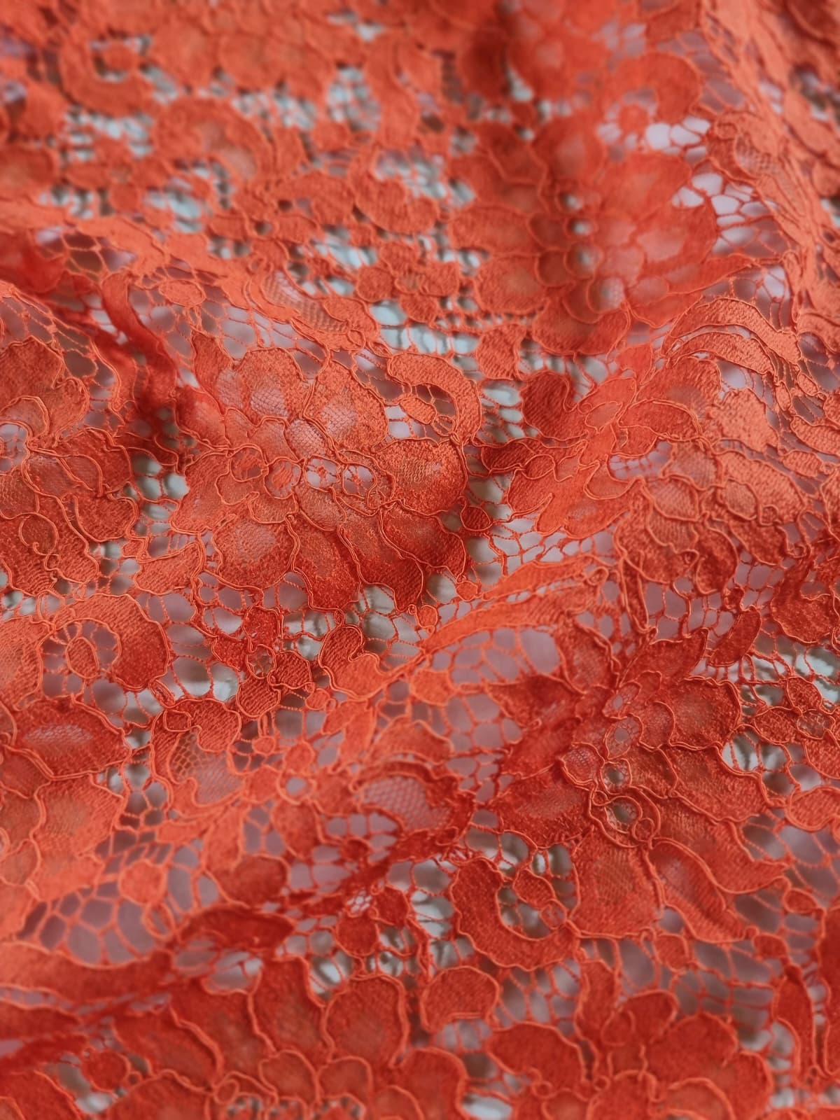 Dantela ajurată din fibre naturale – model floral, Rosu corai