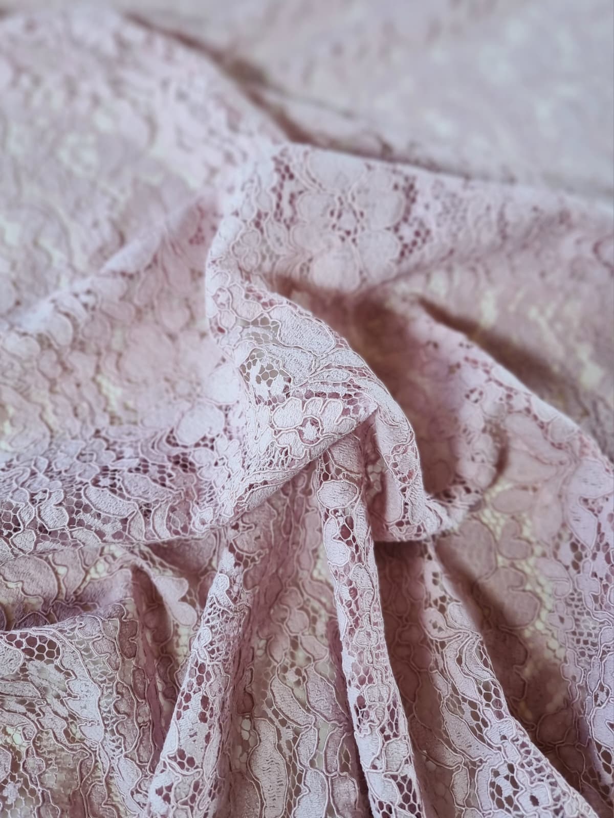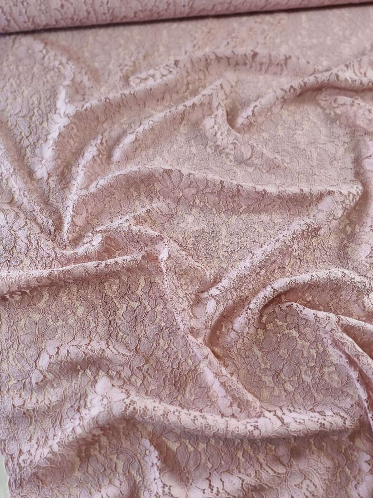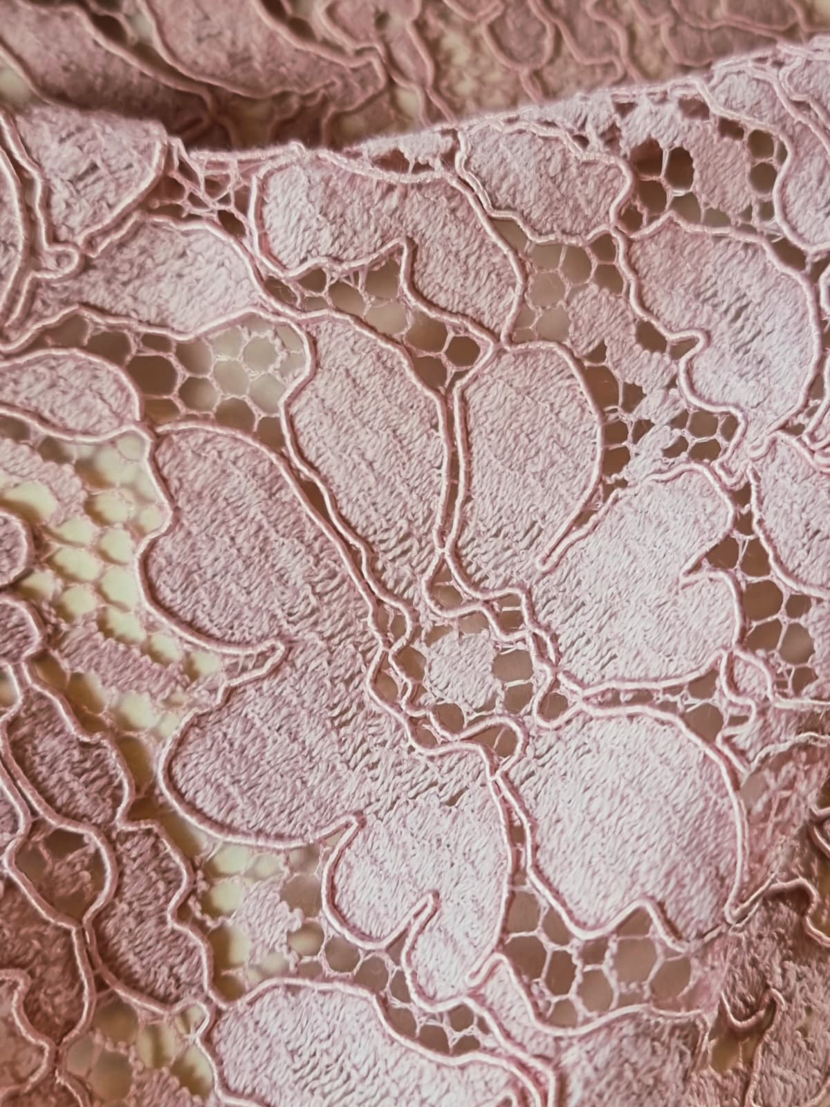 Dantela ajurată din fibre naturale – model floral, Roz prafuit