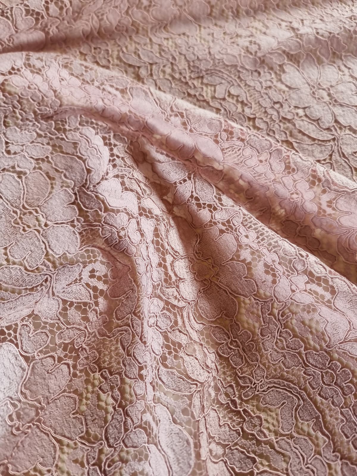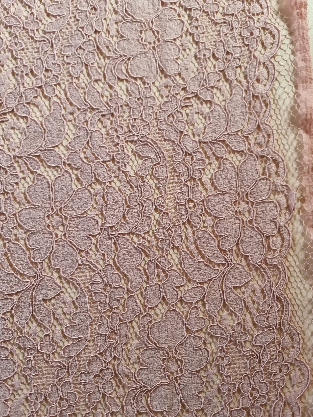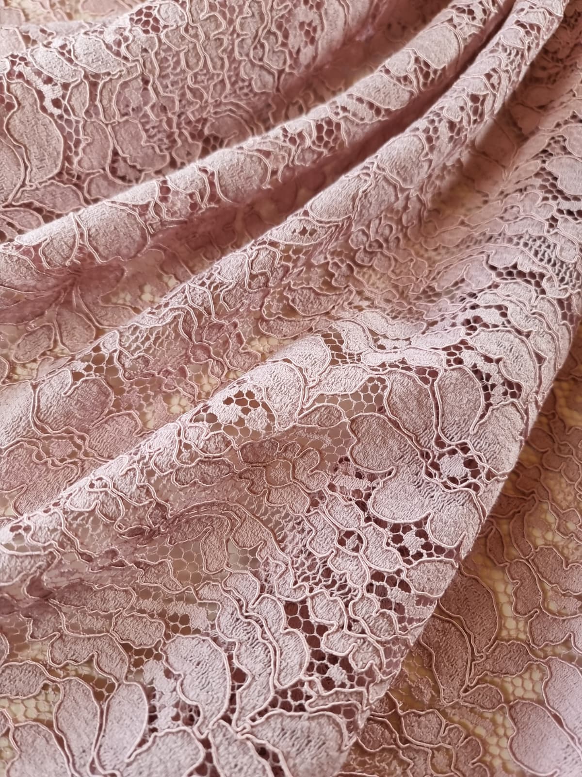 Dantela ajurată din fibre naturale – model floral, Roz prafuit