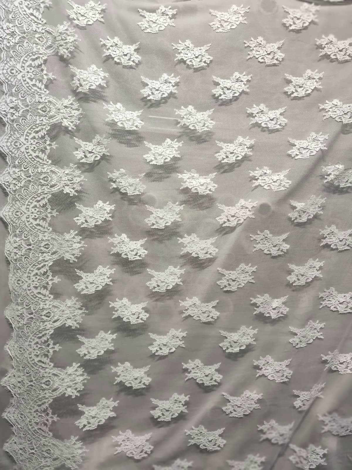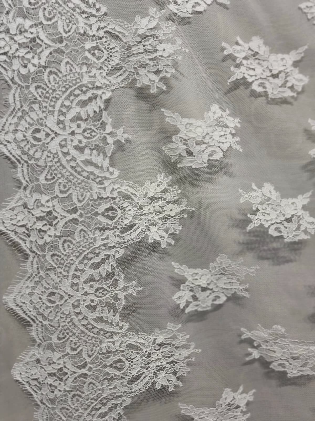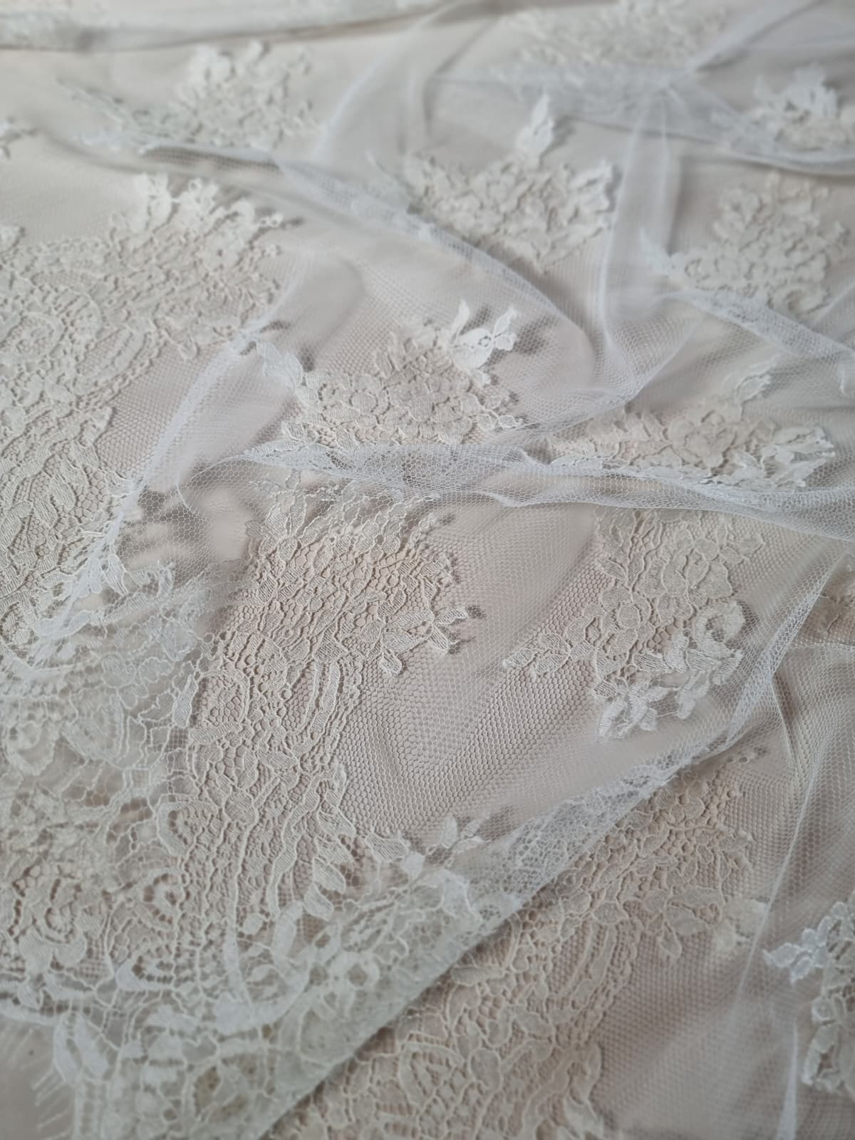 Dantela premium din fibre naturale cu design floral si borduri simetrice, Ivoire