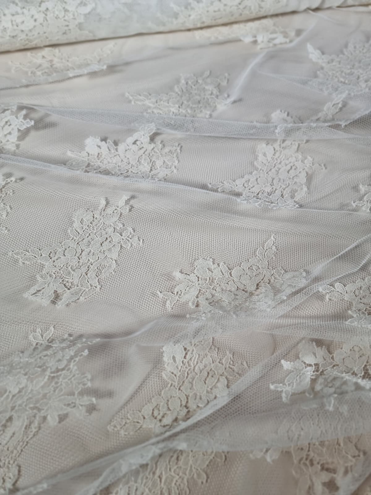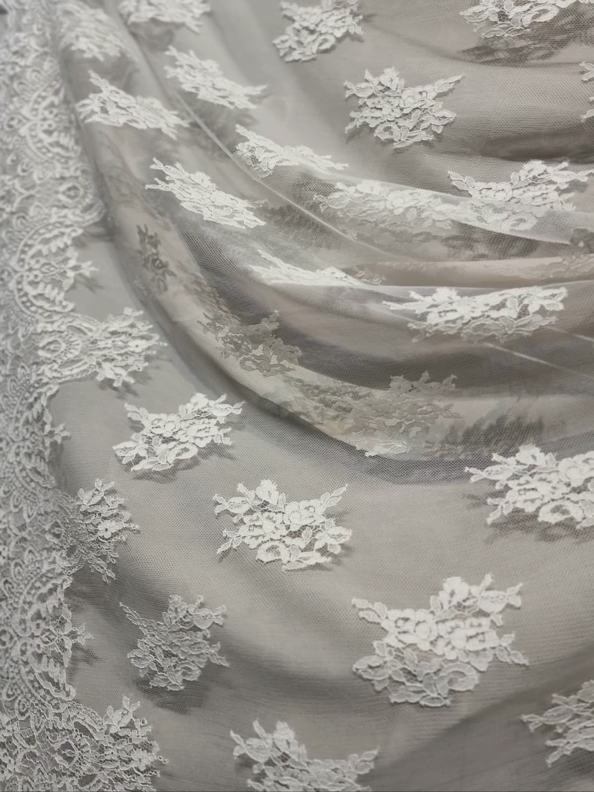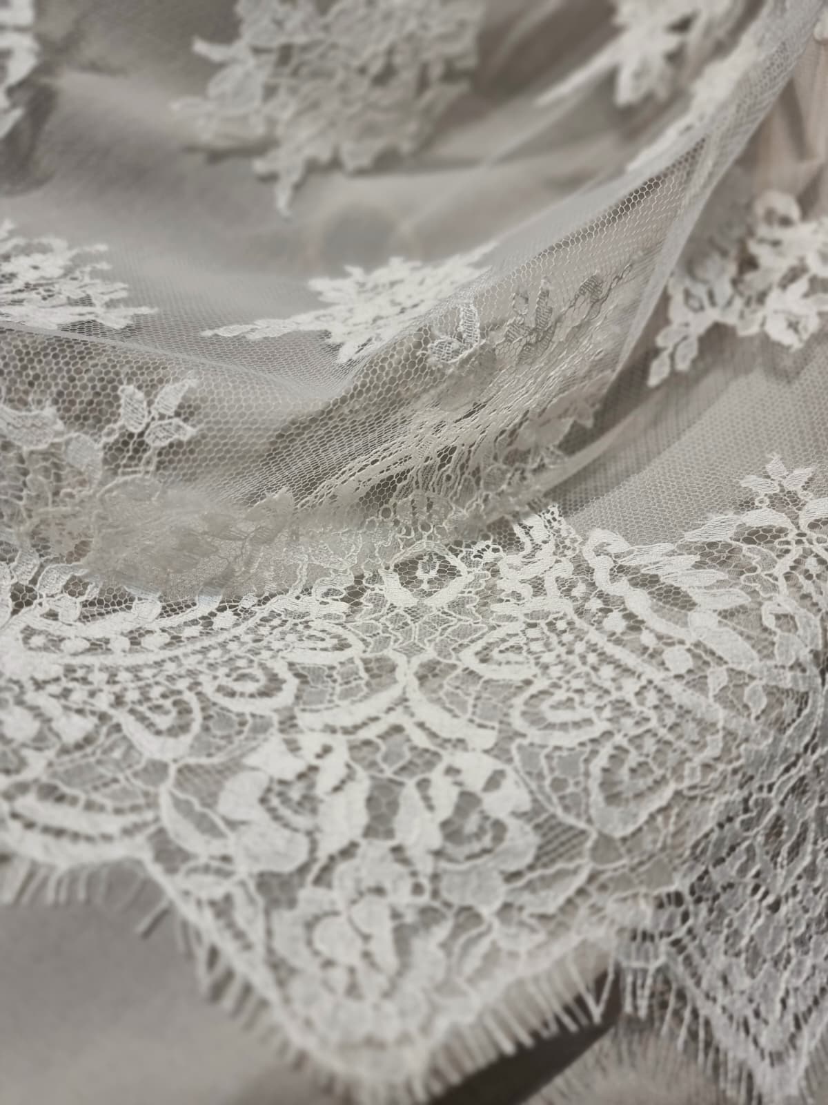 Dantela premium din fibre naturale cu design floral si borduri simetrice, Ivoire