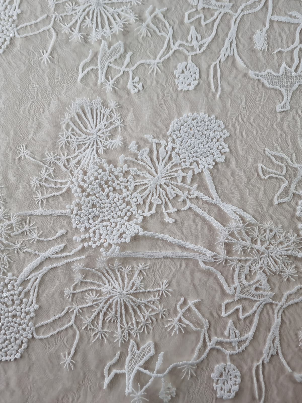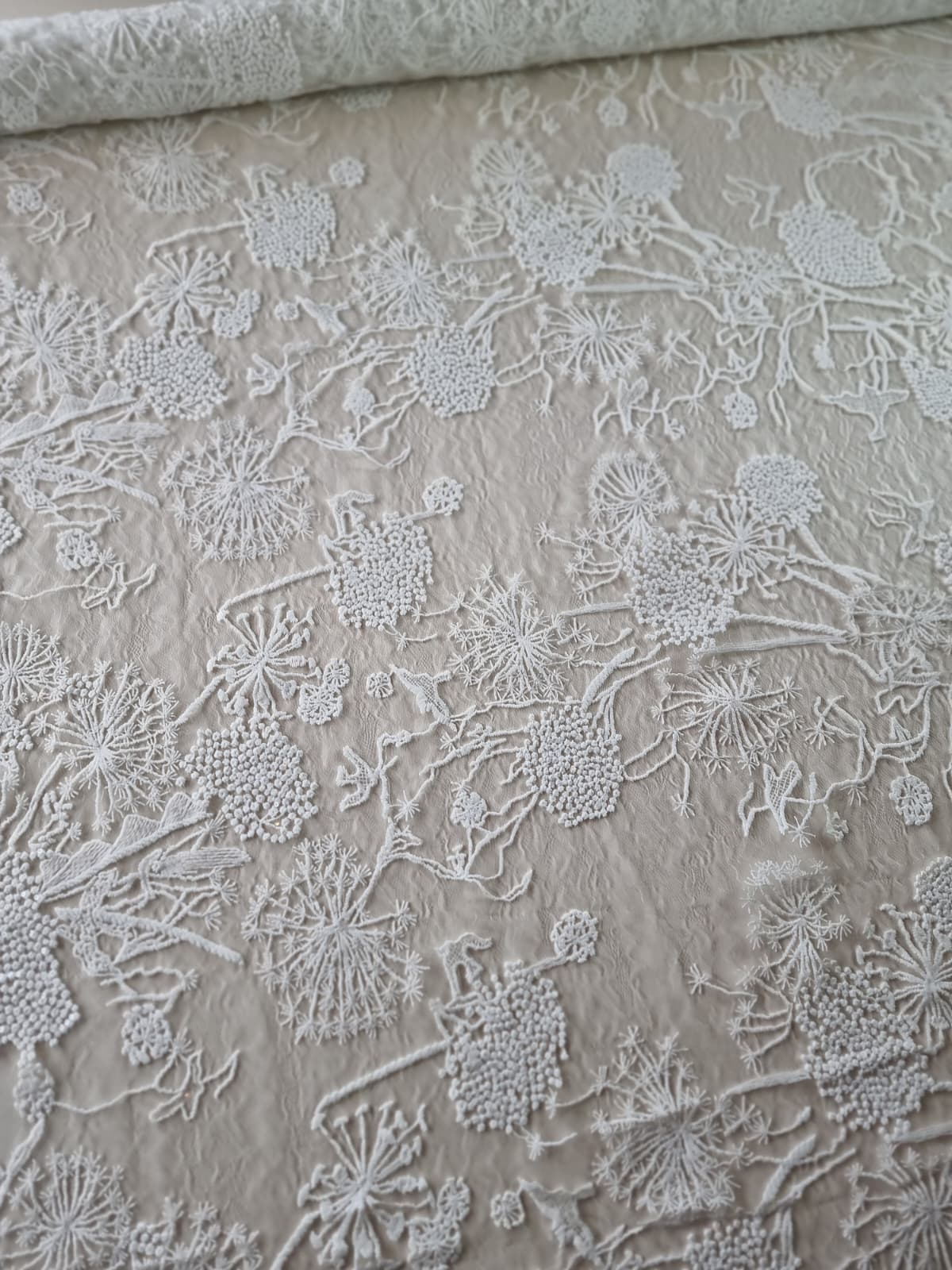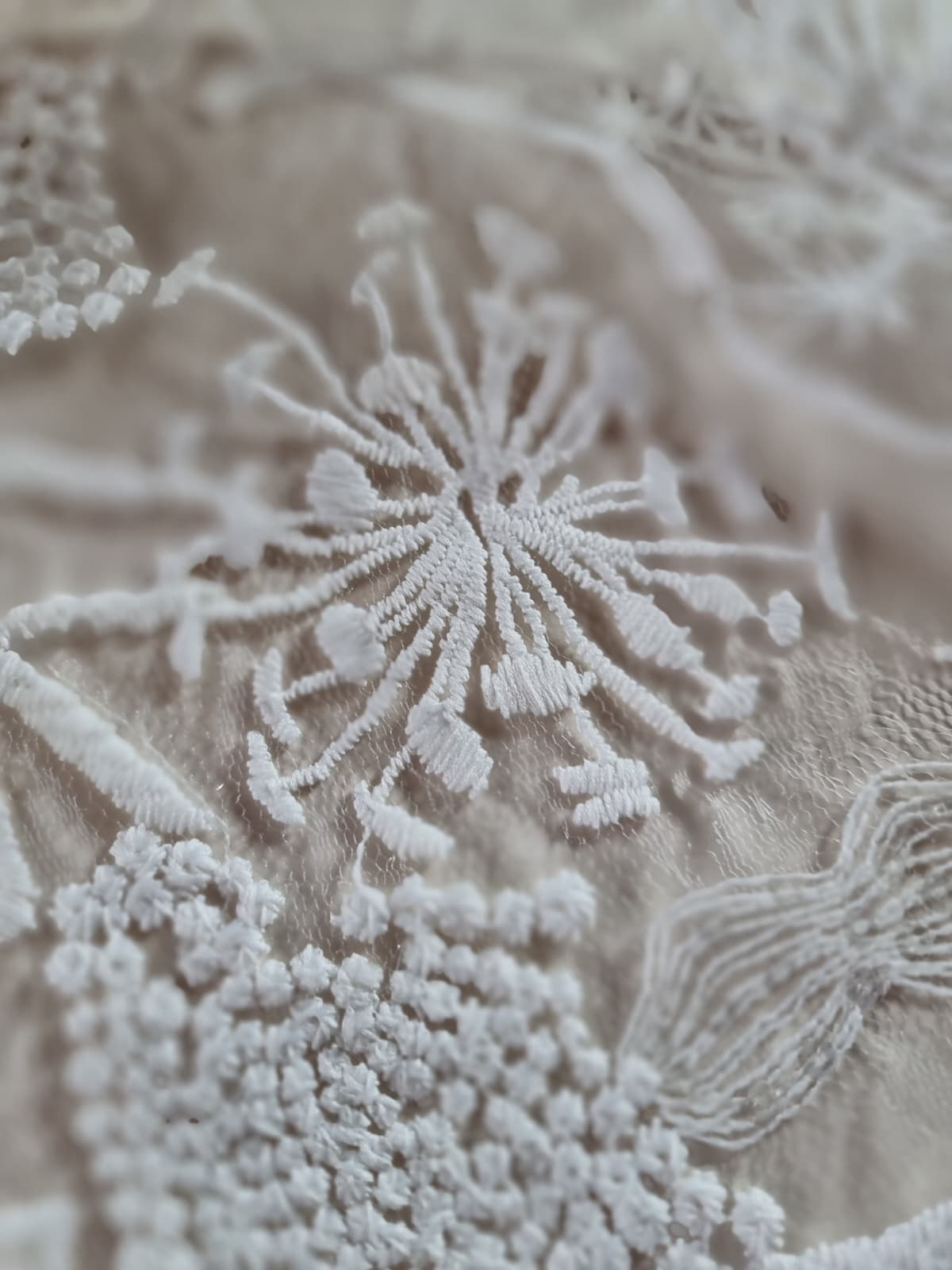 Dantela premium fina cu broderie – flori de câmp schitate, Ivoire
