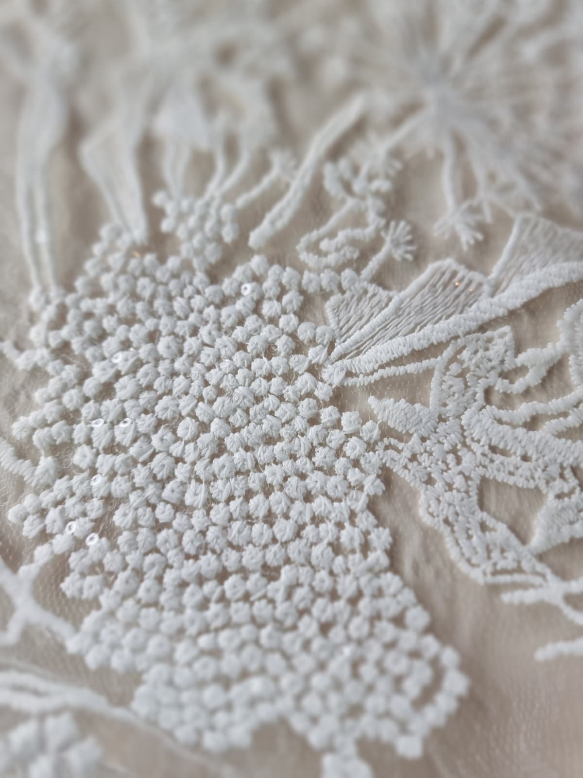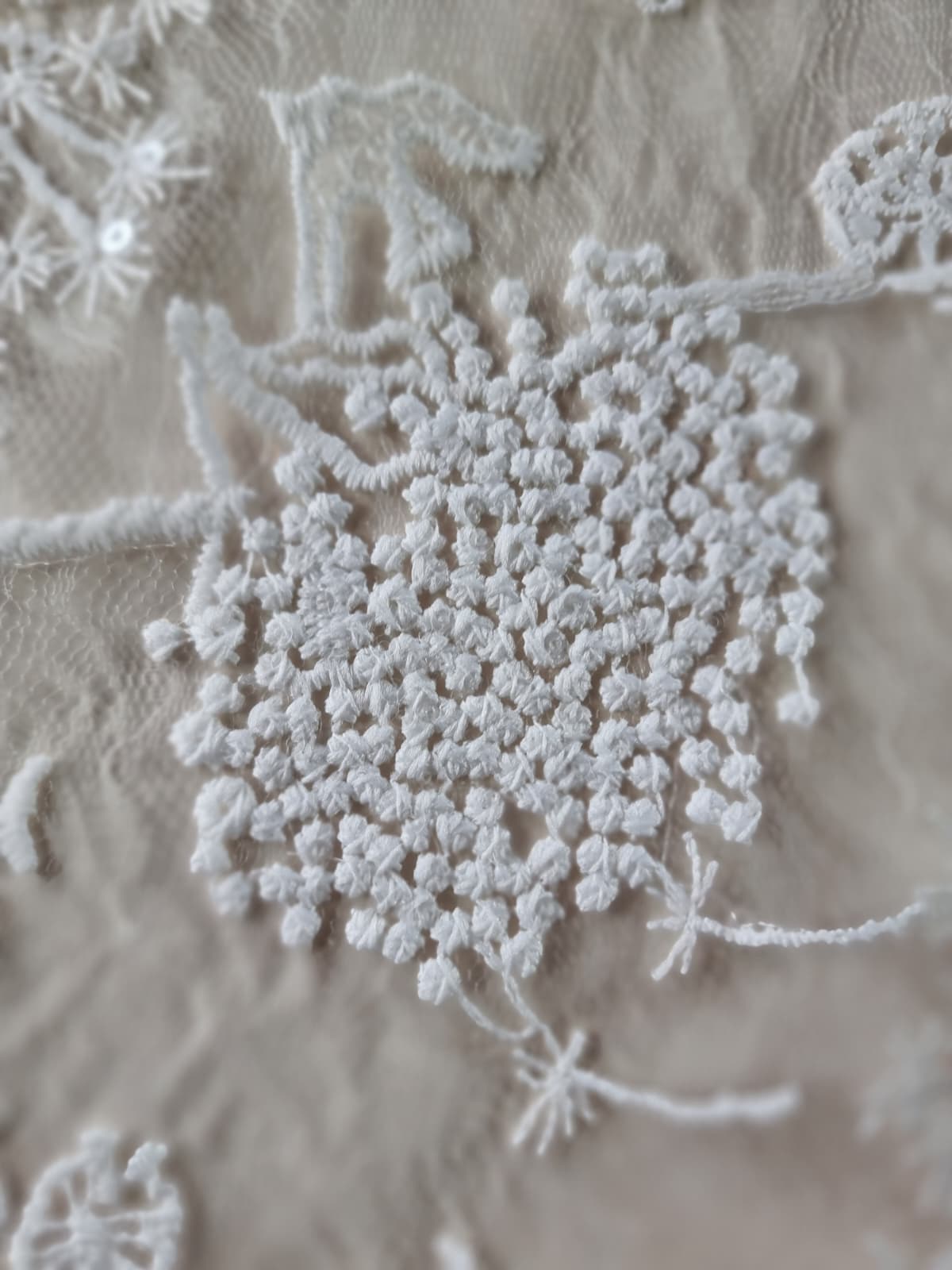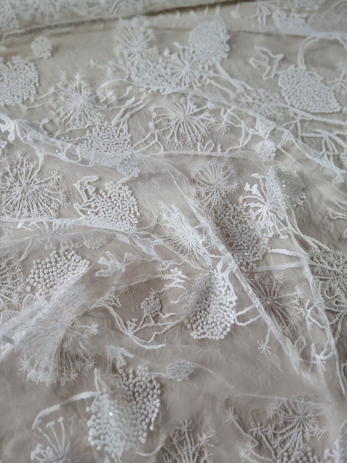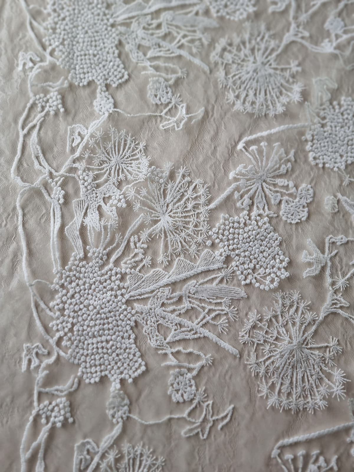 Dantela premium fina cu broderie – flori de câmp schitate, Ivoire