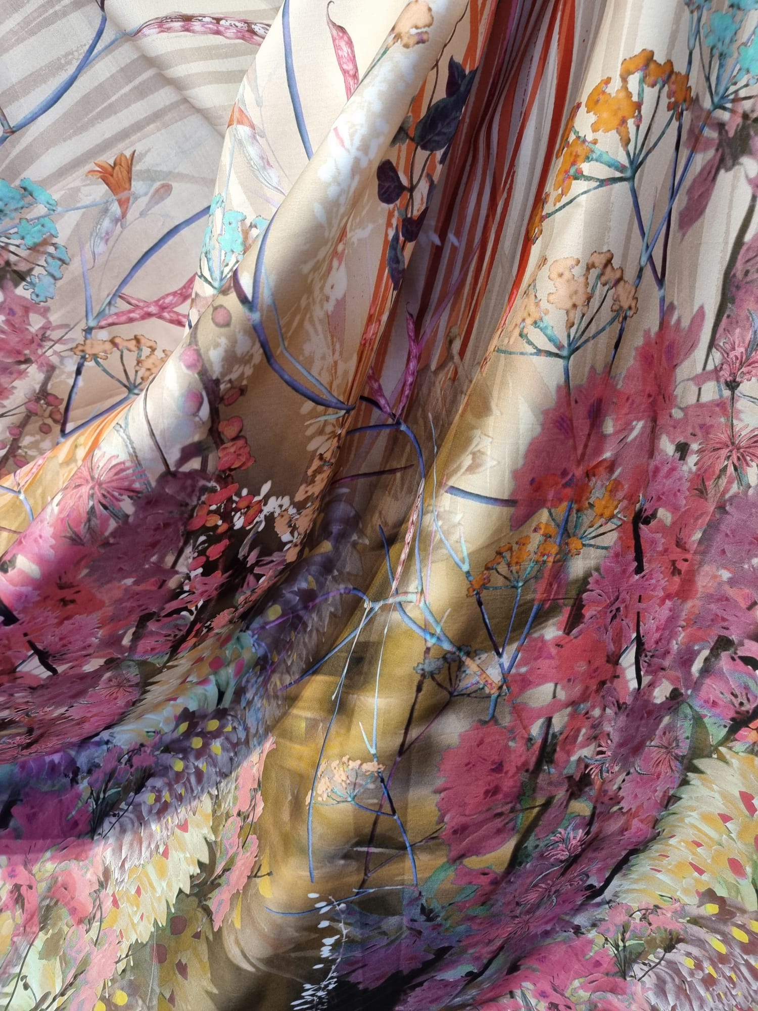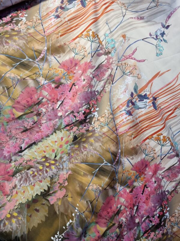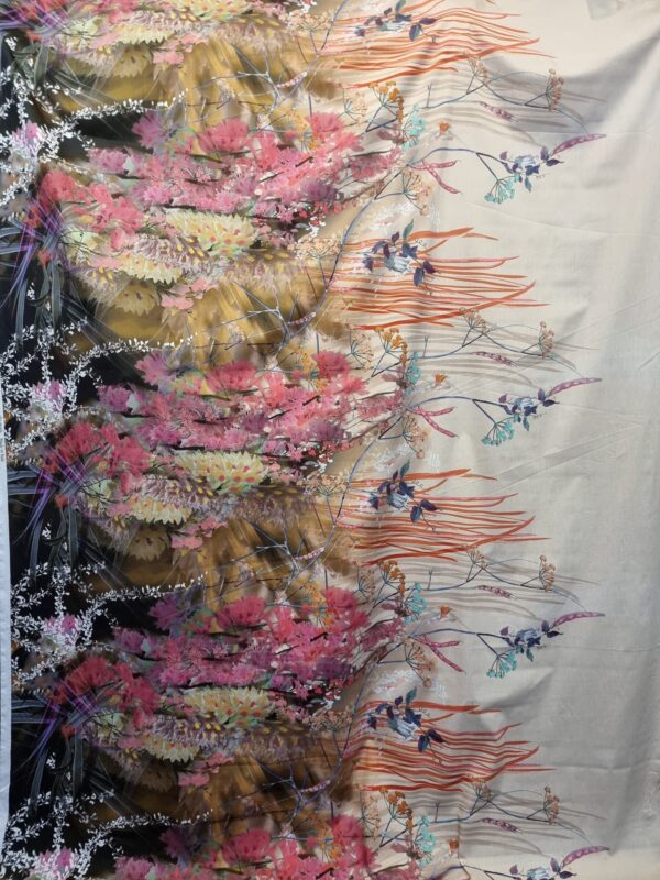 - Tematică / Imprimeu: floral cu bordura pe toata lungimea tesaturii