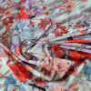 Popline tesatura fina din bumbac cu model de bordură laterală cu flori Multicolore pe fond Bleu ciel