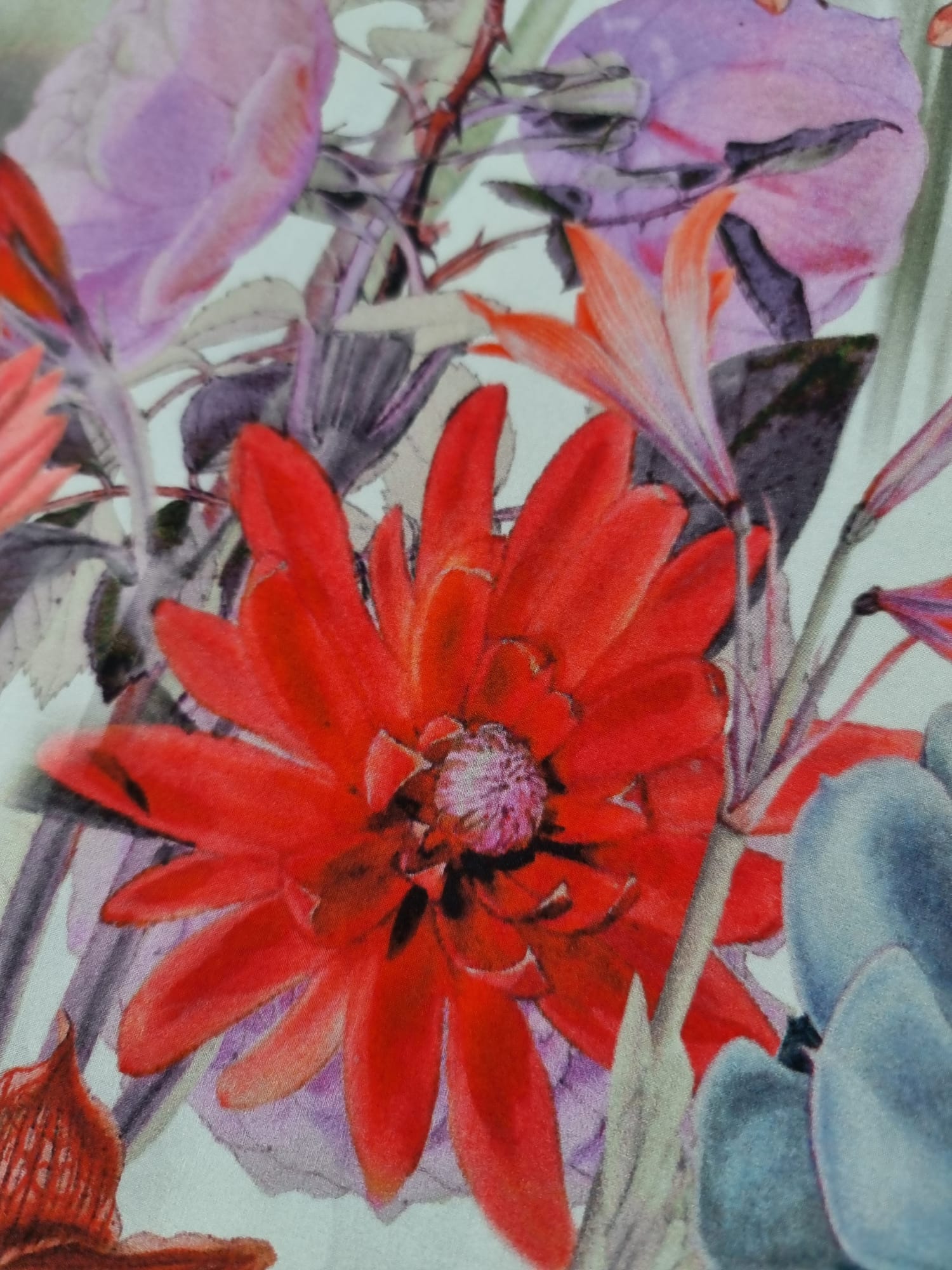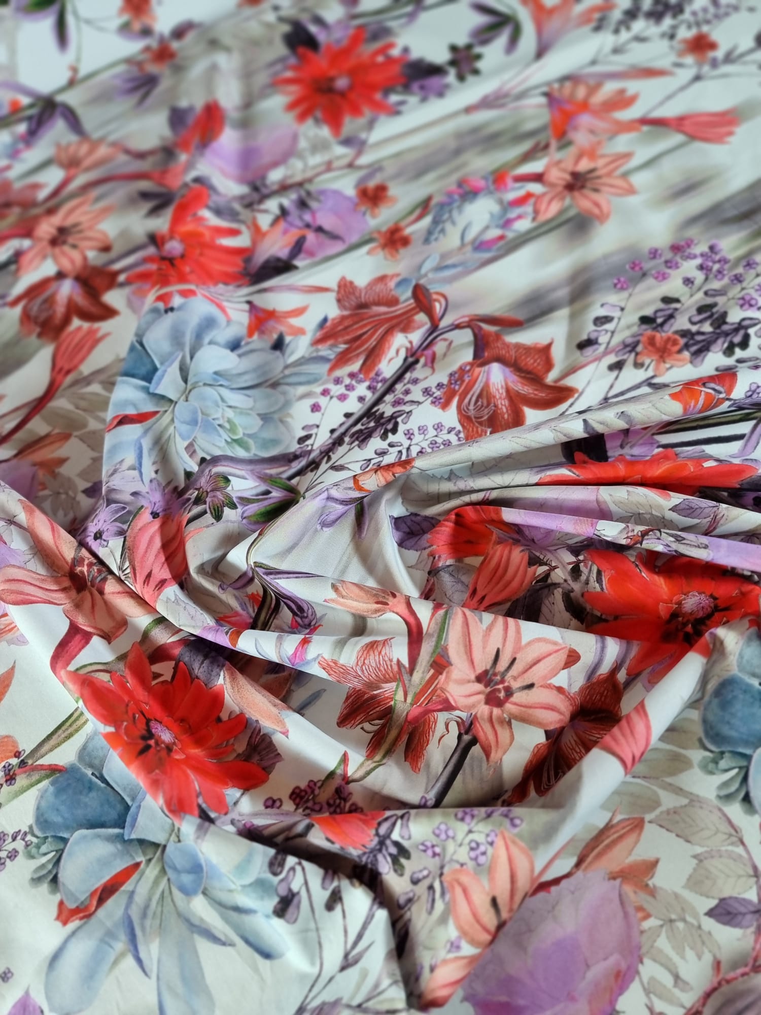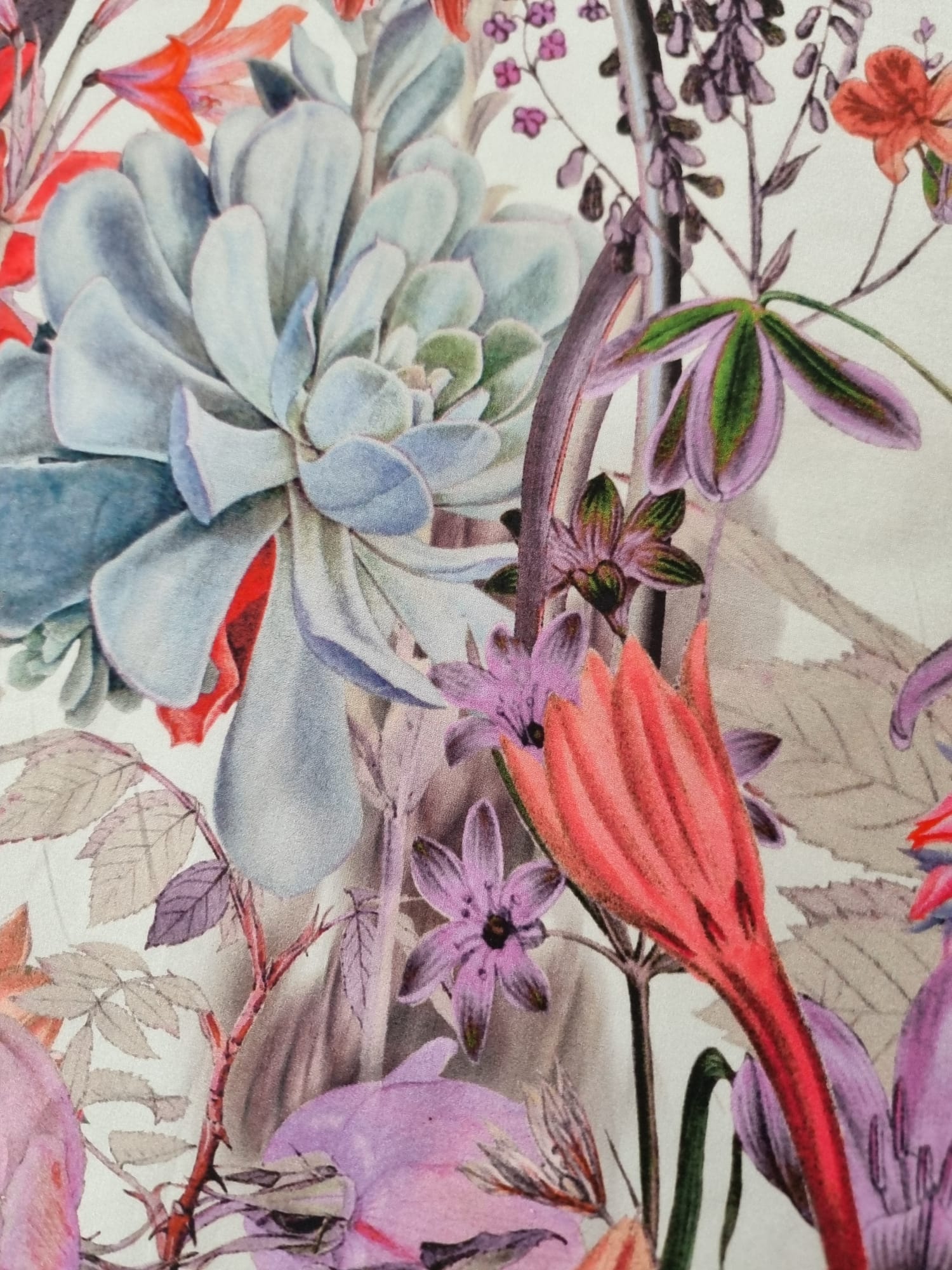 - Tematică / Imprimeu: floral cu bordura pe toata lungimea tesaturii