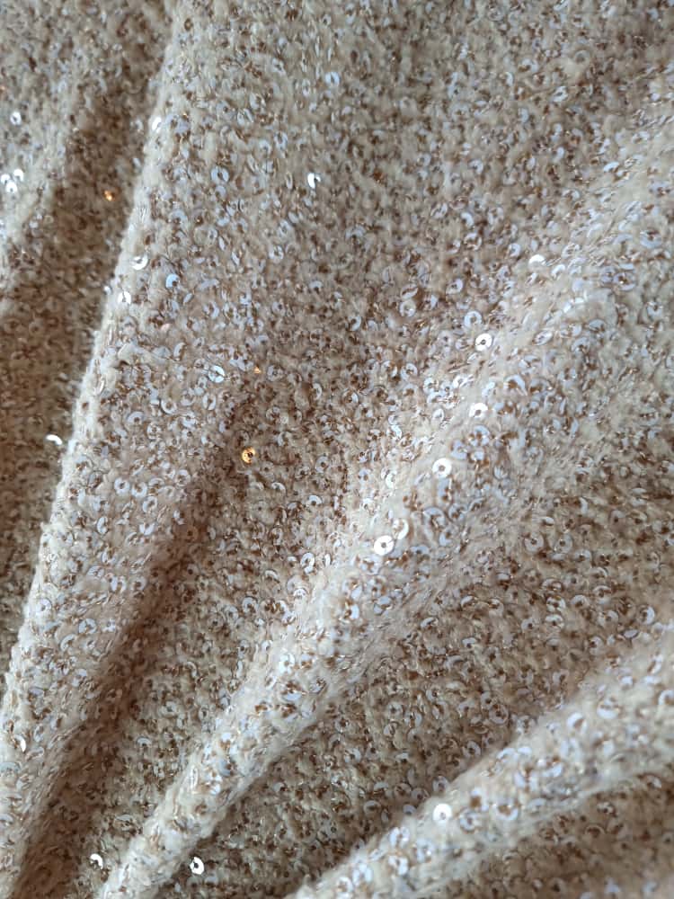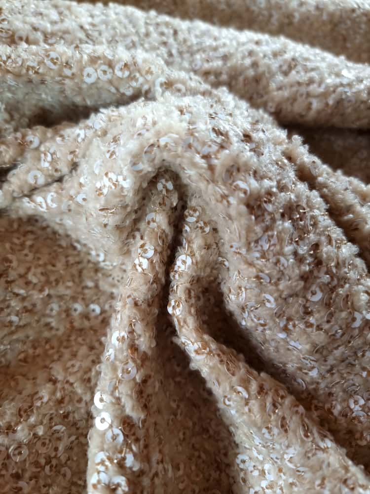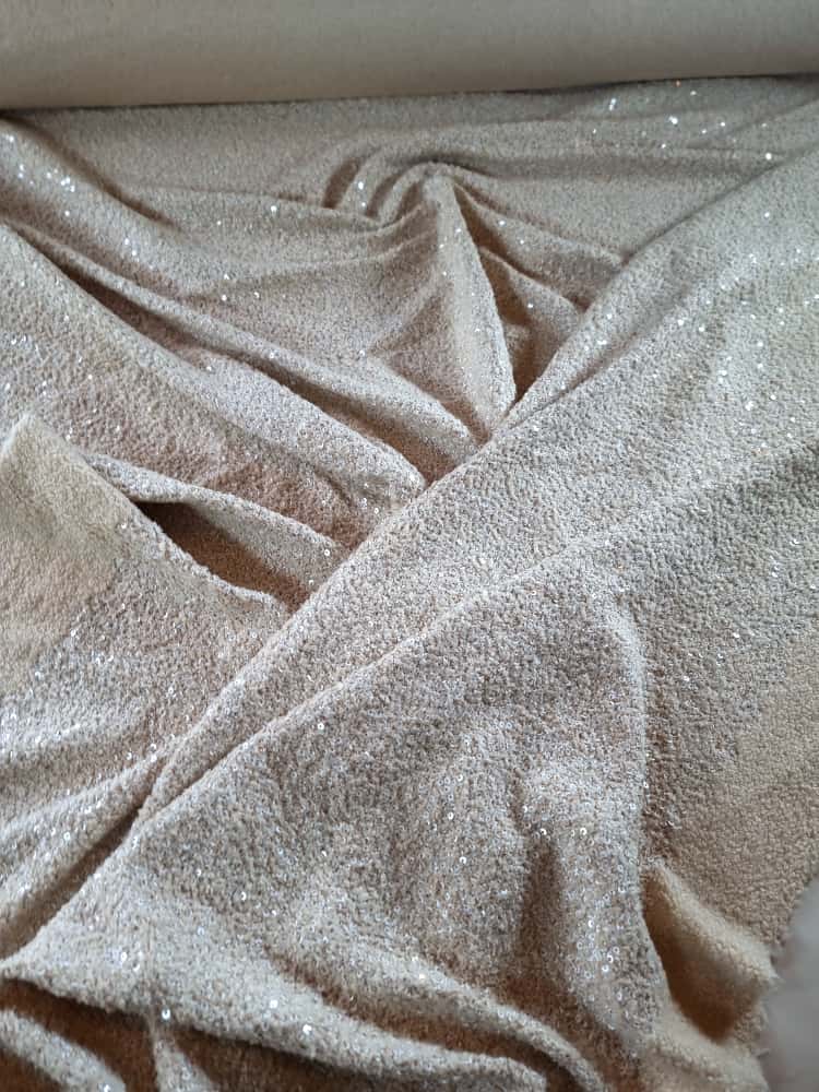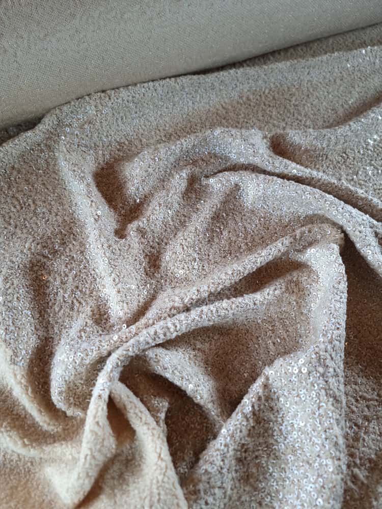 Stofa premium din lana, design fantezie tip bucle – mixt cu micropaiete, Bej deschis
