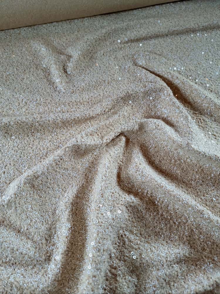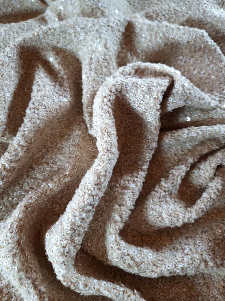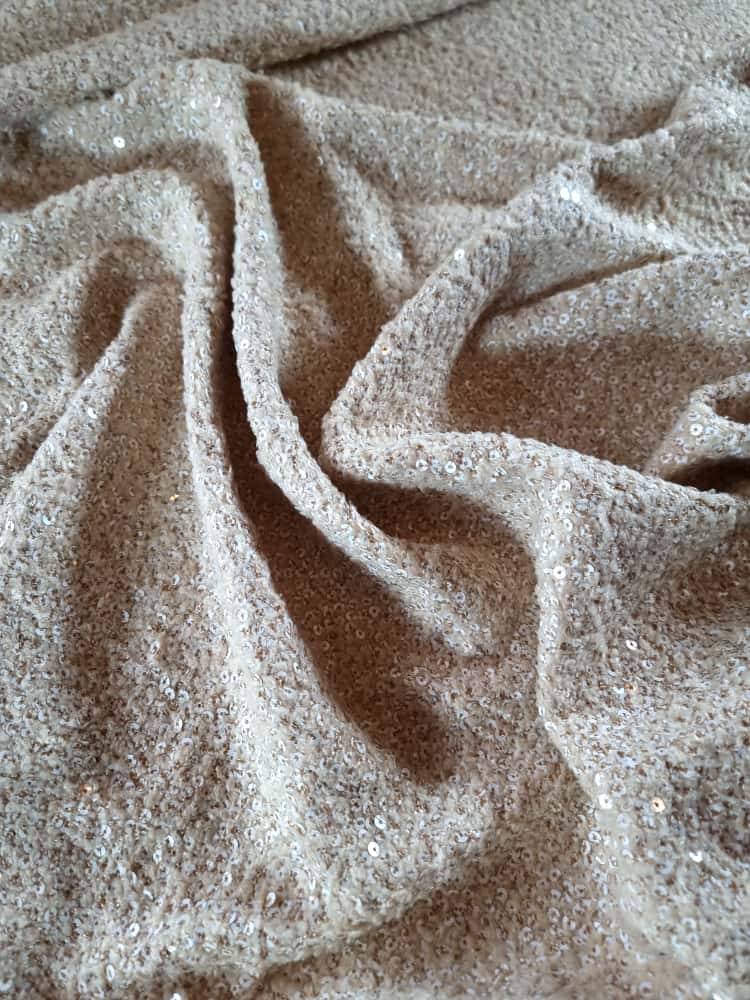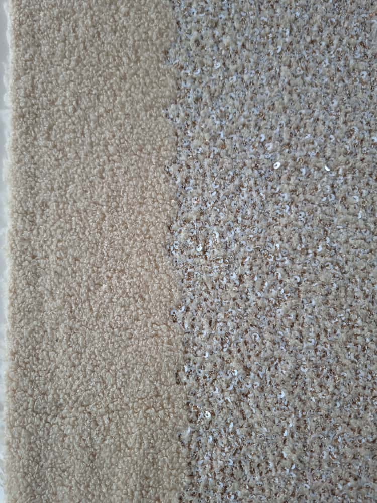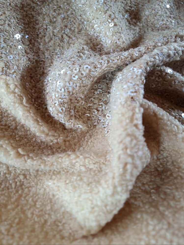Stofa premium din lana, design fantezie tip bucle – mixt cu micropaiete, Bej deschis