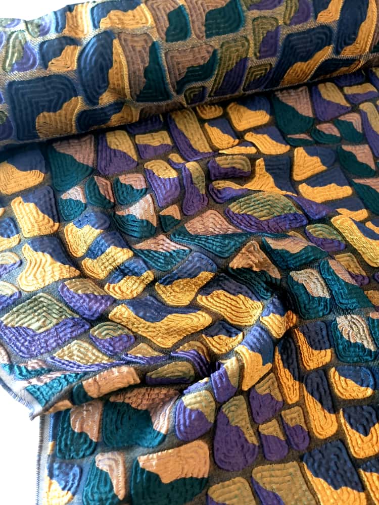 Tesatura Brocart – design usor reliefat, Verde / Mustar / Kaki