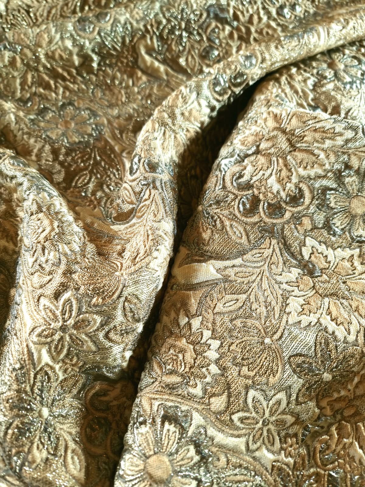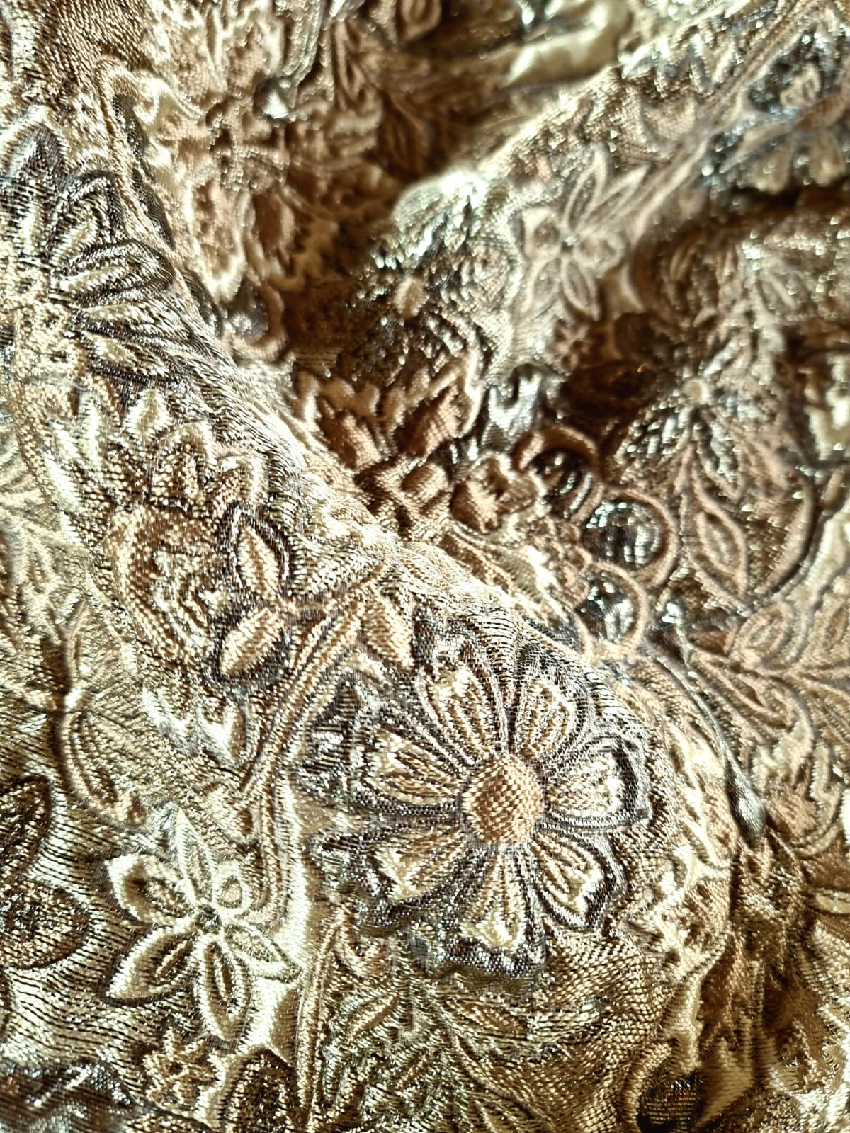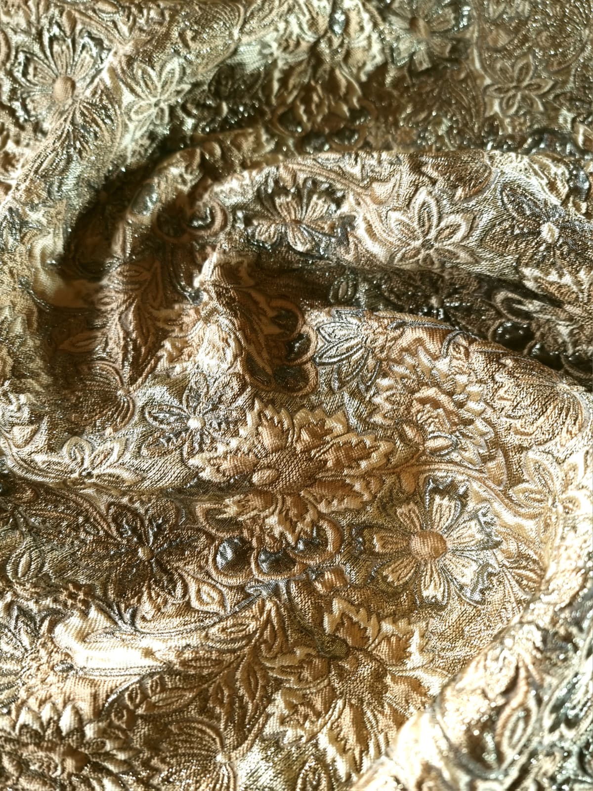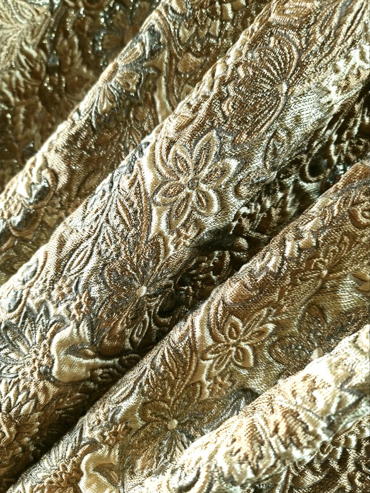Tesatura Brocart pretios cu insertii de fir lurex – design floral, nuanțe de Galben – Mustar – Auriu