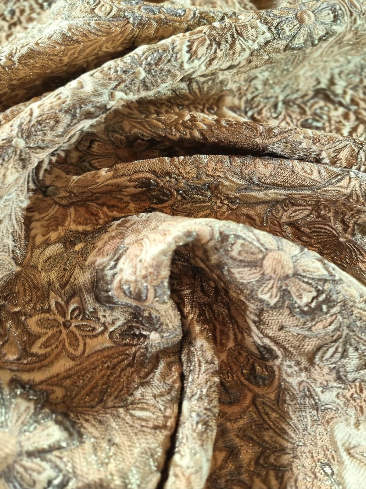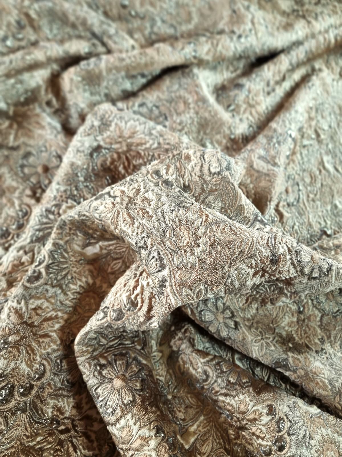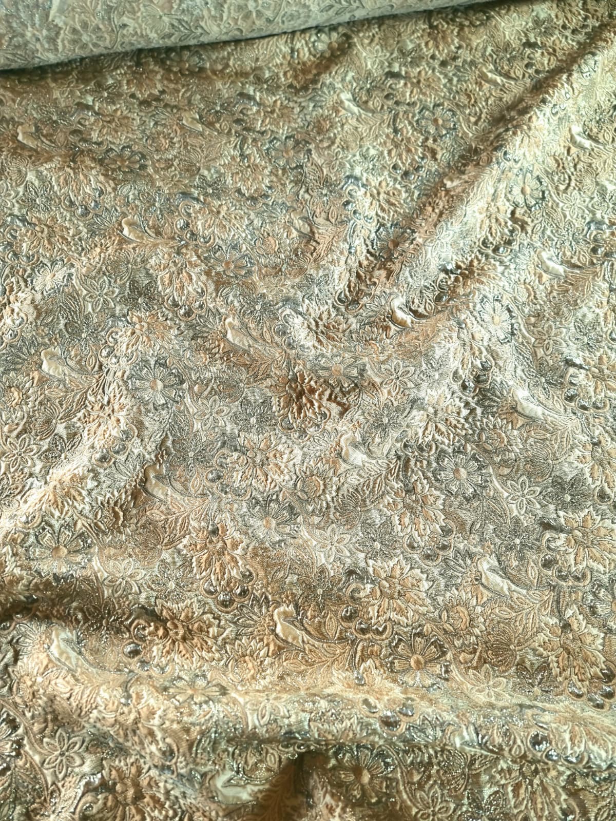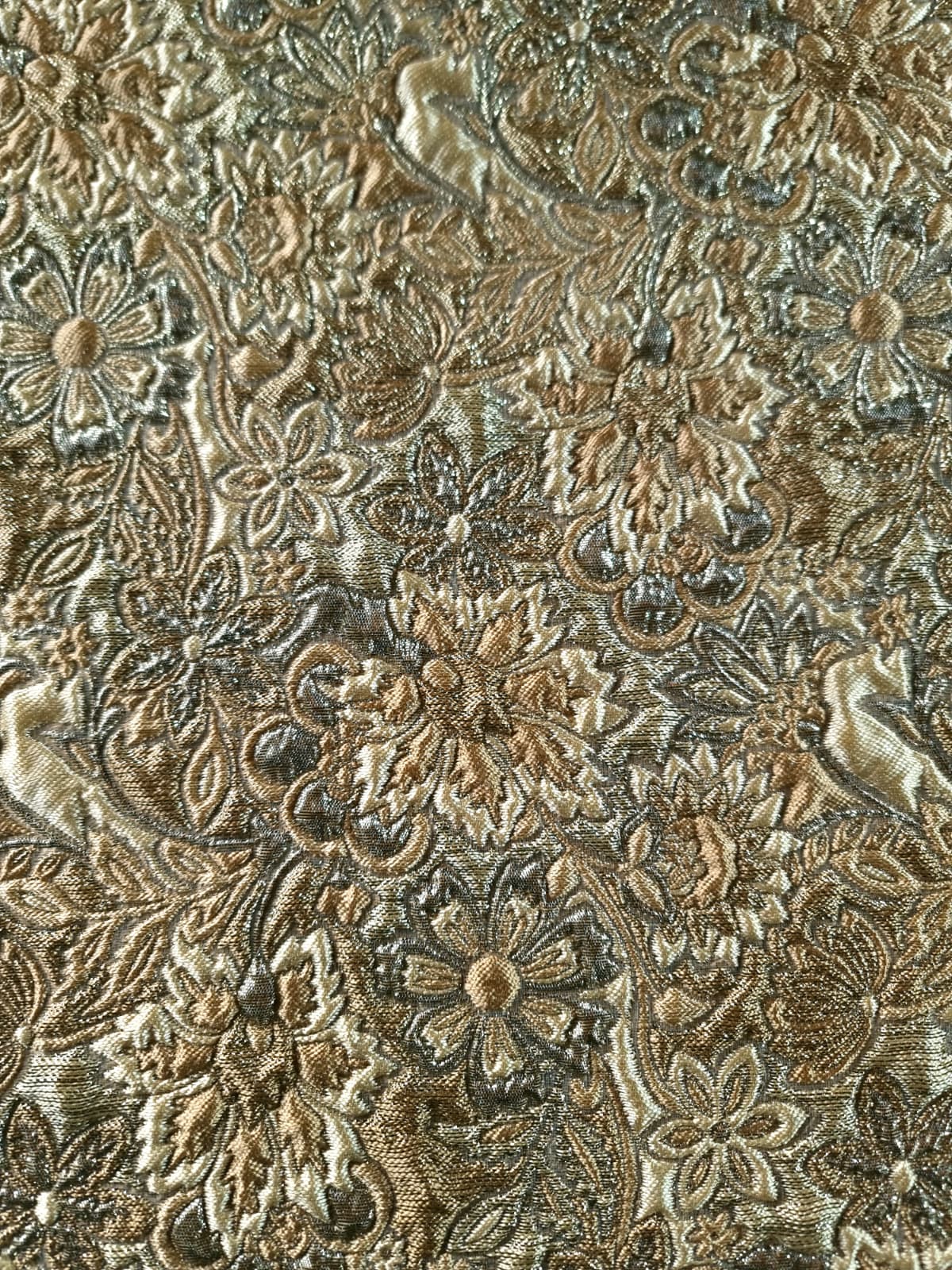Tesatura Brocart pretios cu insertii de fir lurex – design floral, nuanțe de Galben – Mustar – Auriu