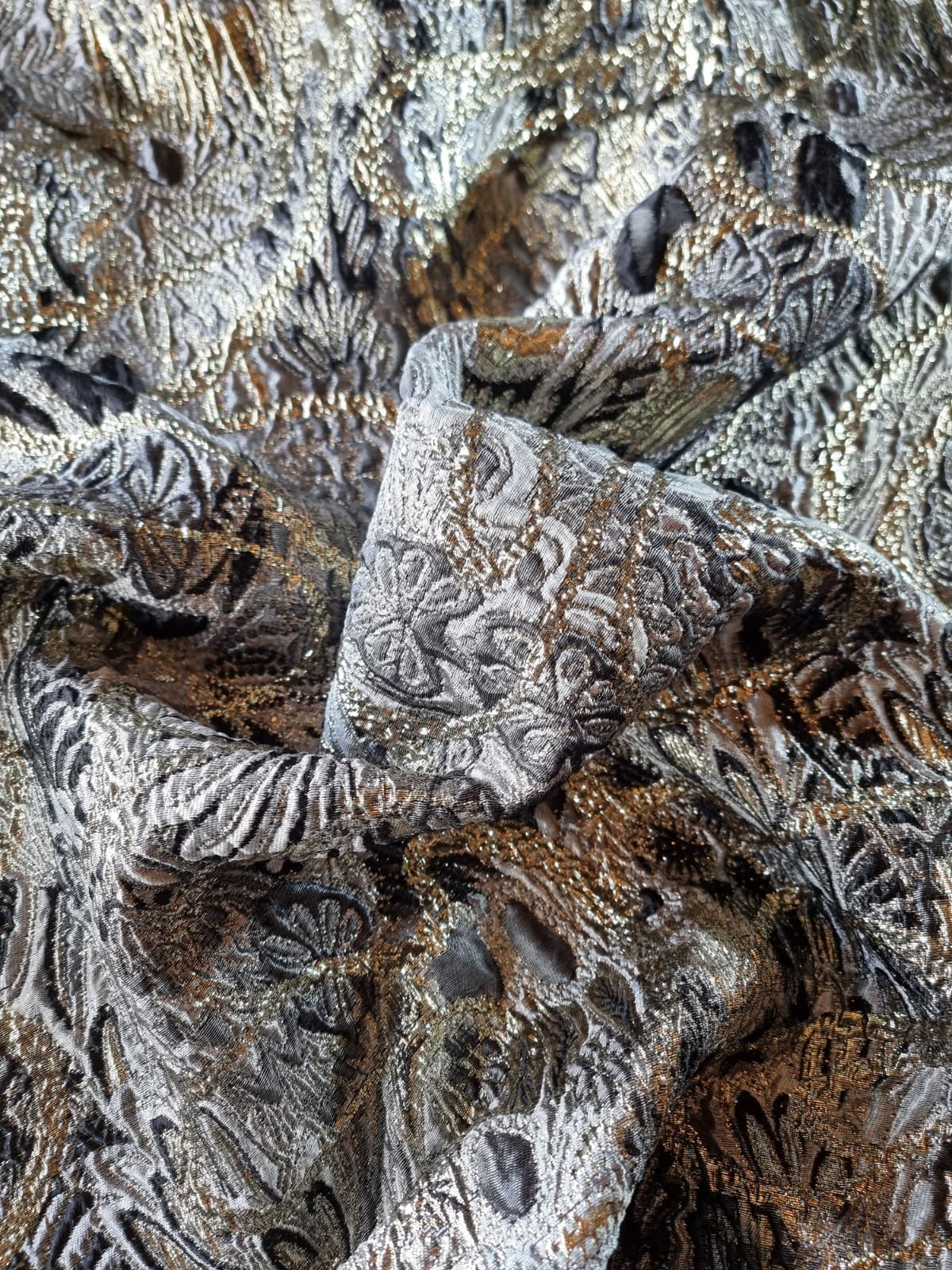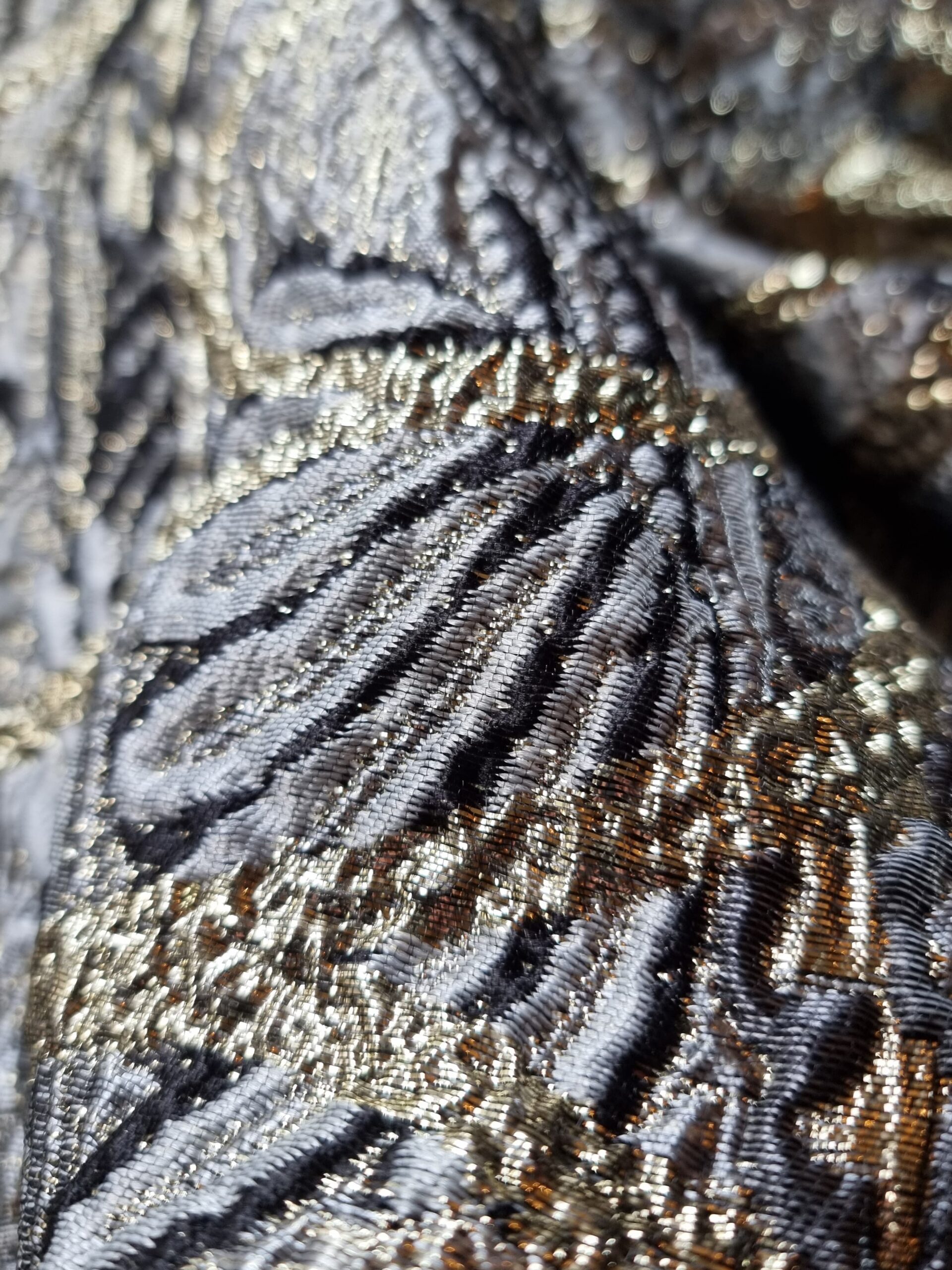 Tesatura Brocart pretios cu insertii de fir lurex – design royal, nuanțe de Gri / Auriu / Negru