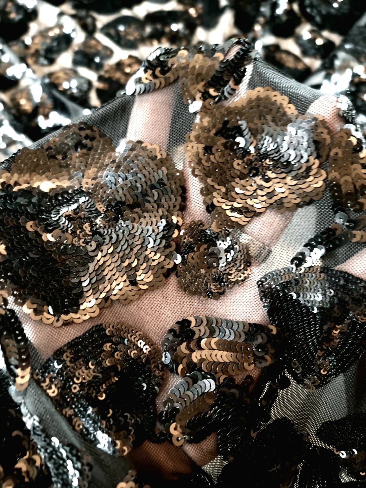 Tesatura acoperita cu paiete prin coasere manuala sau mecanica. In functie de modelul de aplicare se obtin modele spectaculoase , stralucitoare. Paietele sunt mici forme confectionate din metal, plastic sau sticla cu rol decorativ.