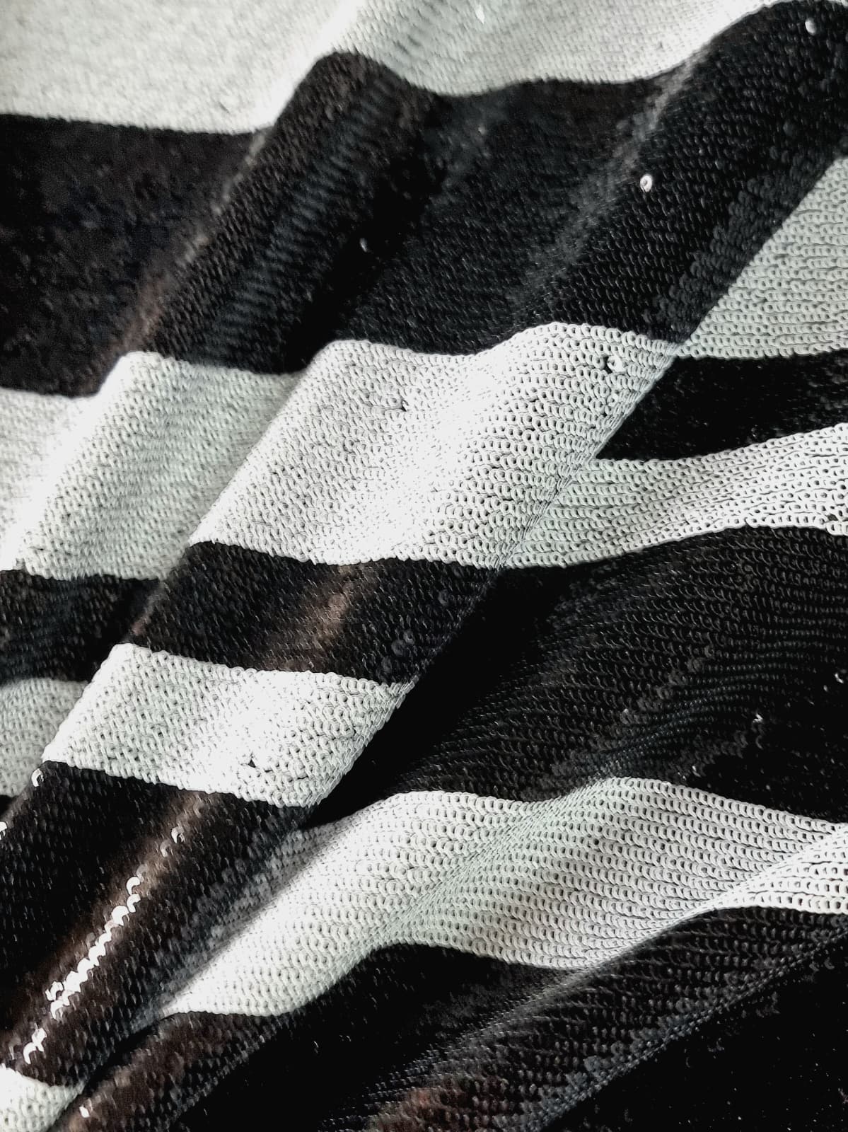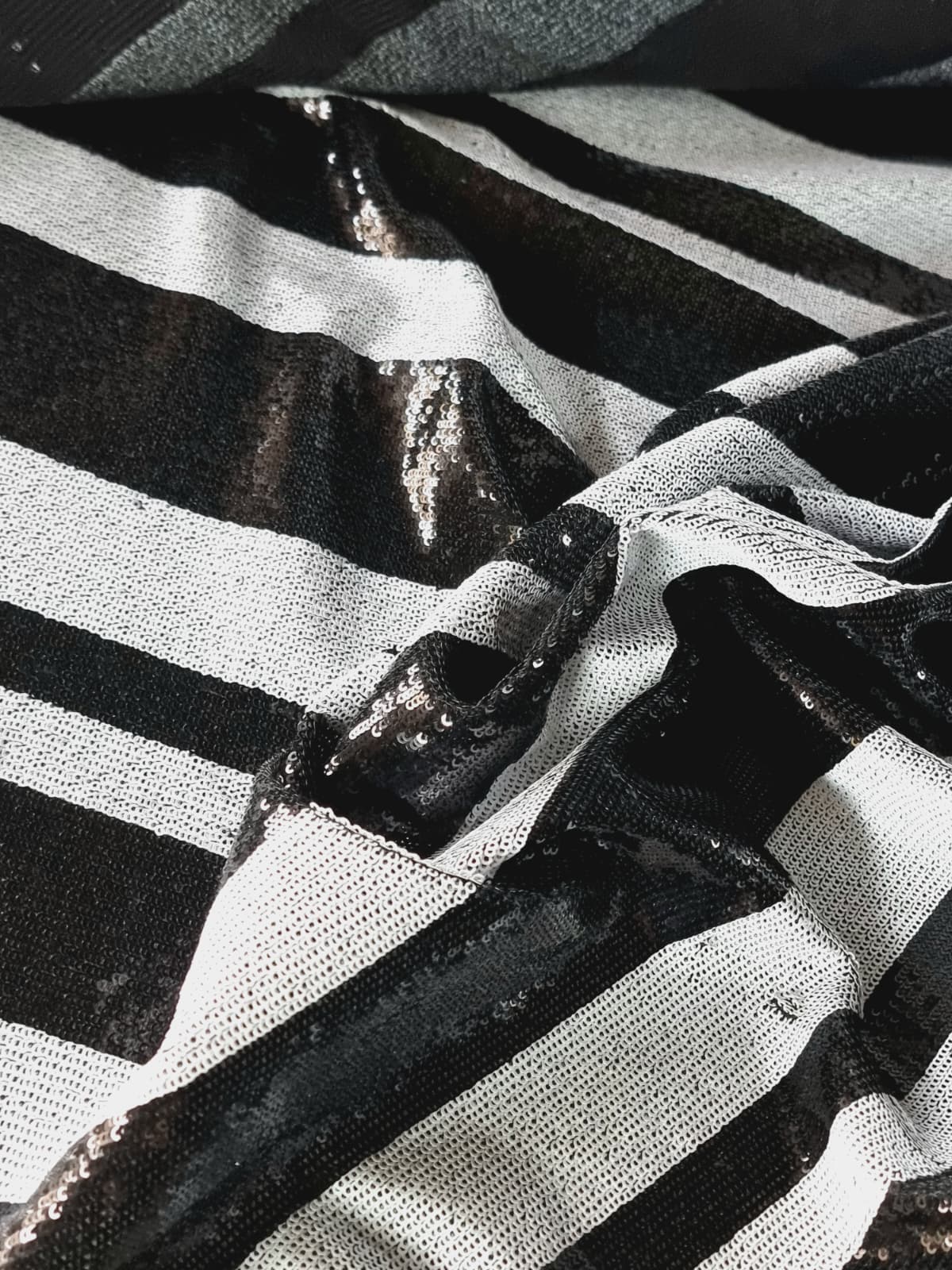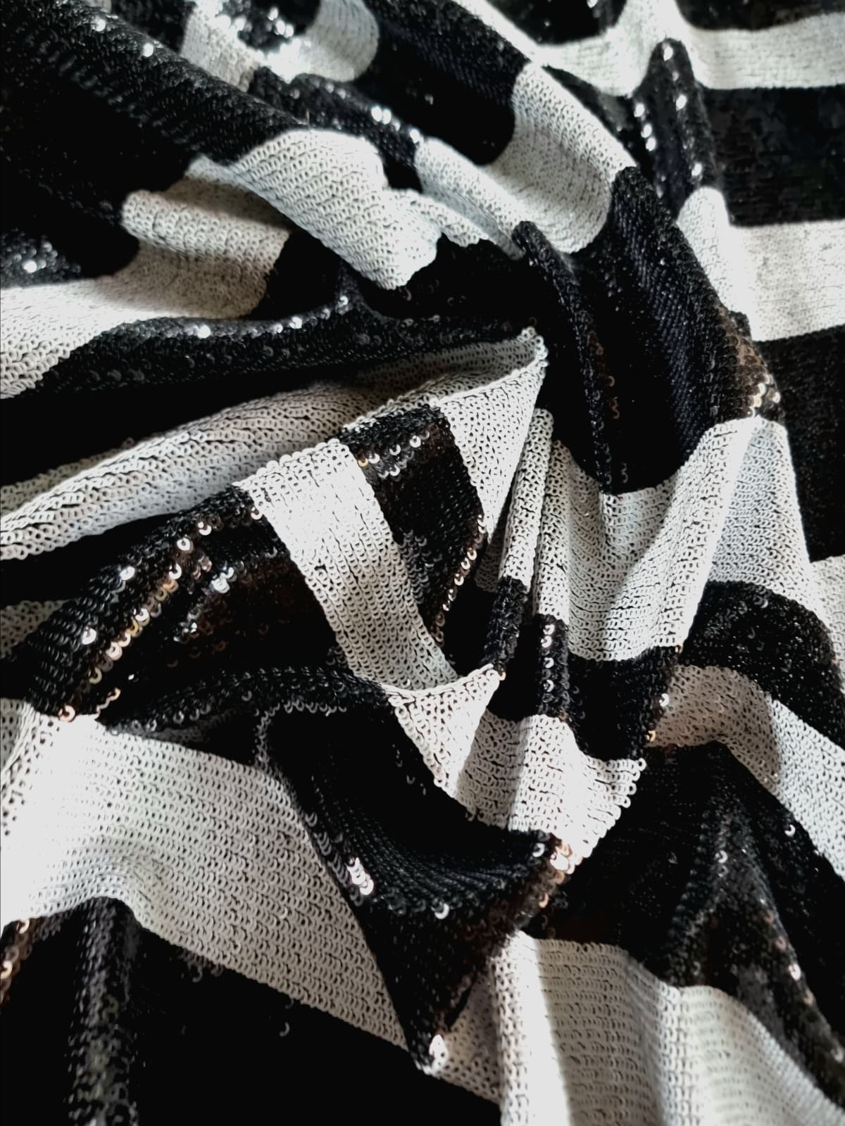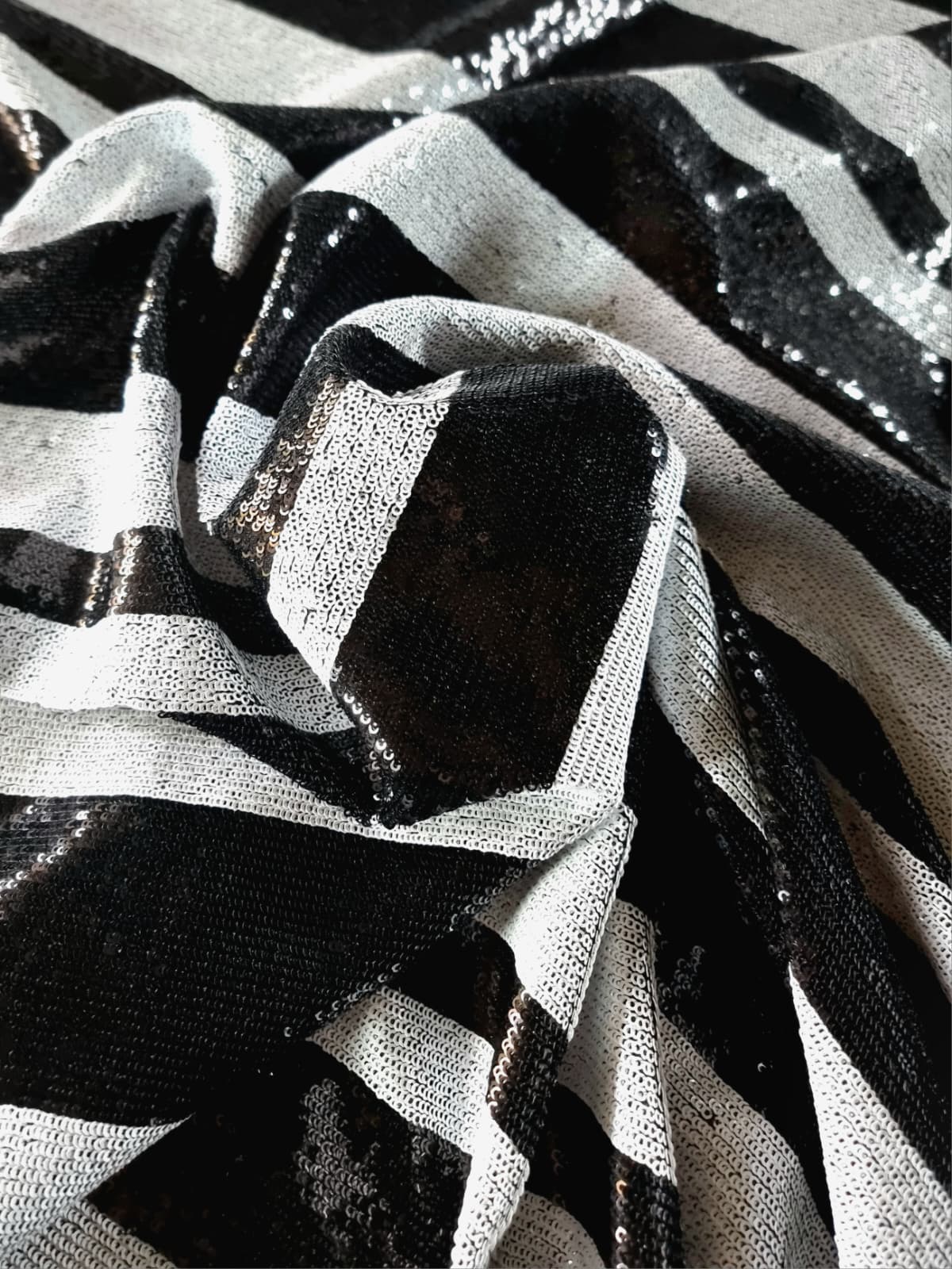 Tesatura brodata cu micropaiete și urzeala in diagonală – joc Alb/Negru