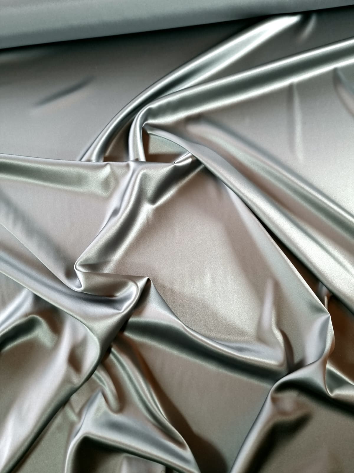 Tesatura crepe de chine din matase naturala – design uni double face, Gri