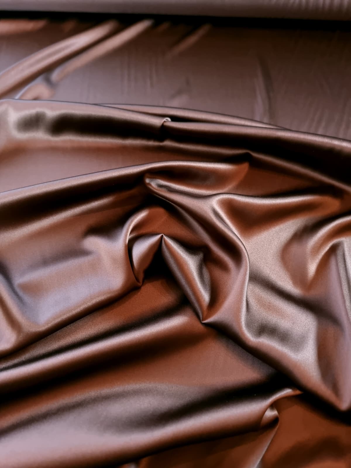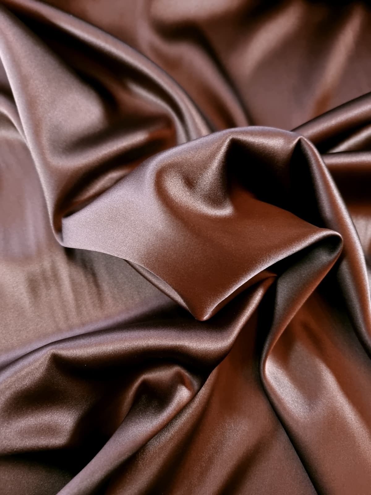 Tesatura crepe de chine din matase naturala – design uni double face, Maro Chocolate