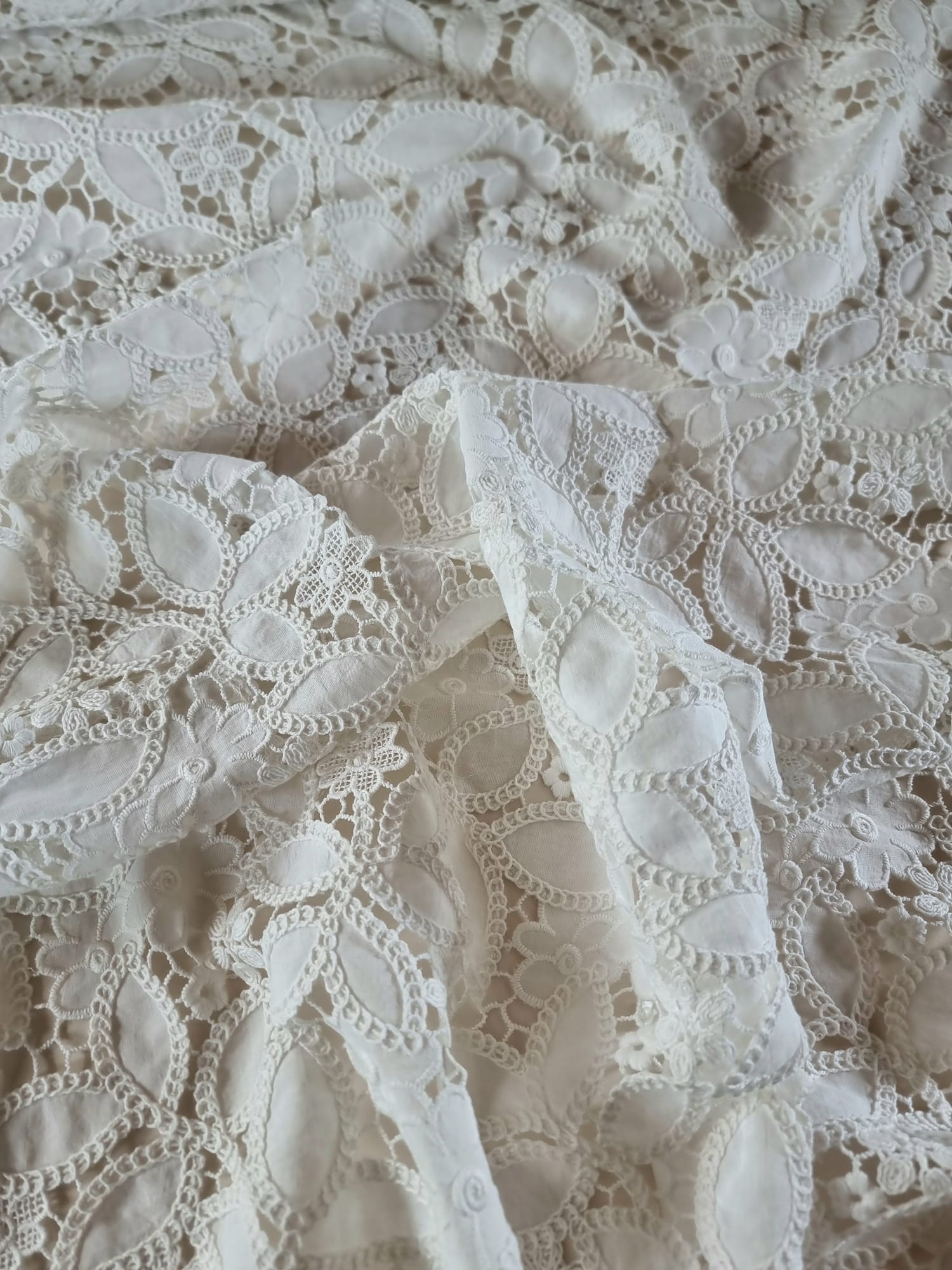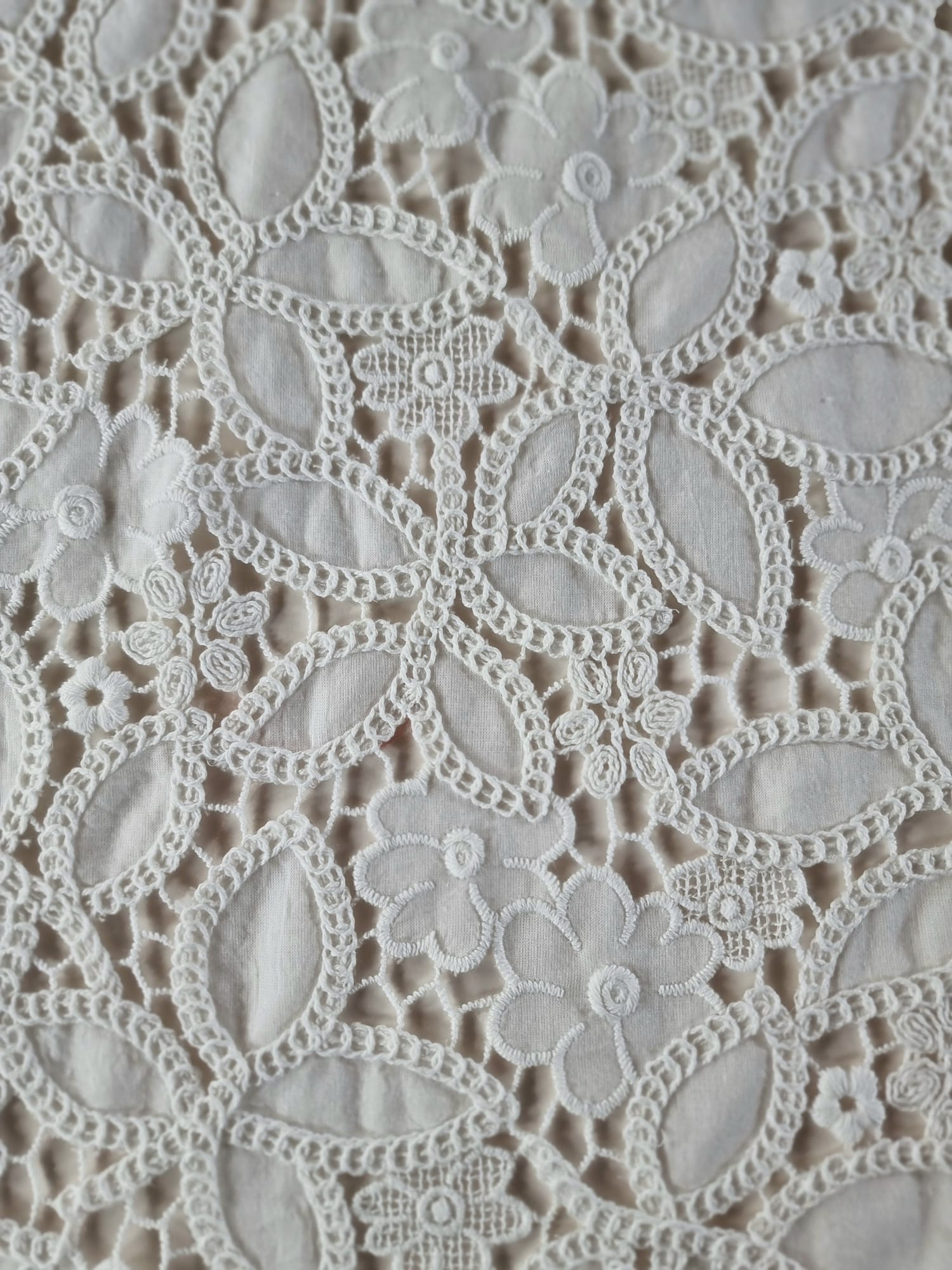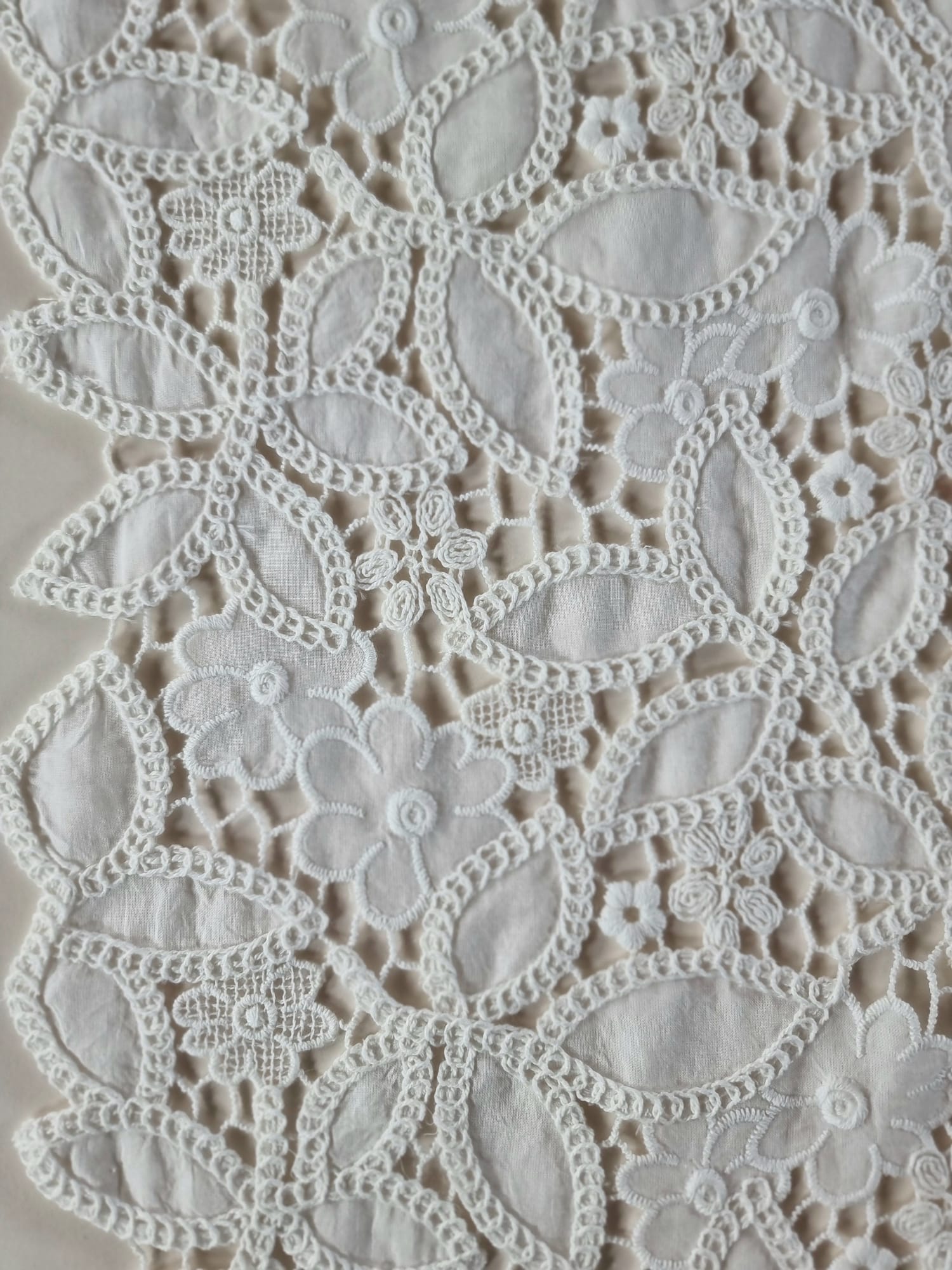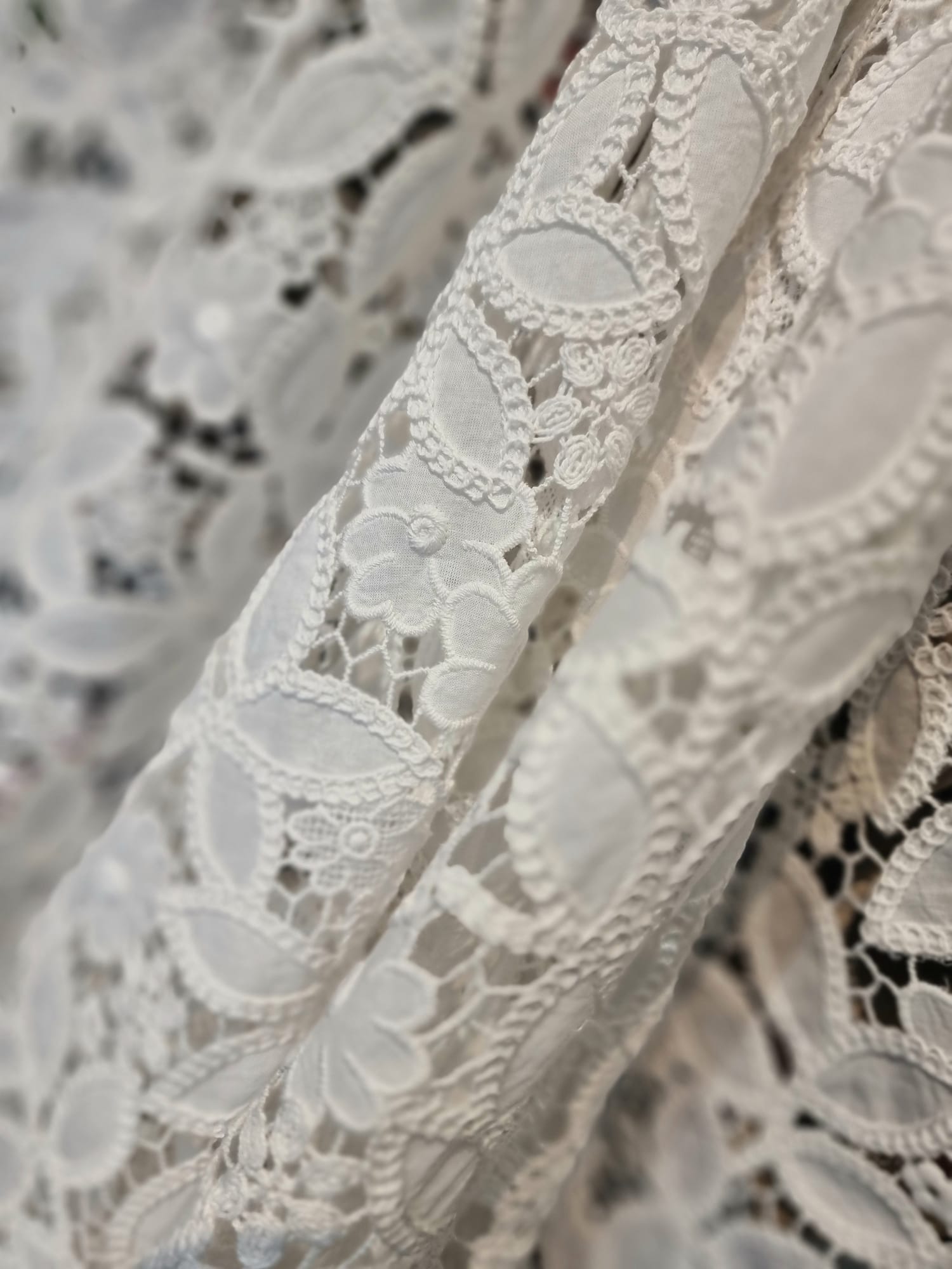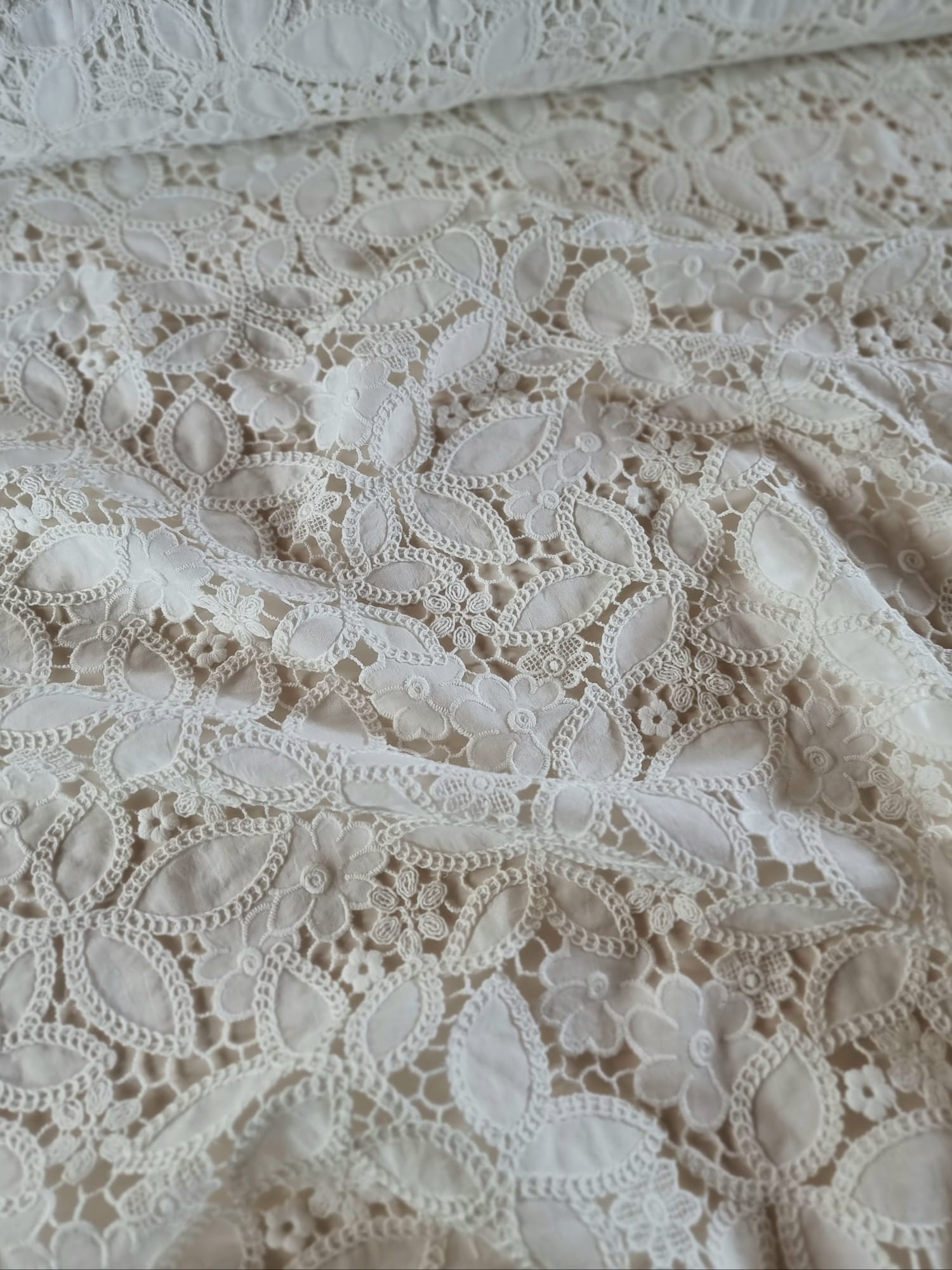 Tesatura cu broderie ajurata spartă pe suport de bumbac – design floral, Ivoire