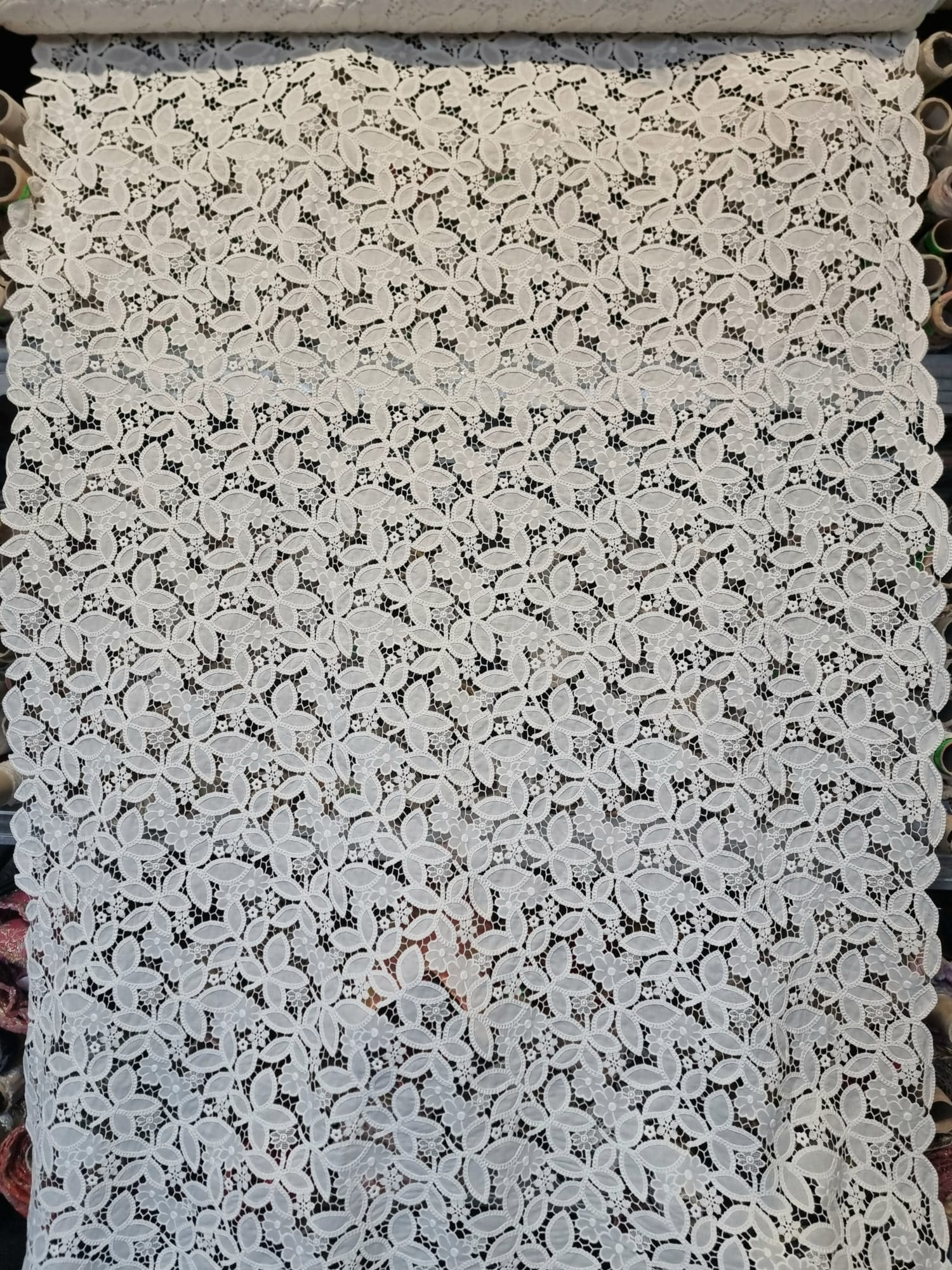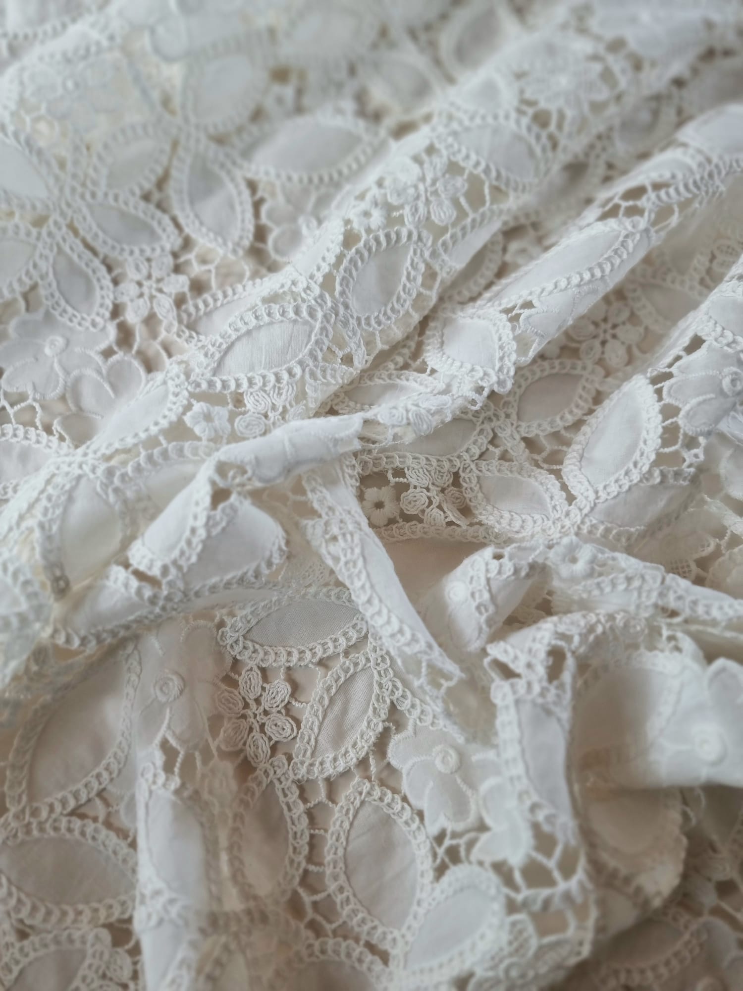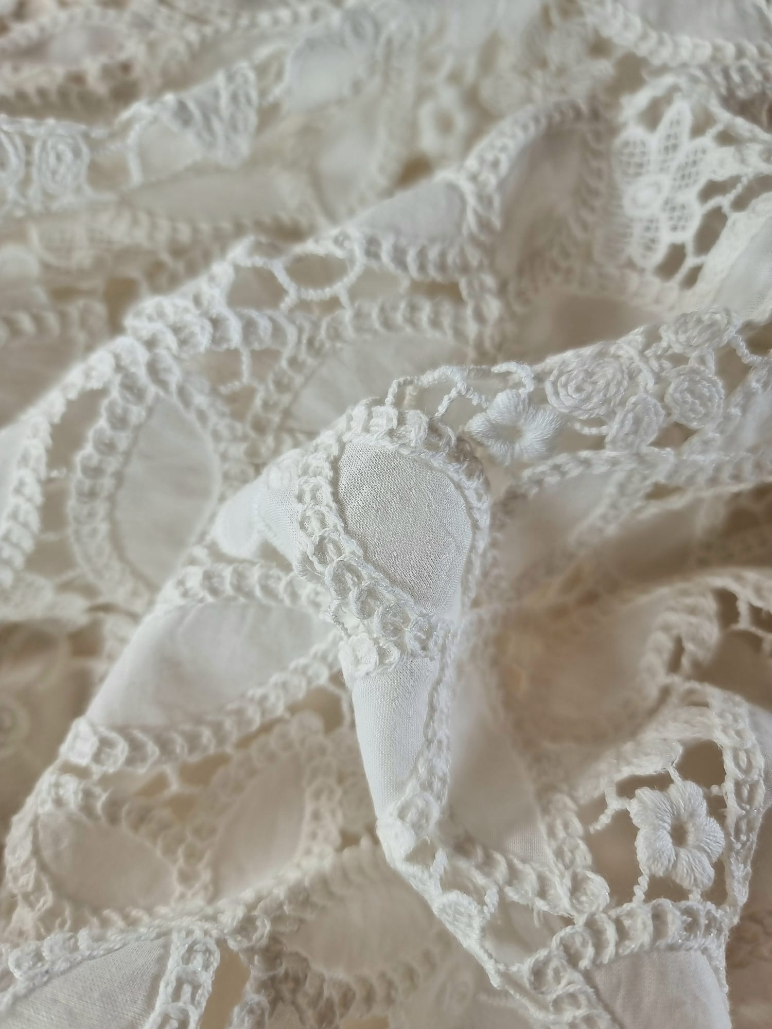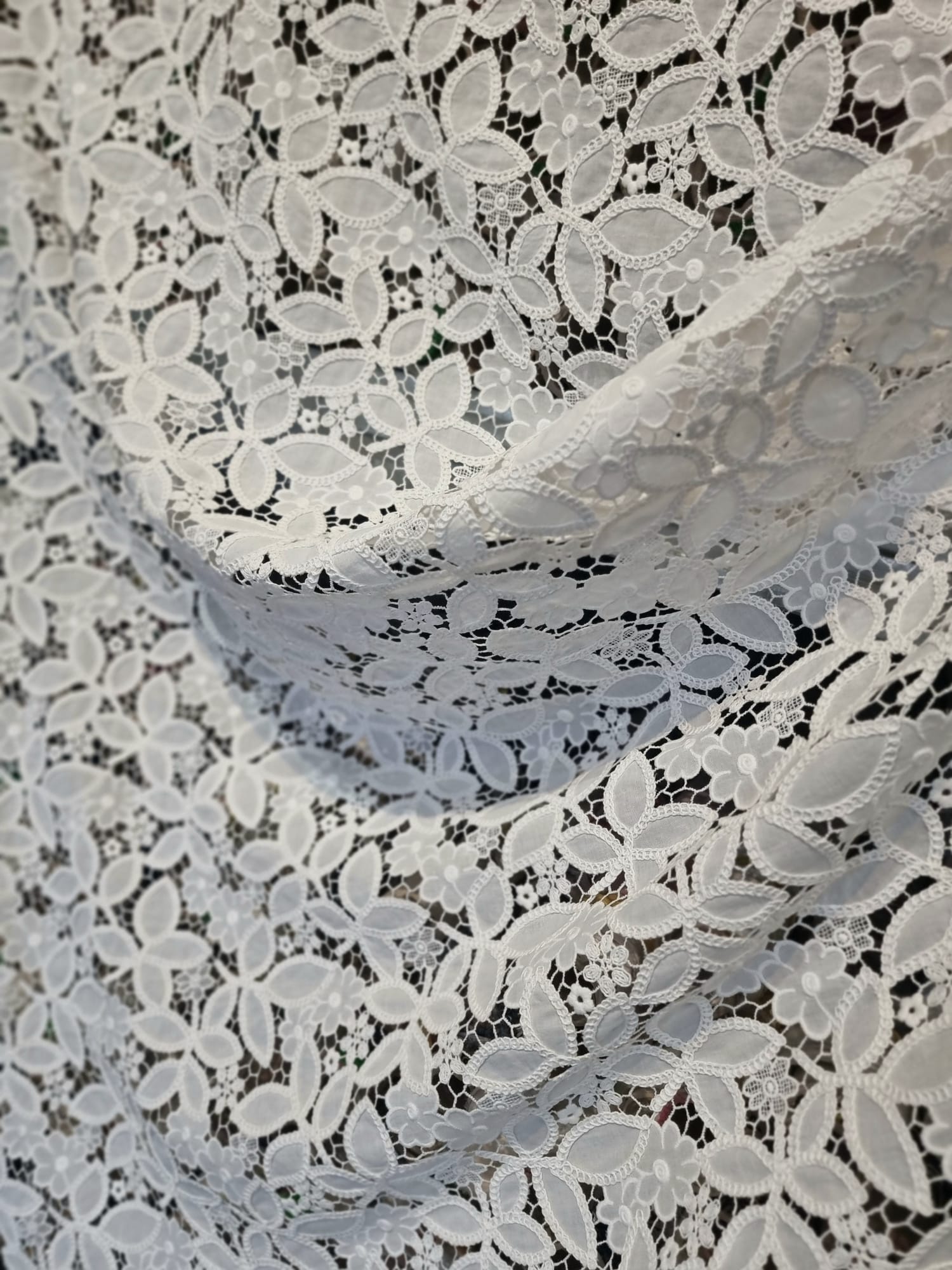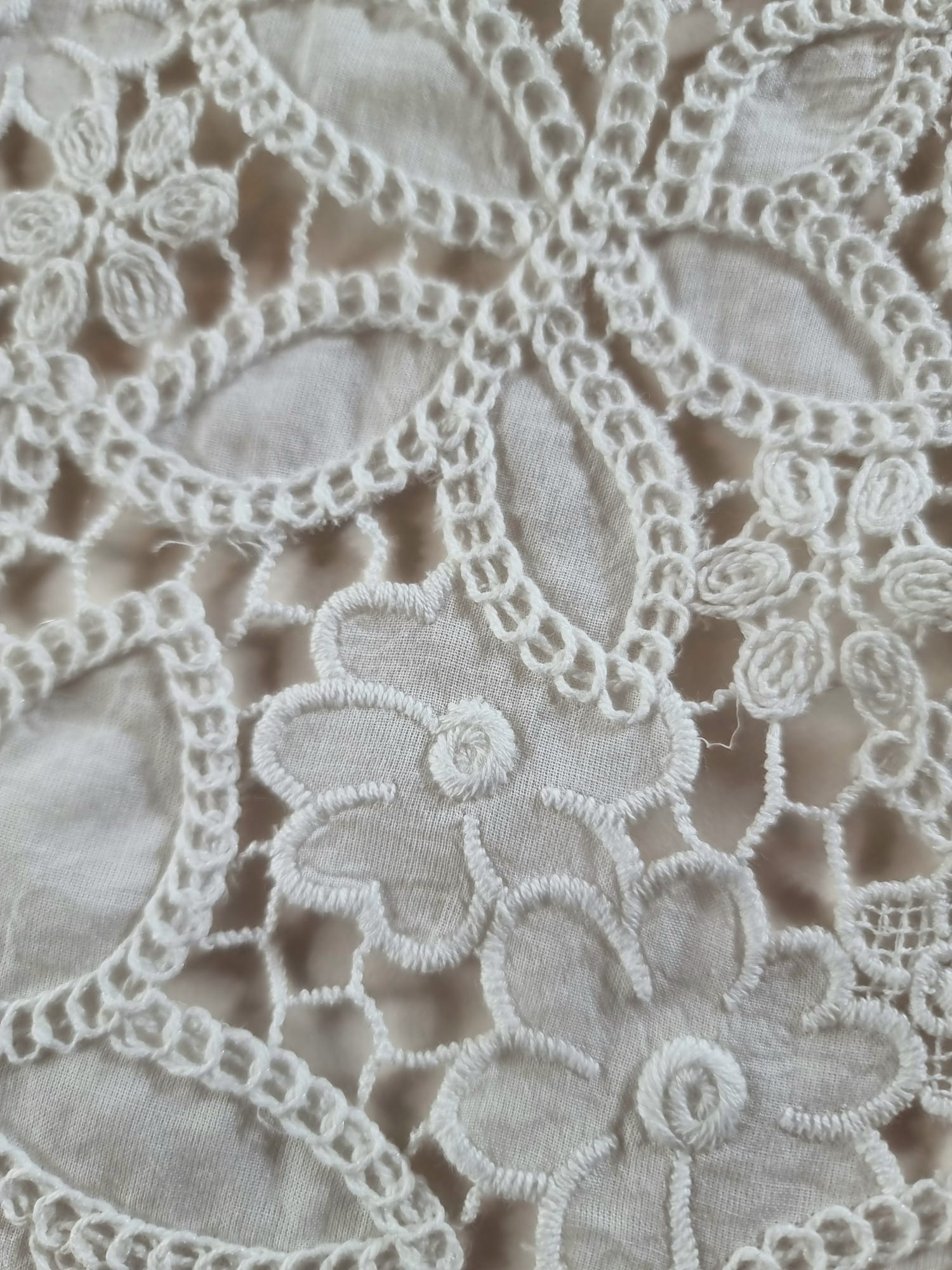 Tesatura cu broderie ajurata spartă pe suport de bumbac – design floral, Ivoire