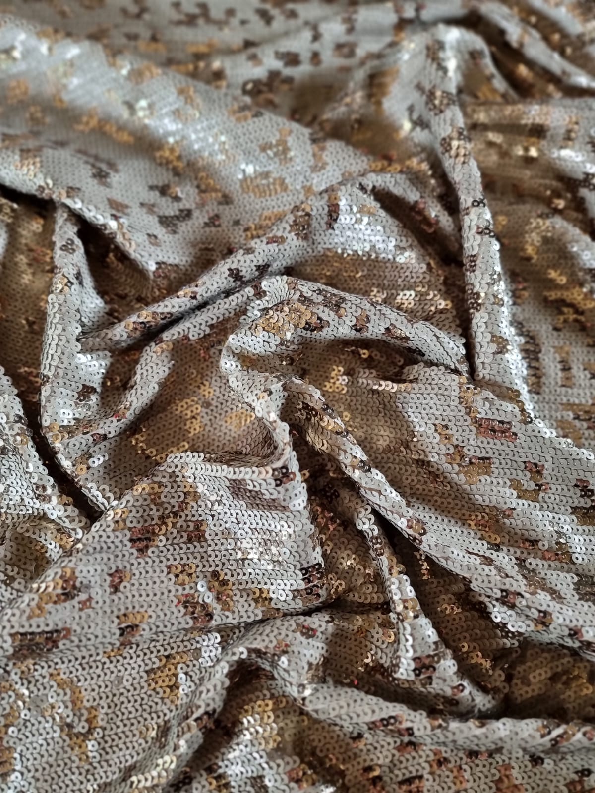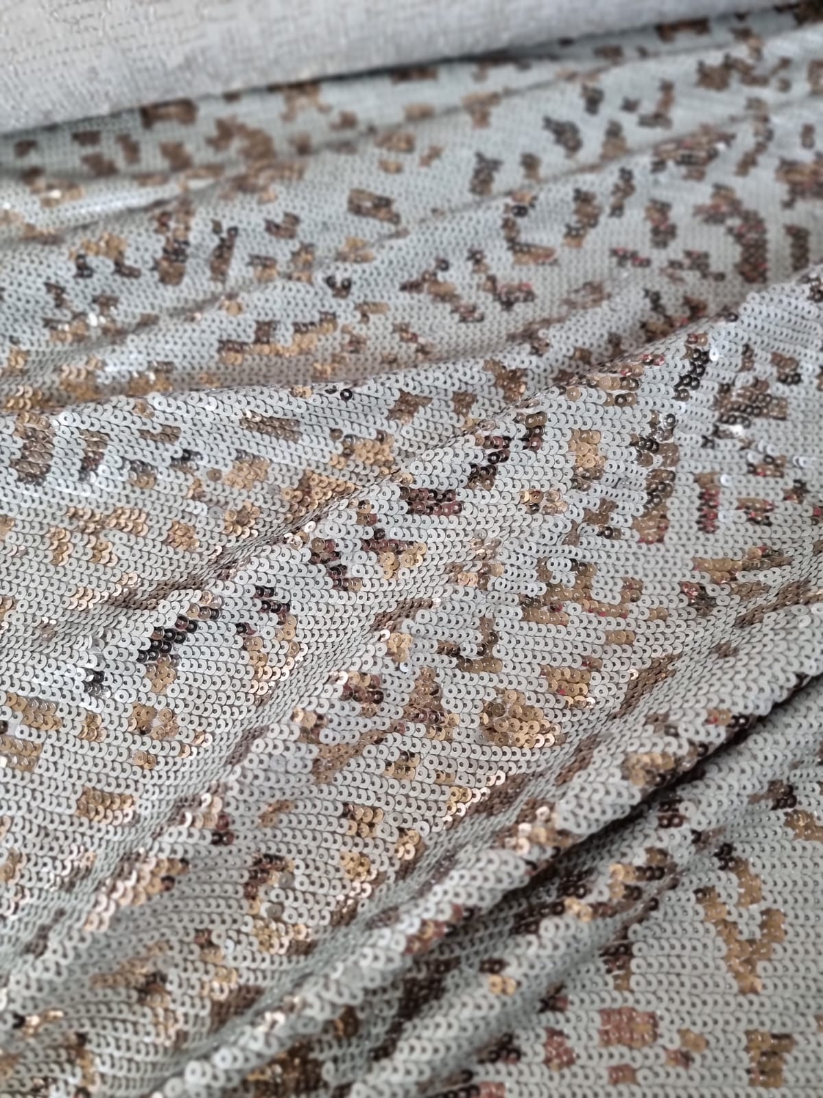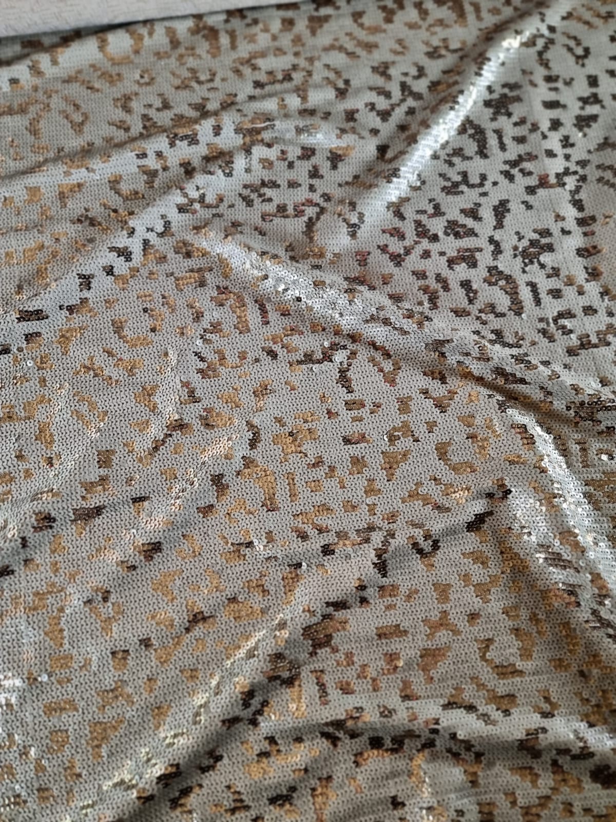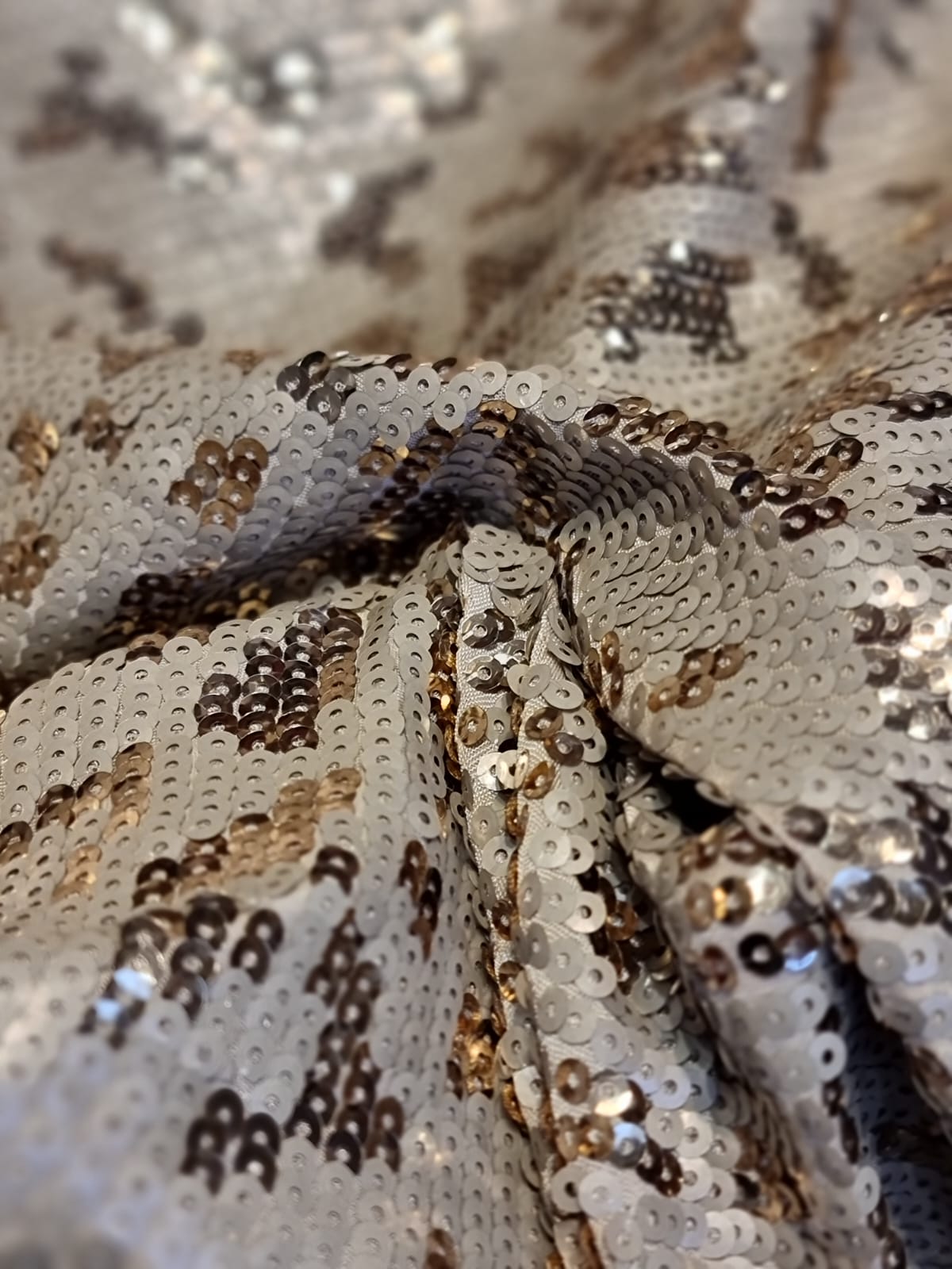 Tesatura cu broderie cu paiete pe toată suprafața – suport elastic, Bej / Auriu
