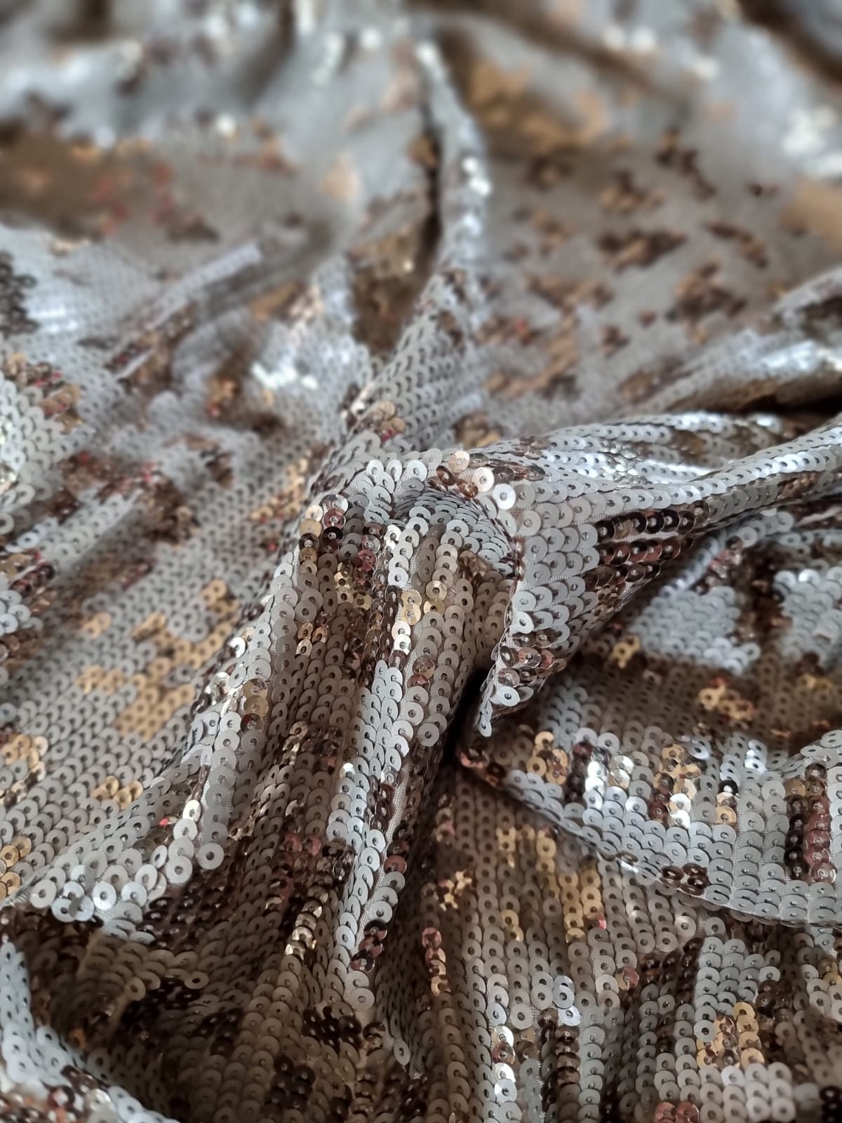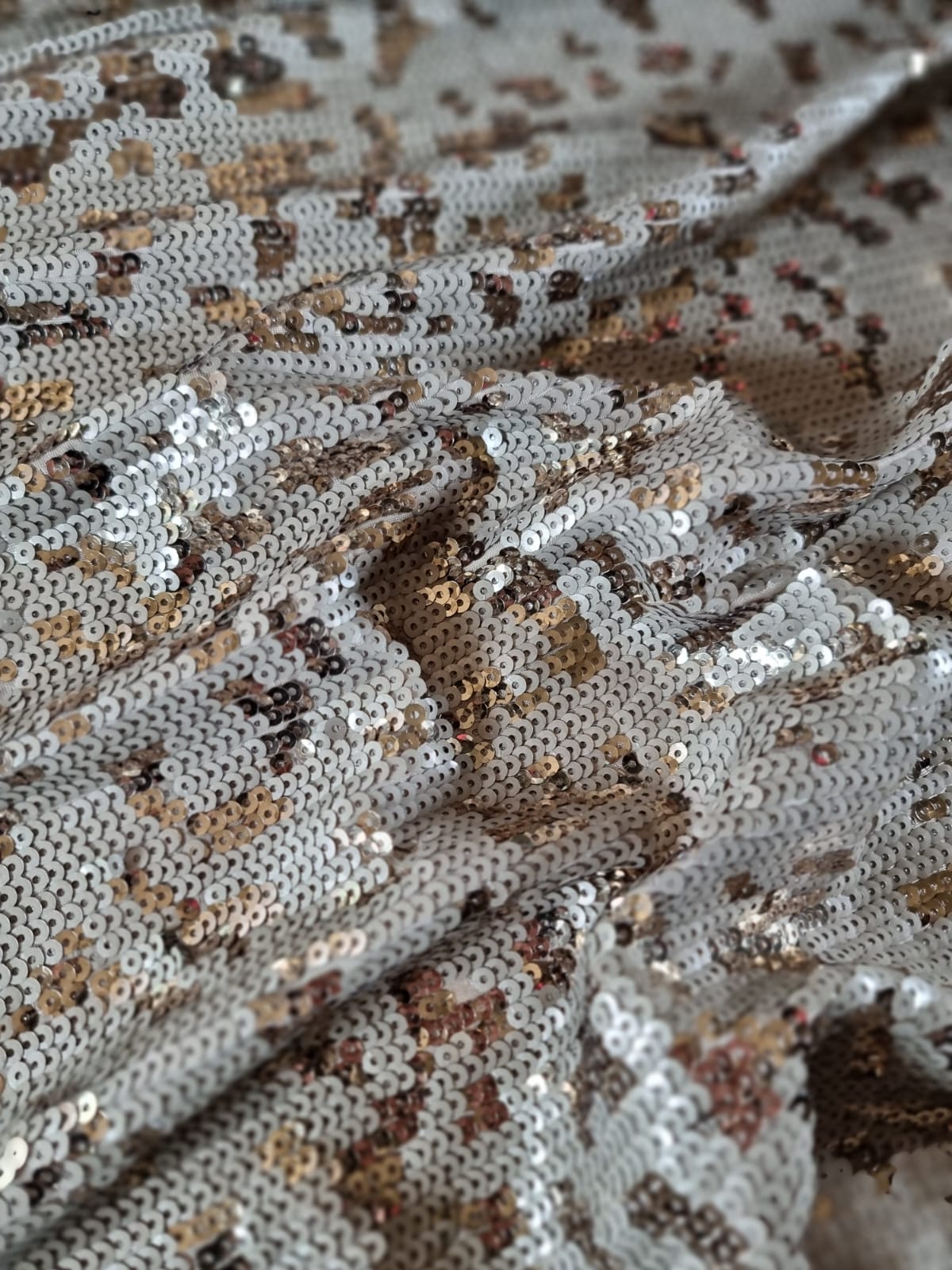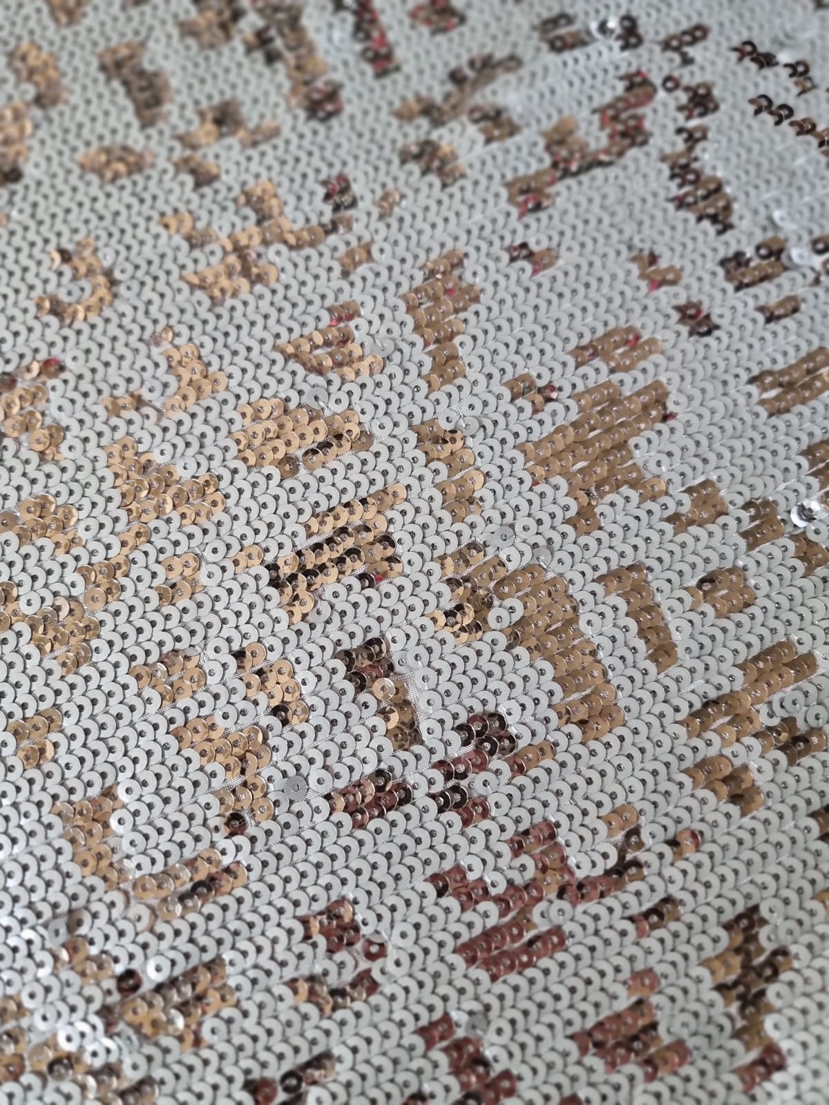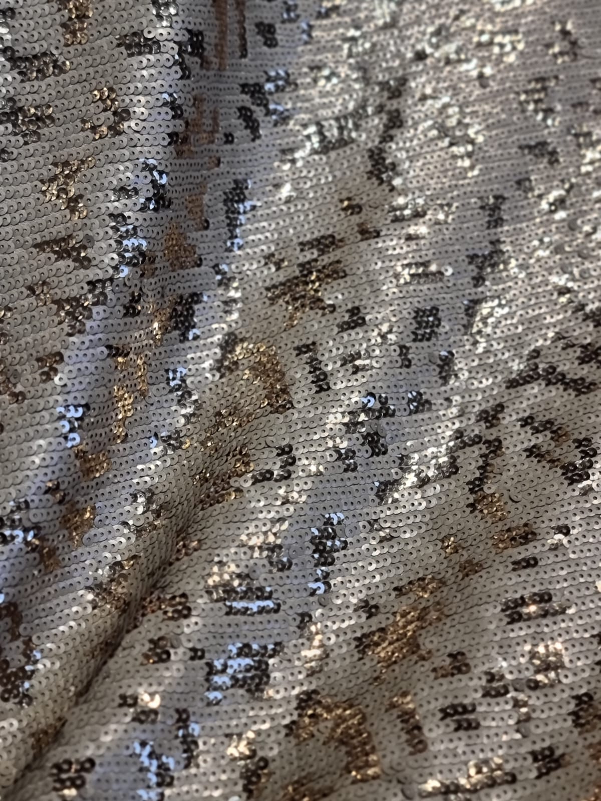 Tesatura cu broderie cu paiete pe toată suprafața – suport elastic, Bej / Auriu
