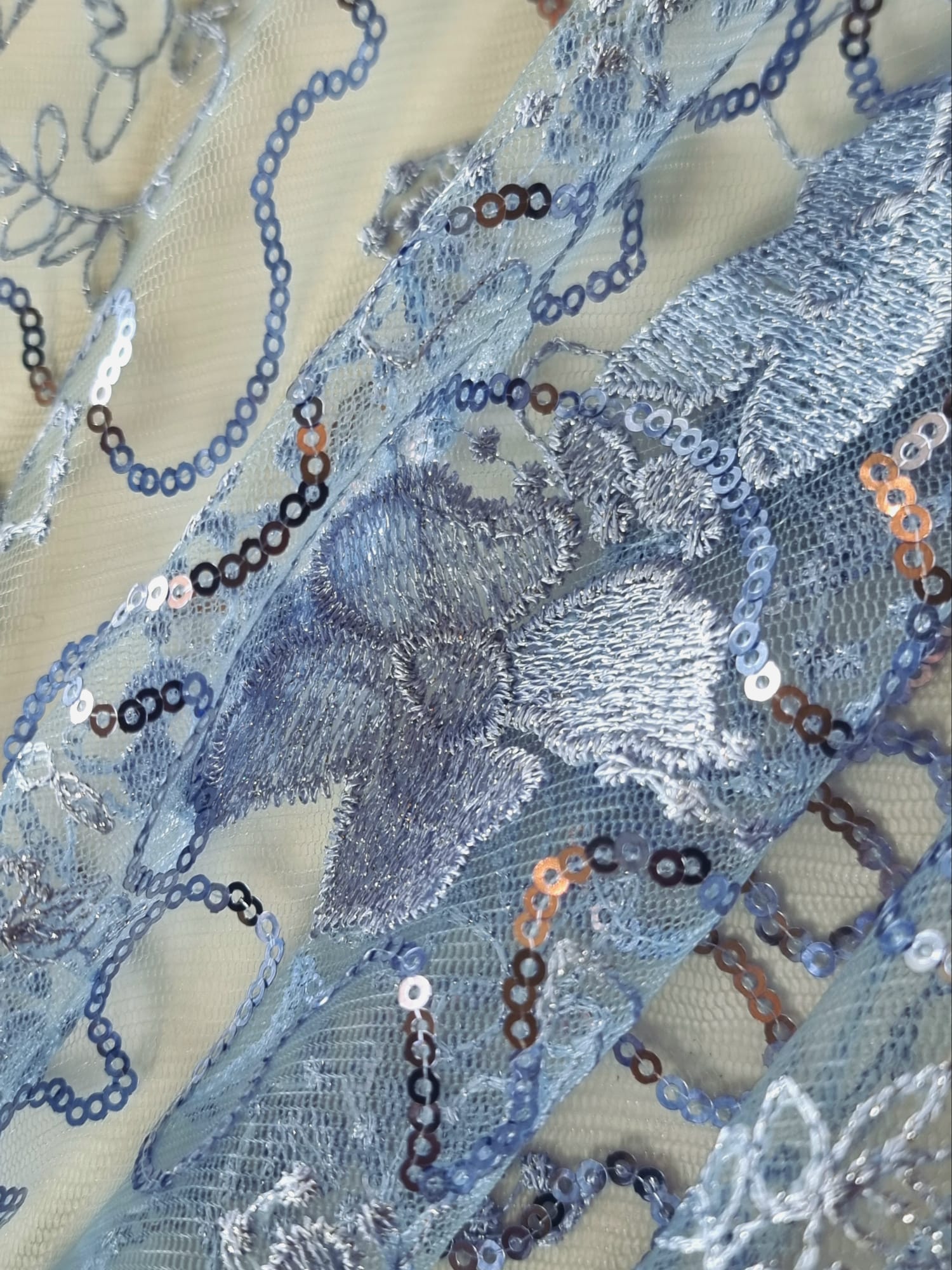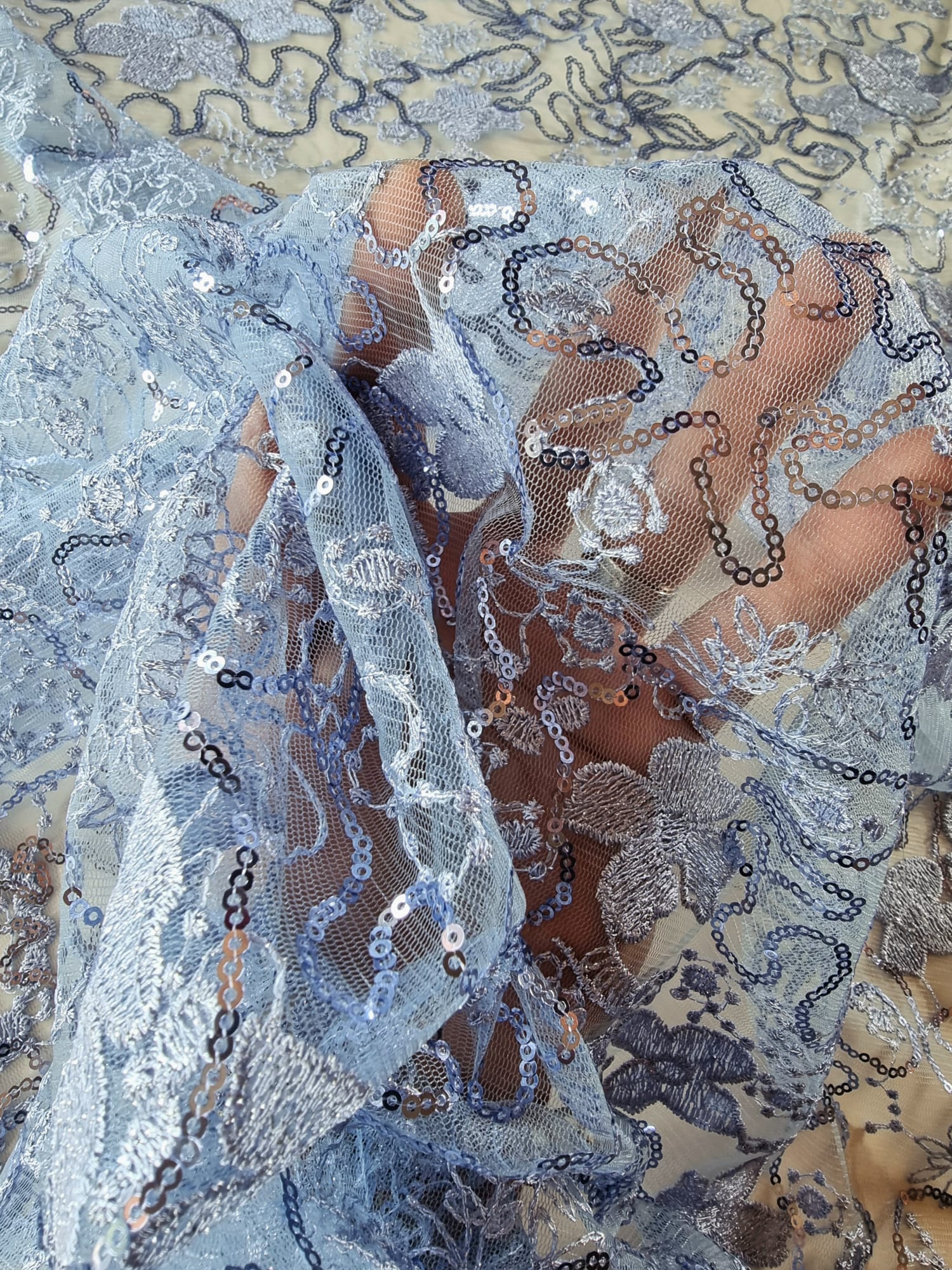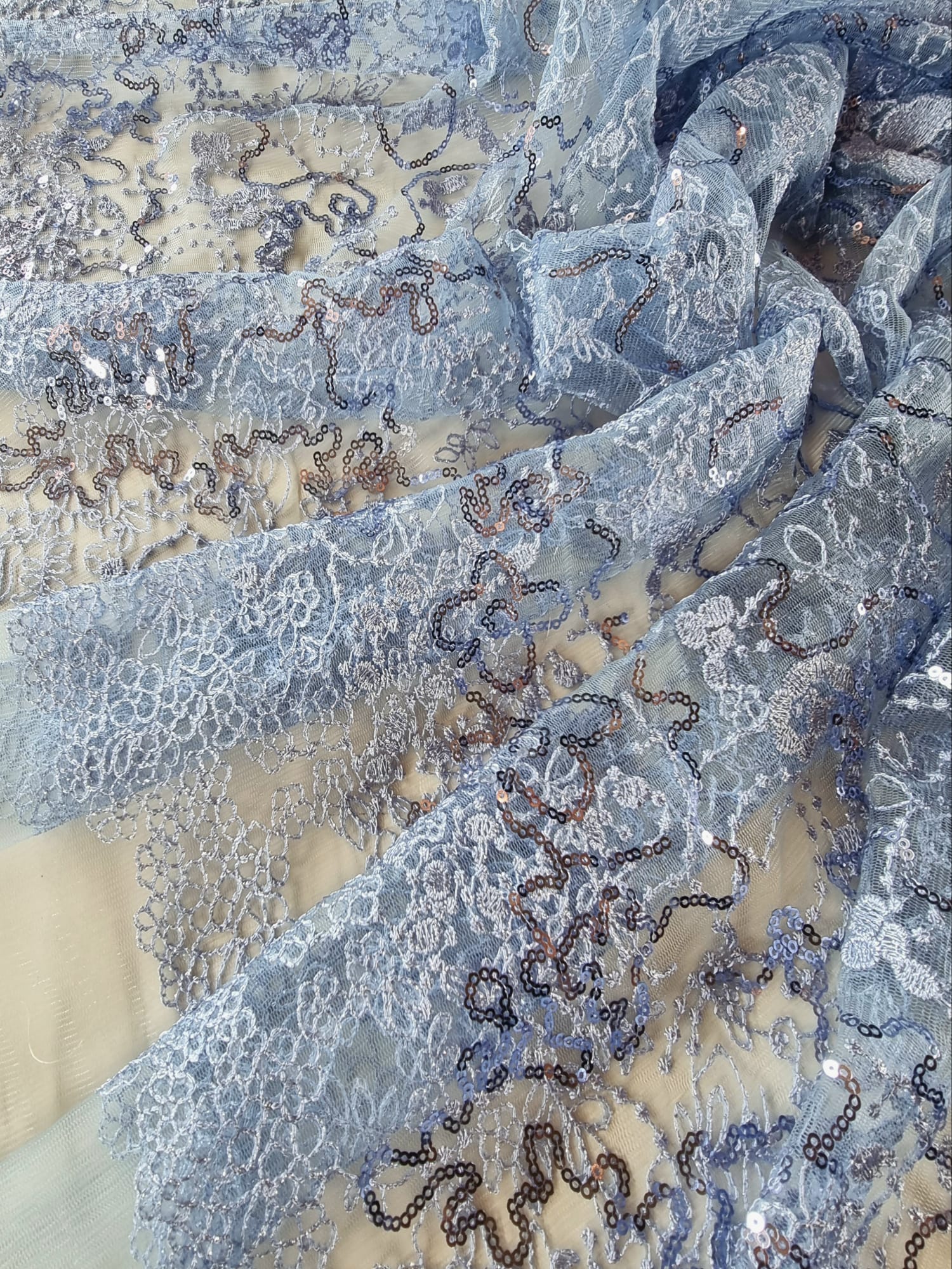 Tesatura acoperita cu paiete prin coasere manuala sau mecanica. In functie de modelul de aplicare se obtin modele spectaculoase , stralucitoare. Paietele sunt mici forme confectionate din metal, plastic sau sticla cu rol decorativ.