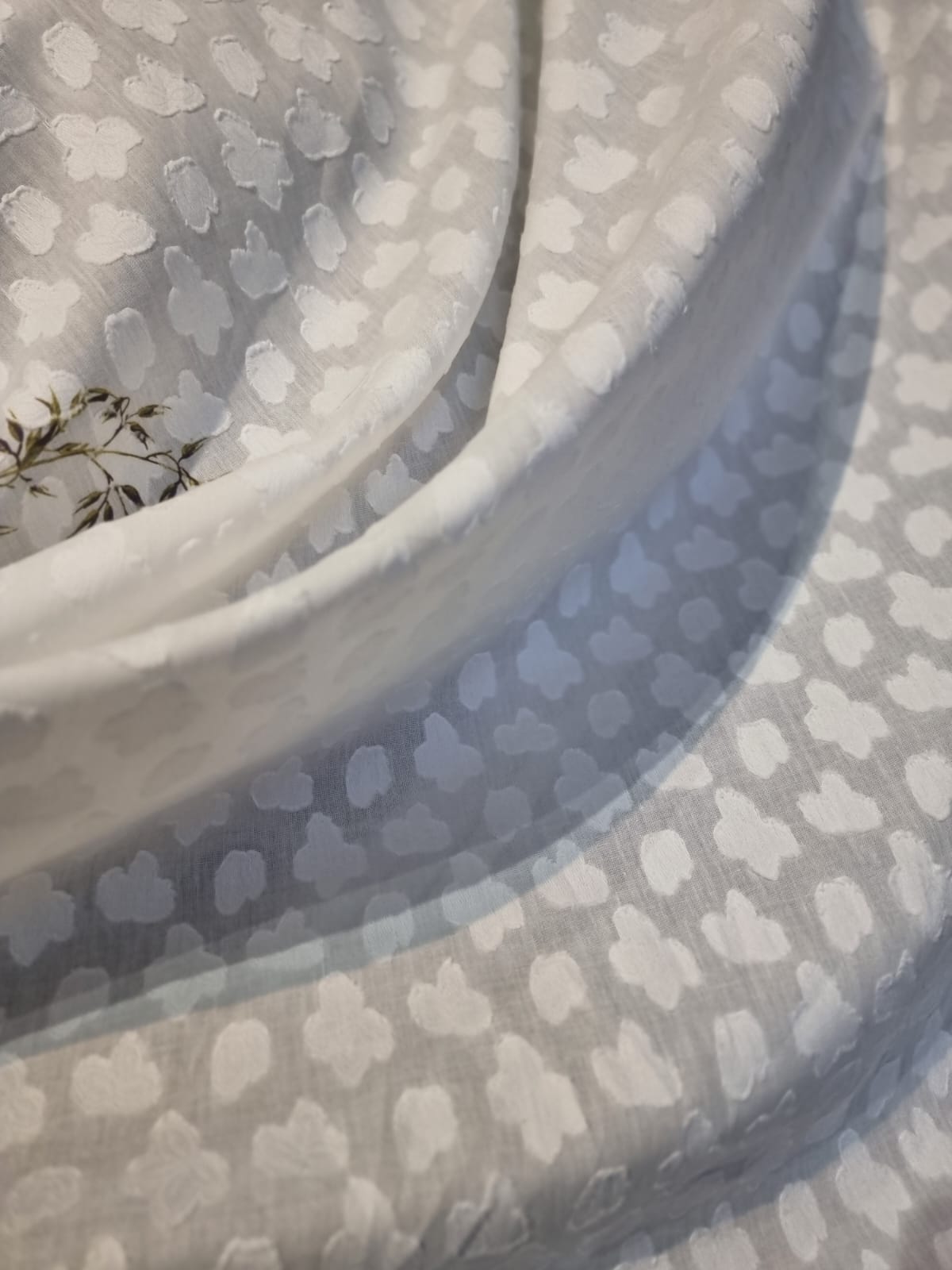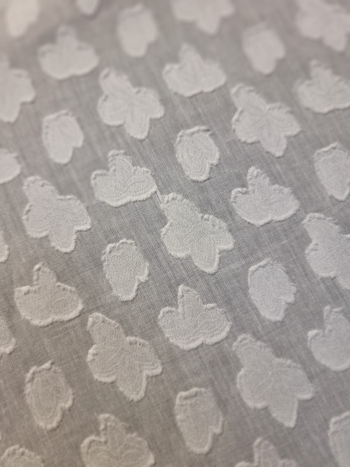 Țesătura fil coupé este un material elegant, cu modele create prin tăierea firelor suplimentare de bătătură sau urzeală, lăsând mici franjuri, textură speifica decorativa pe suprafață. Oferă un efect sofisticat, aproape brodat, fiind folosită frecvent în moda de lux pentru rochii, bluze și eșarfe cu textură rafinată.