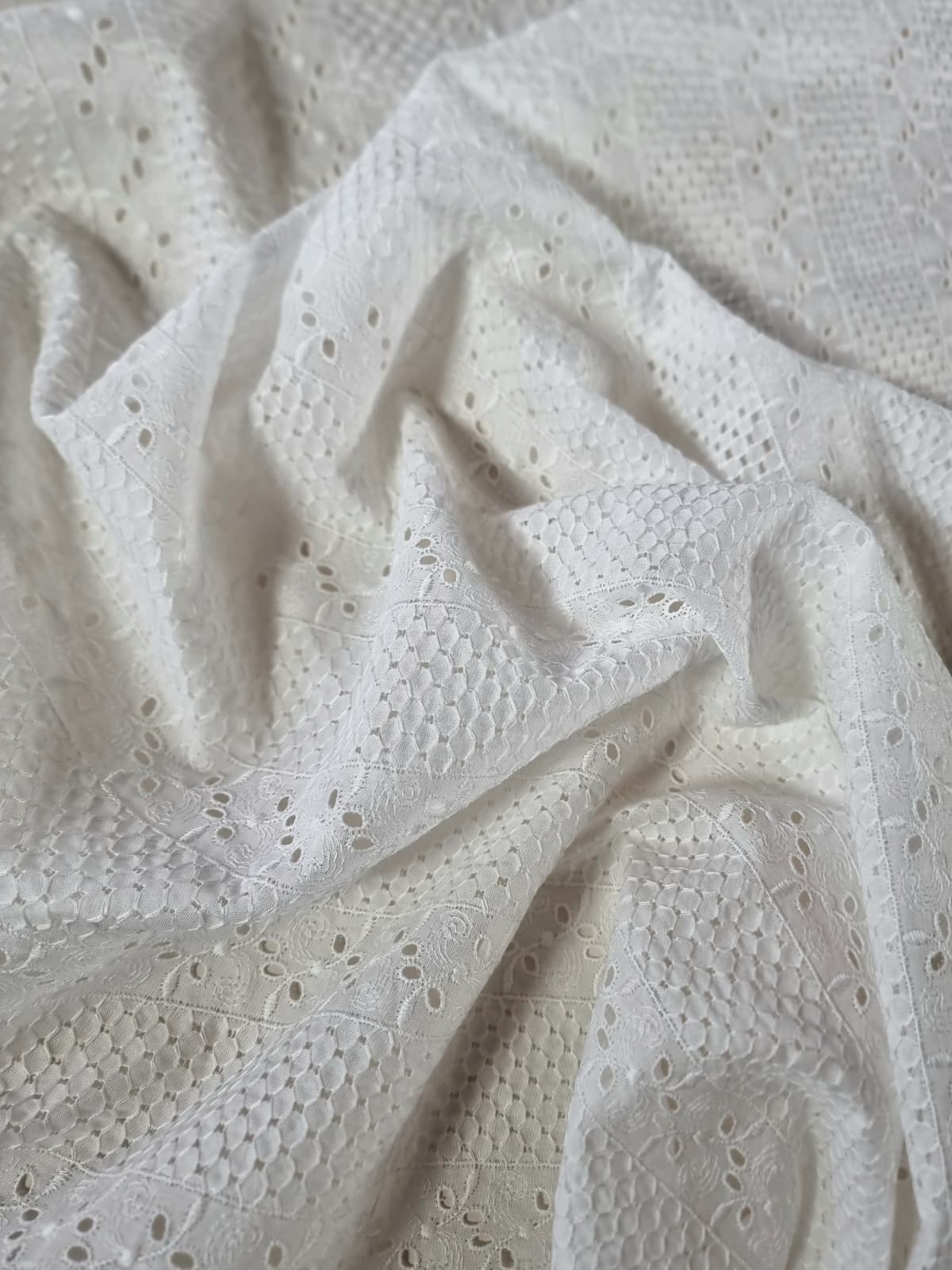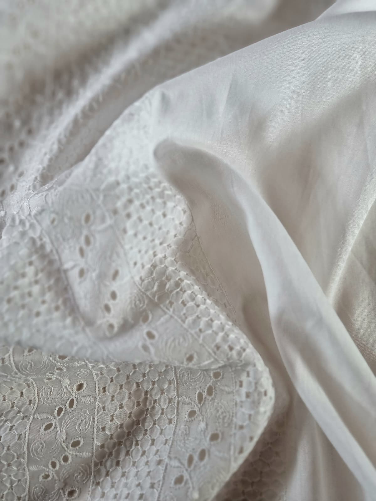 Tesatura din bumbac fin – batist cu broderie spartă, Alb