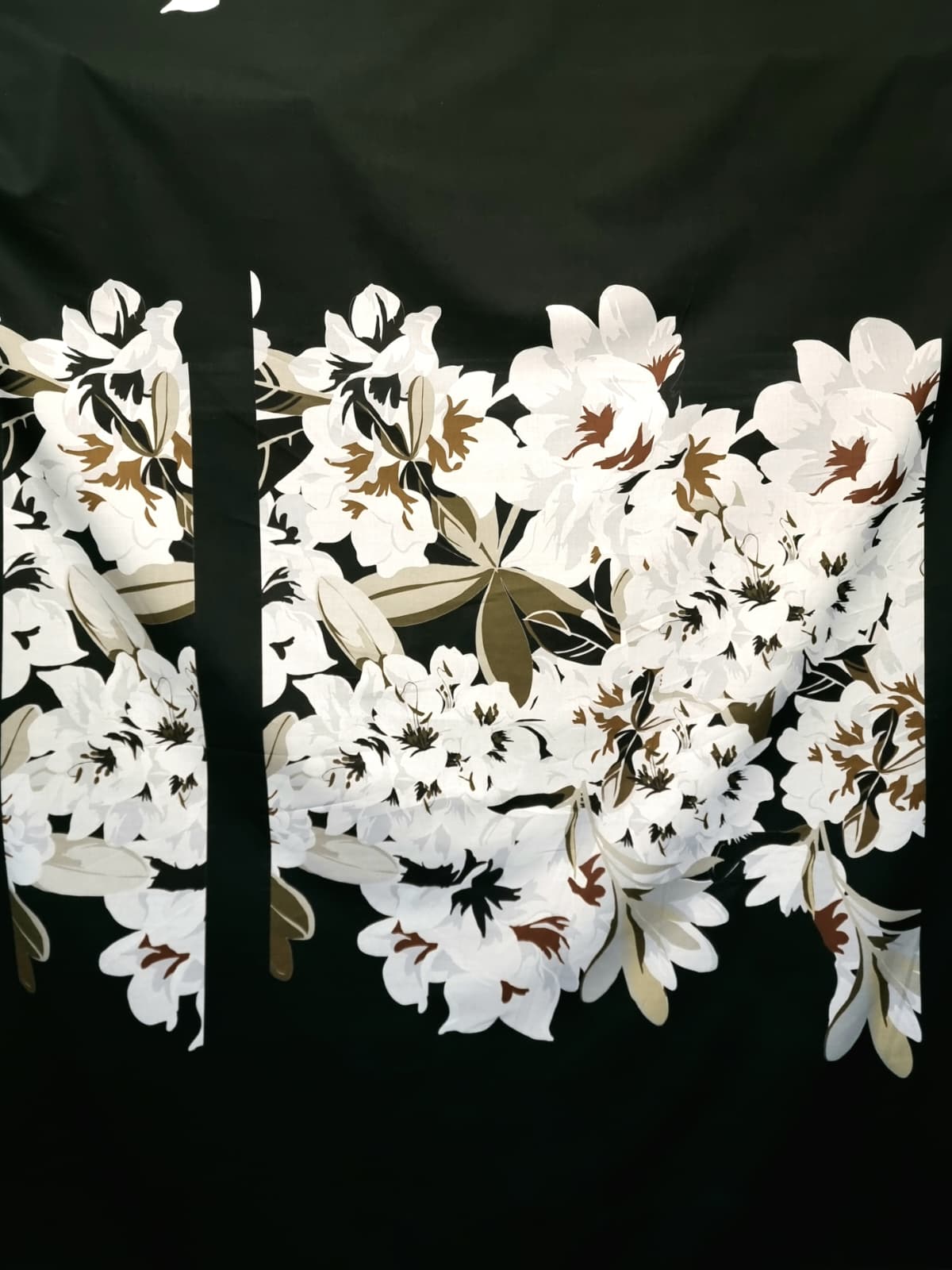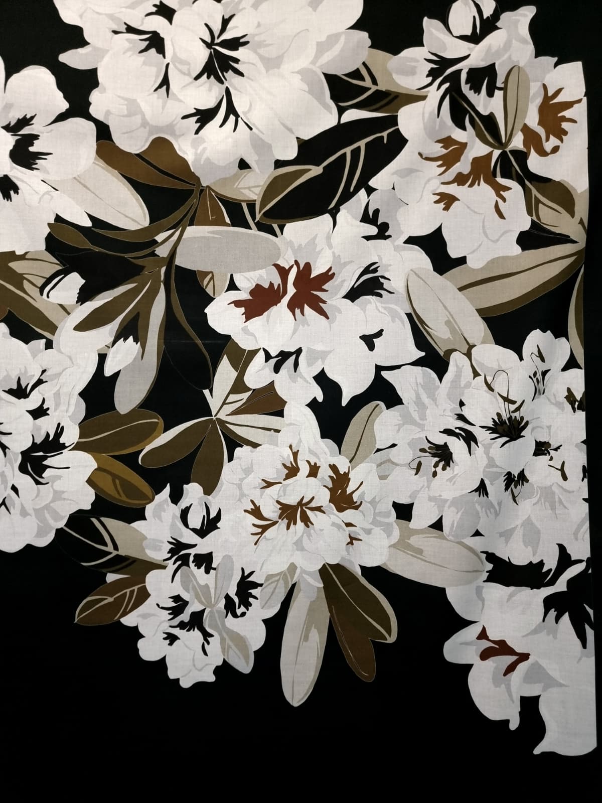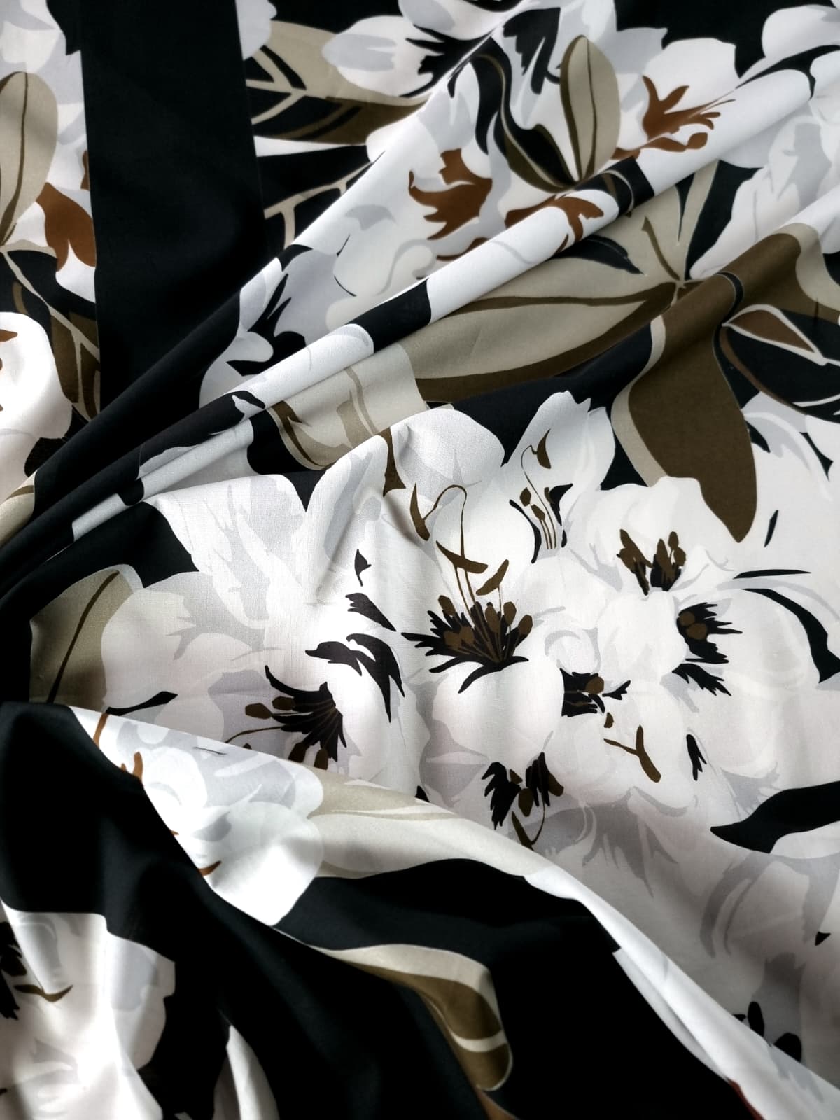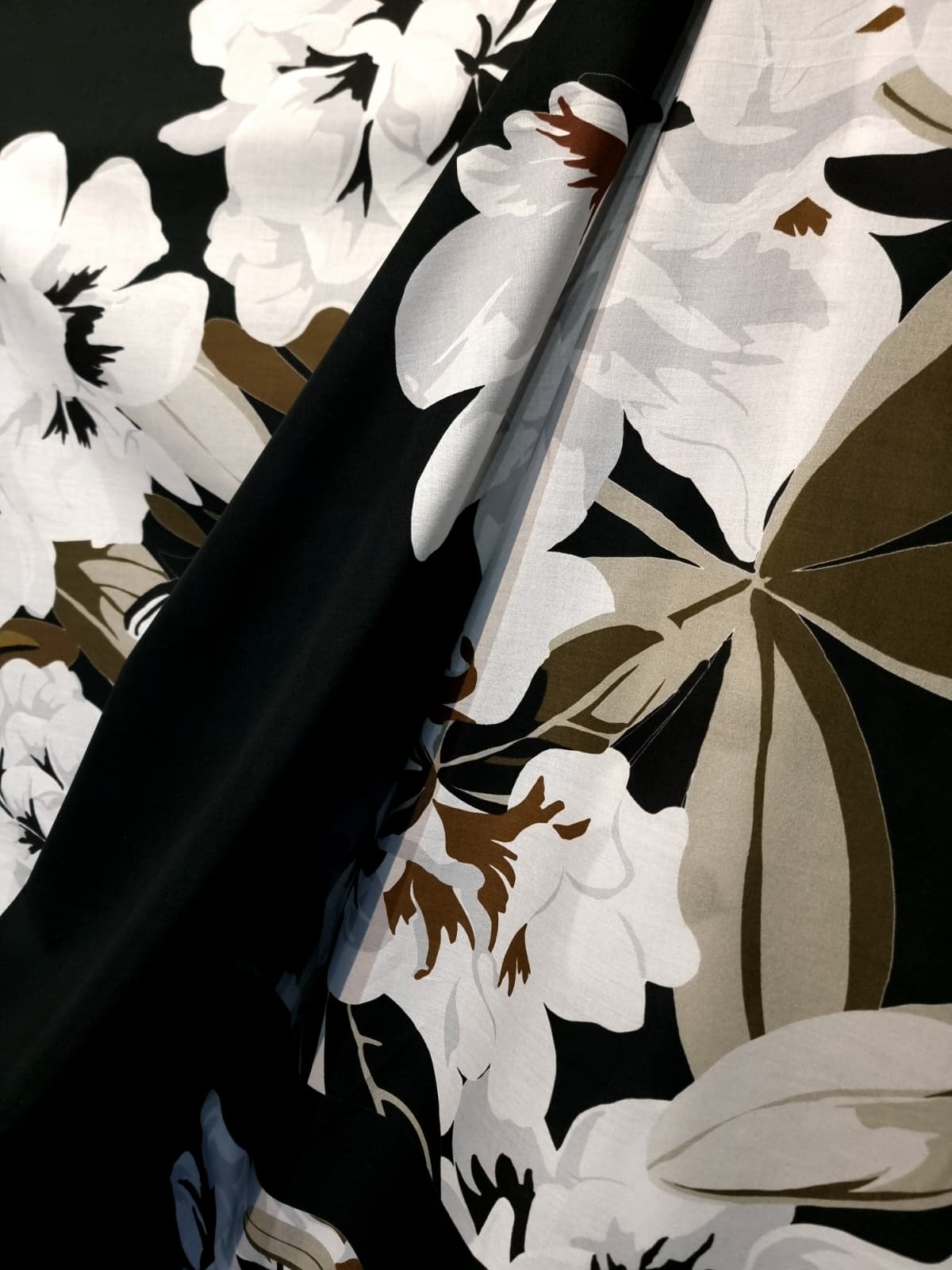 Tesatura din bumbac tip popline – sub formă de panou cu design floral, Alb / Kaki / Roscat / Negru
