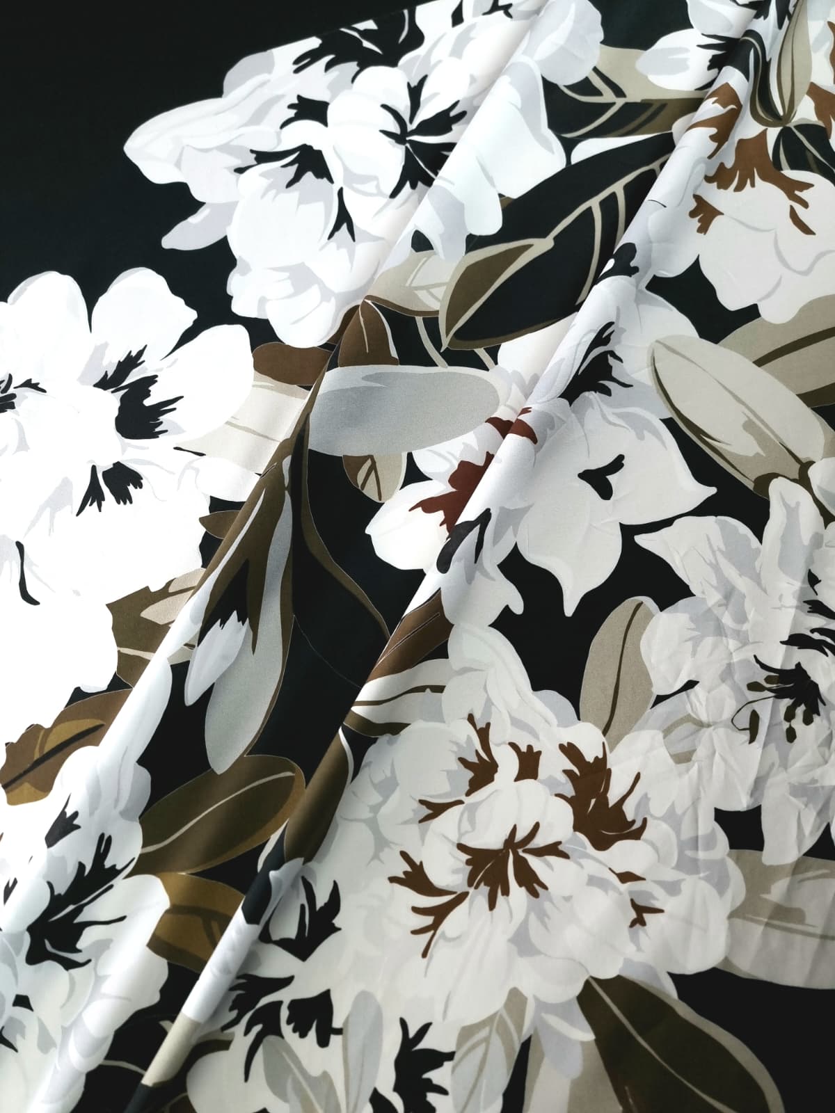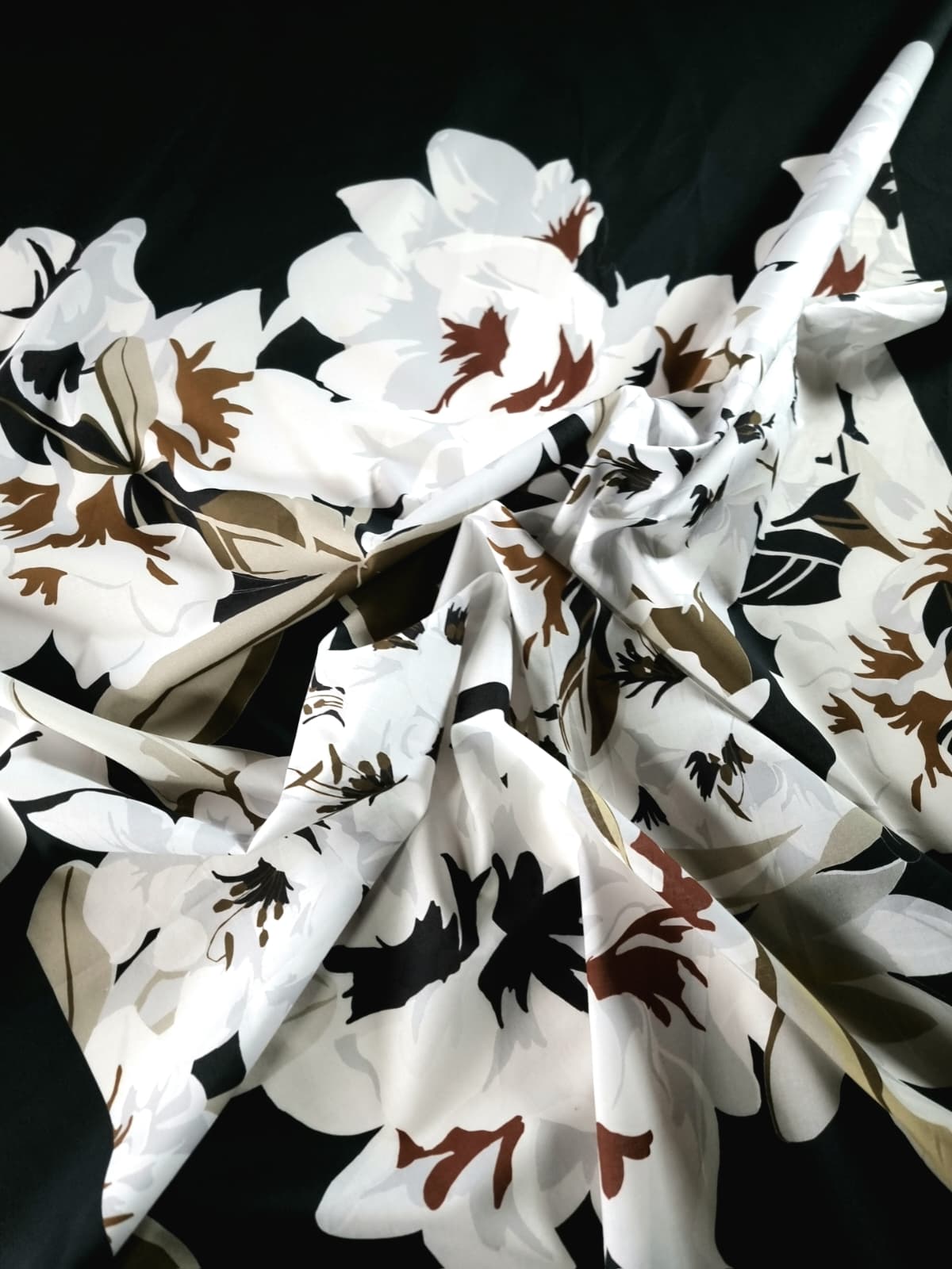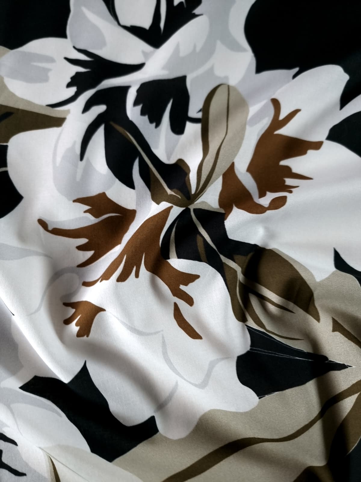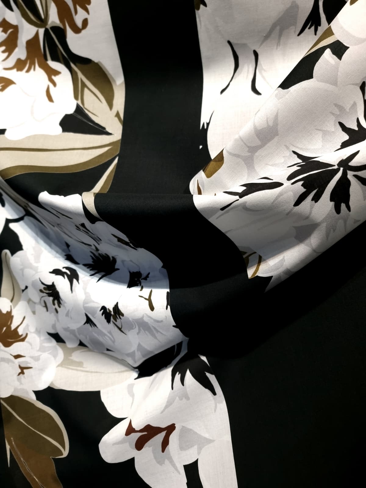 Tesatura din bumbac tip popline – sub formă de panou cu design floral, Alb / Kaki / Roscat / Negru