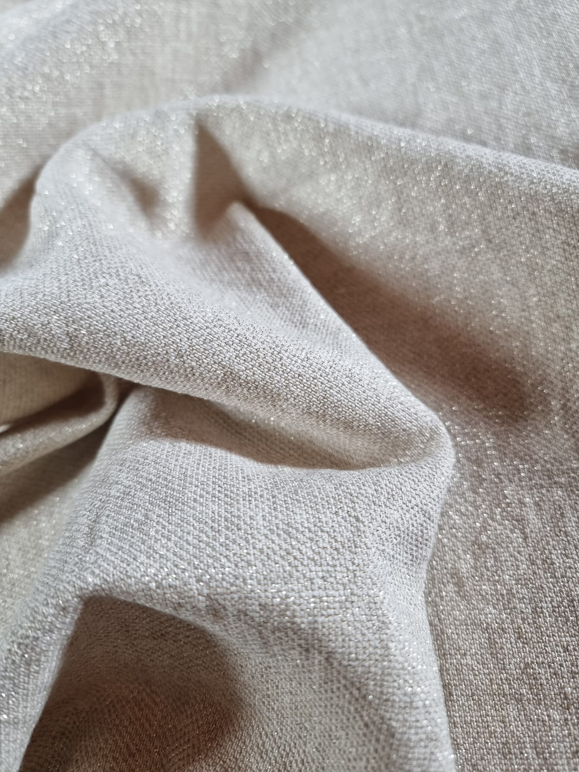 Tesatura din matase naturala cu insertii discrete de fir lame, Bej / Auriu patinat