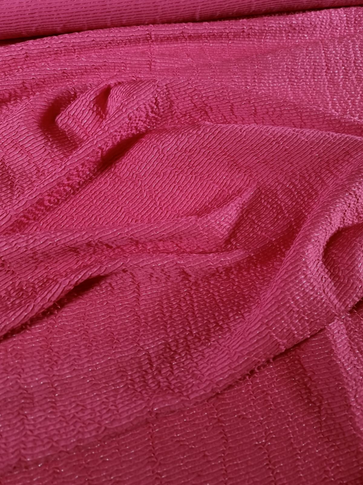 Tesatura din matase naturala – Jacquard cu efect plisat, Cyclamen Trandafiriu