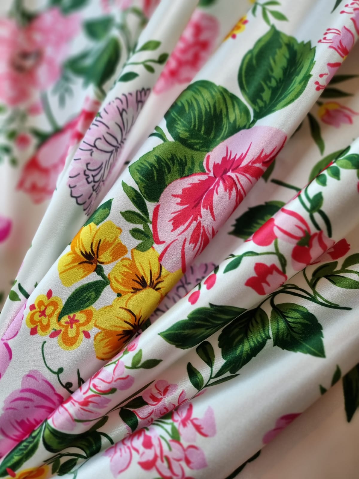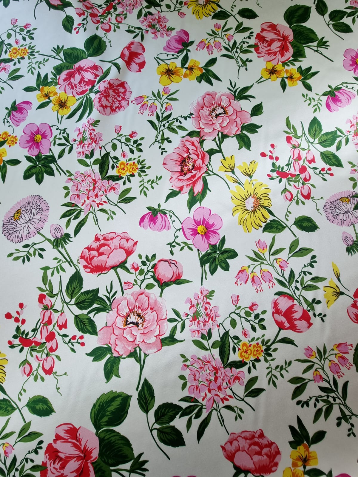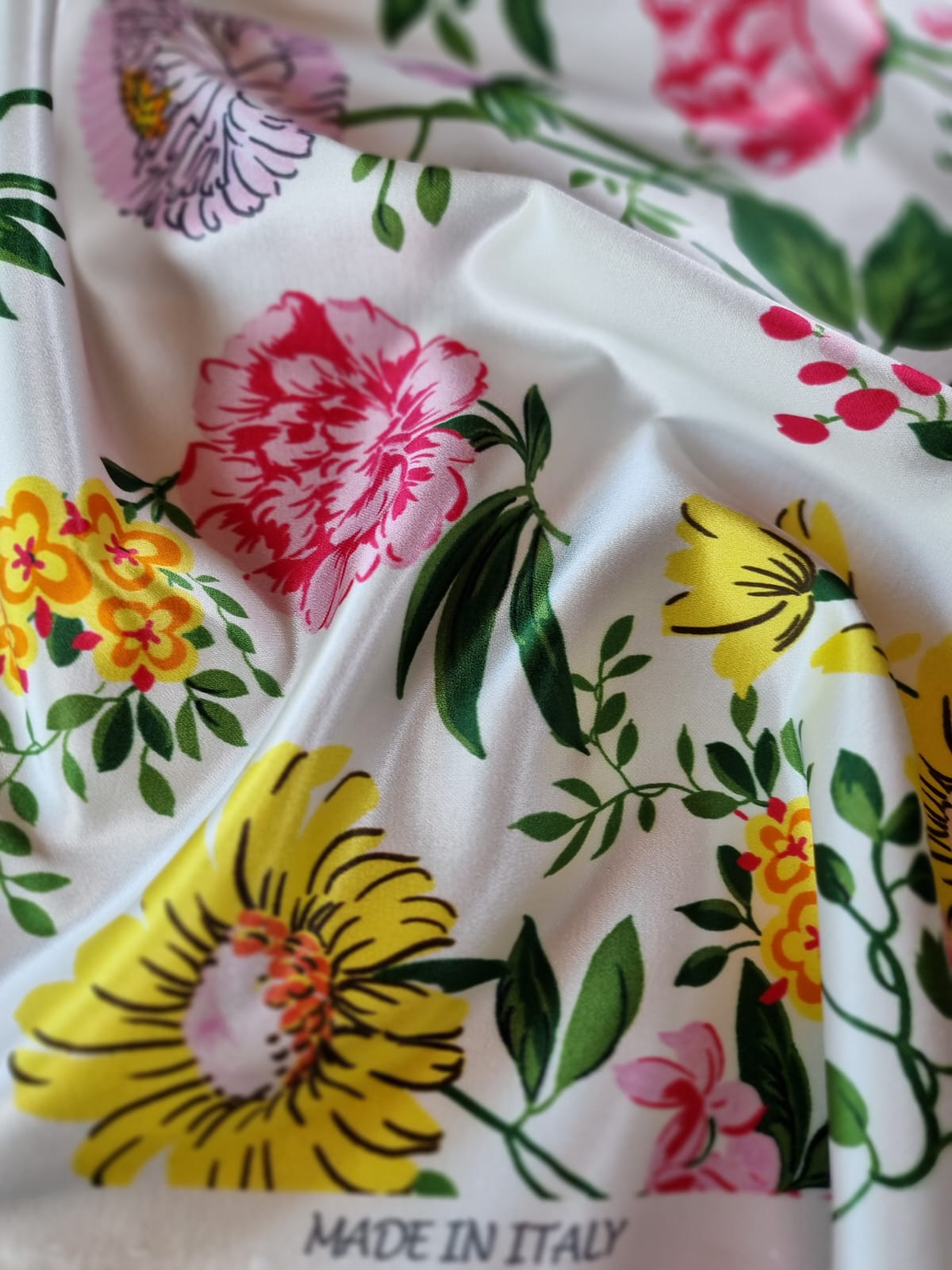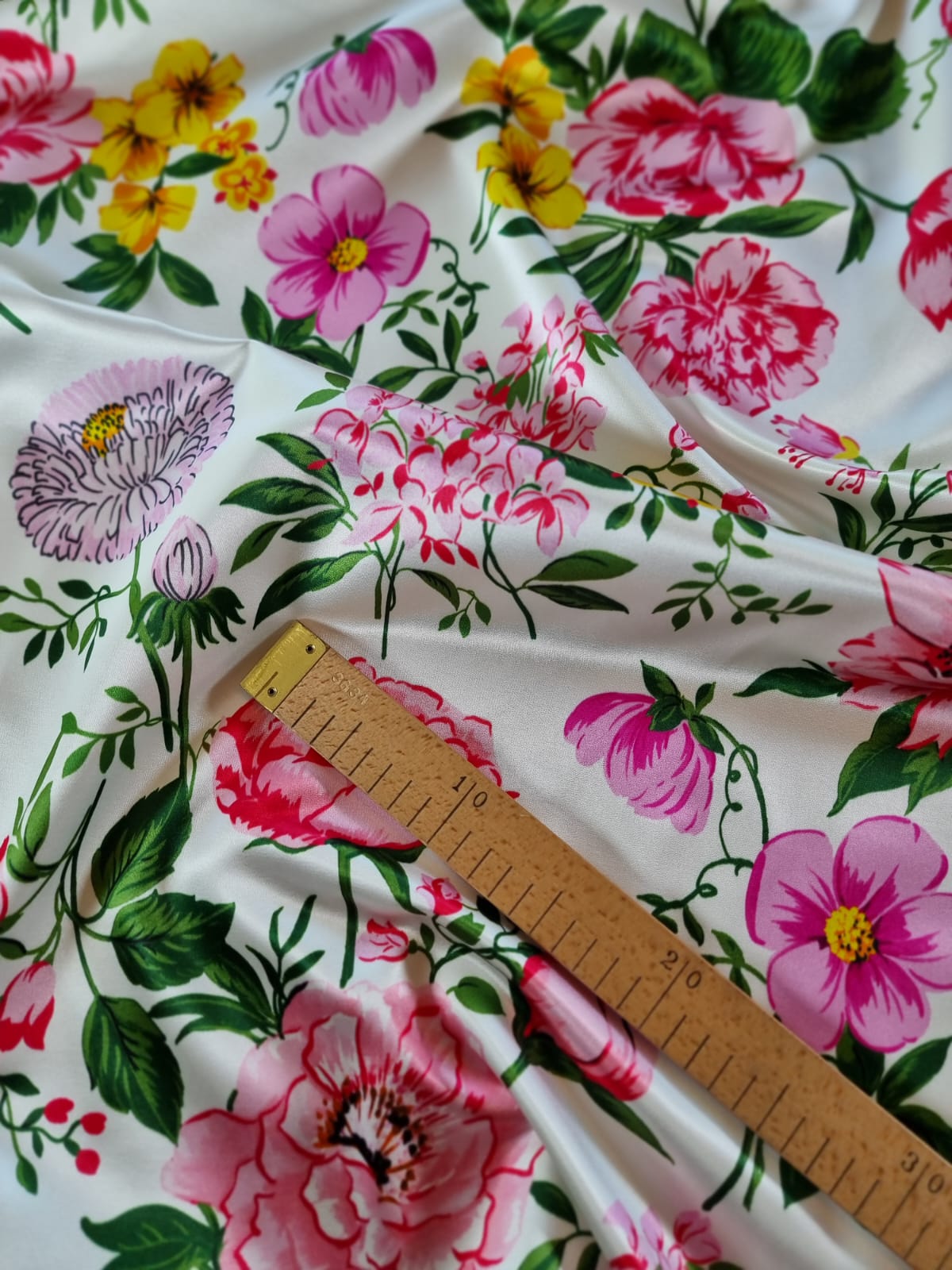 Tesatura duchesse din fibre naturale – imprimeu floral, Roz / Galben / Ivoire