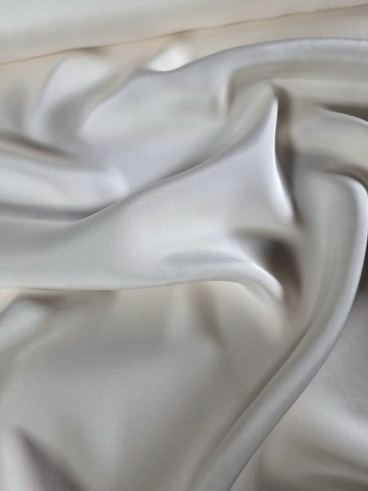Crepe sau Dublu crepe din mătase naturală sau alte fibre similar – este o țesătură luxoasă ce îmbină finețea absolută a mătăsii cu textura sofisticată a crepului. Cu o suprafață ușor granulată, dar incredibil de fluidă, acest material oferă un drapaj impecabil și un joc subtil de lumină și umbre. Perfect pentru rochii elegante, bluze rafinate și costume couture, dublu crepe-ul din mătase naturală este alegerea ideală pentru cei care caută o combinație între delicatețe, structură și rafinament atemporal.