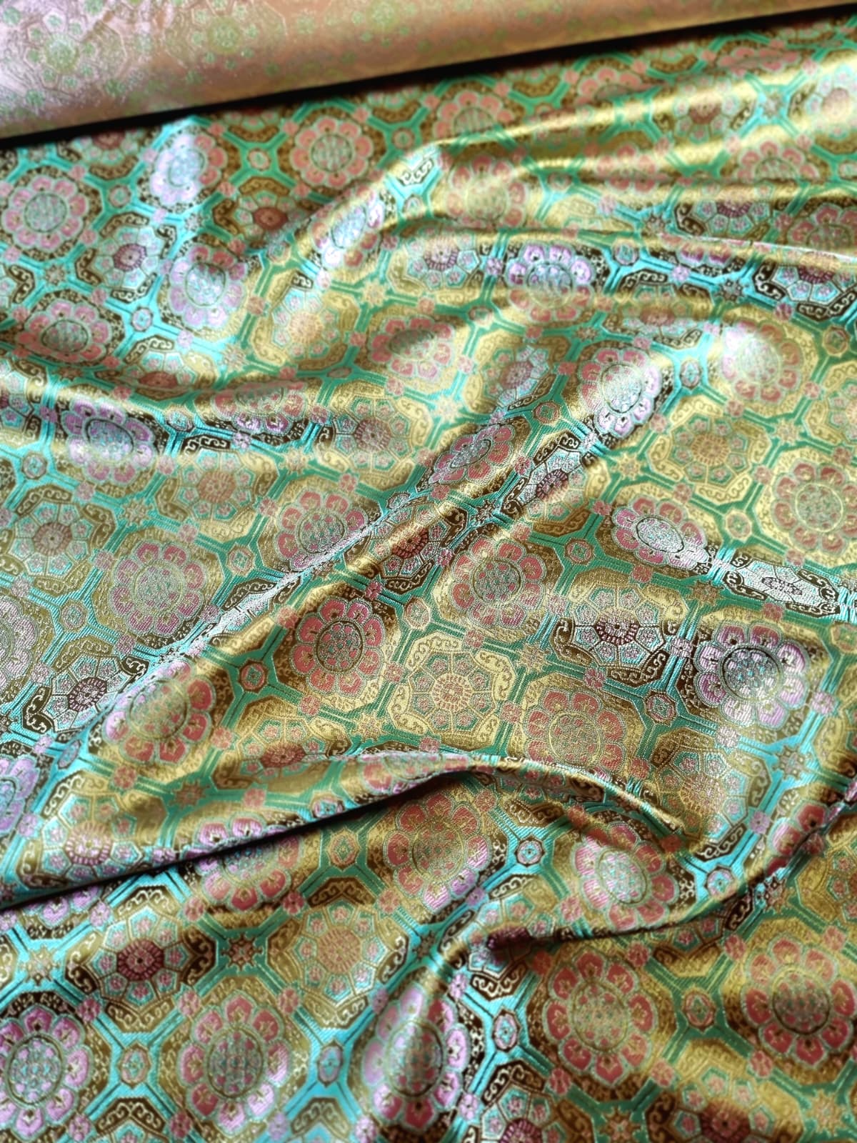 Tesatura Jacquard cu motive geometrice, Vernil / Roz