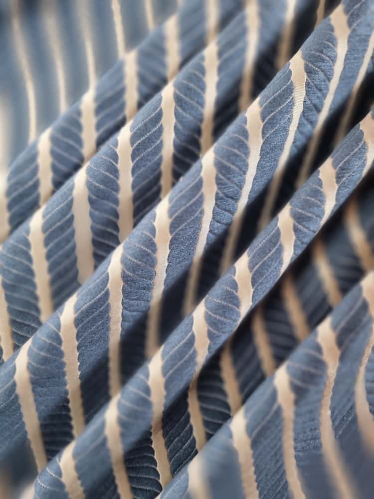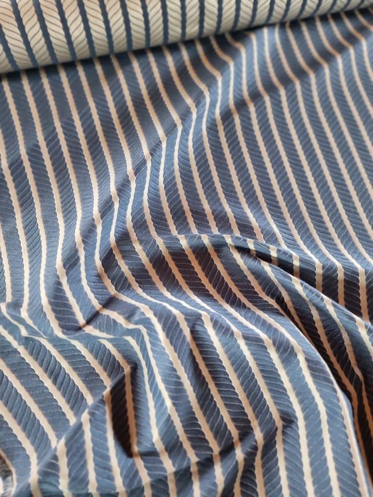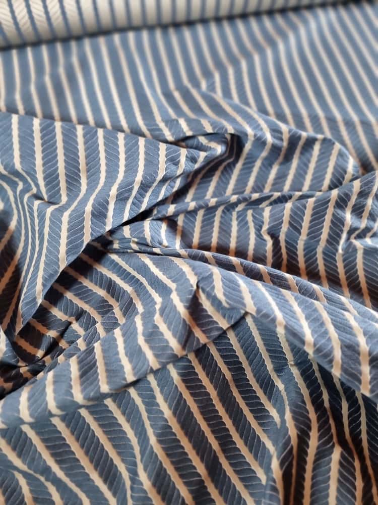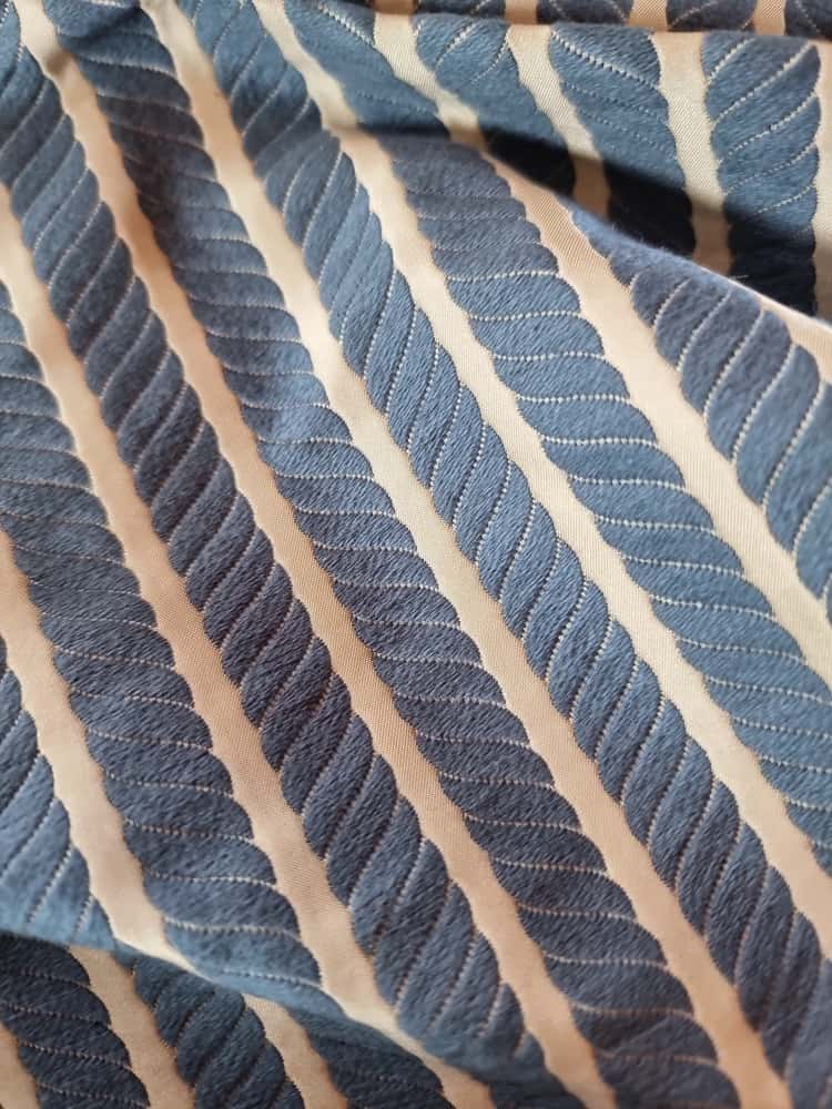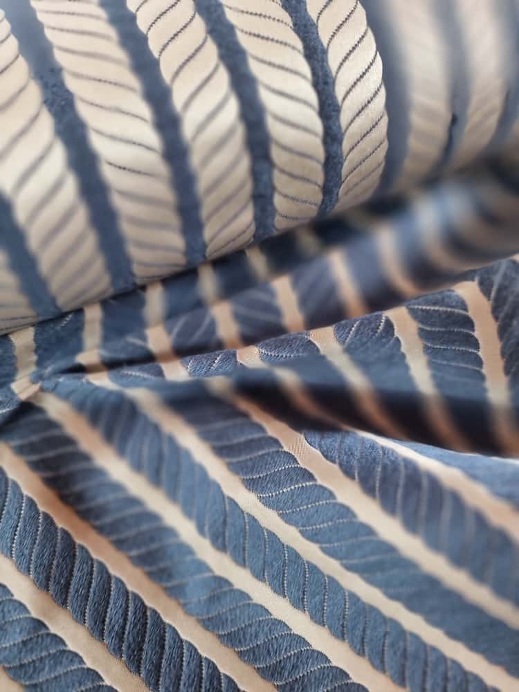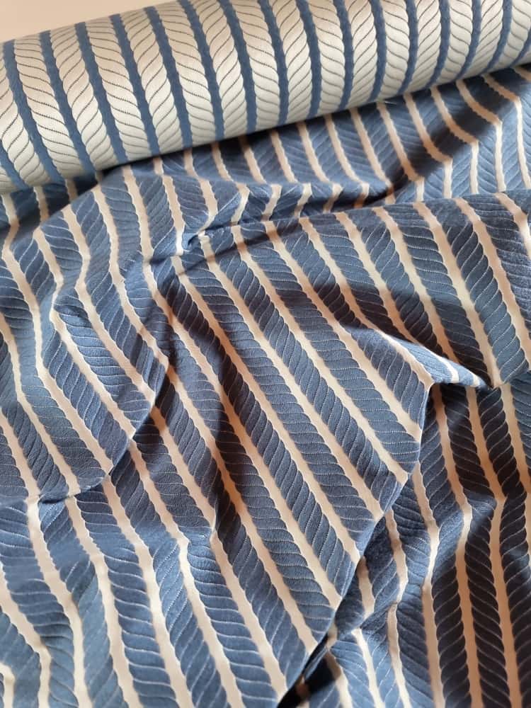Tesatura Jacquard – model cu dungi spiralate, Albastru / Ivoire