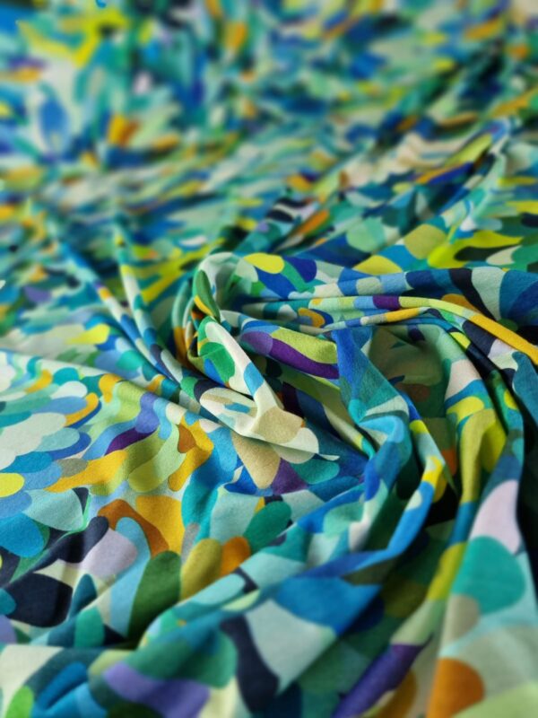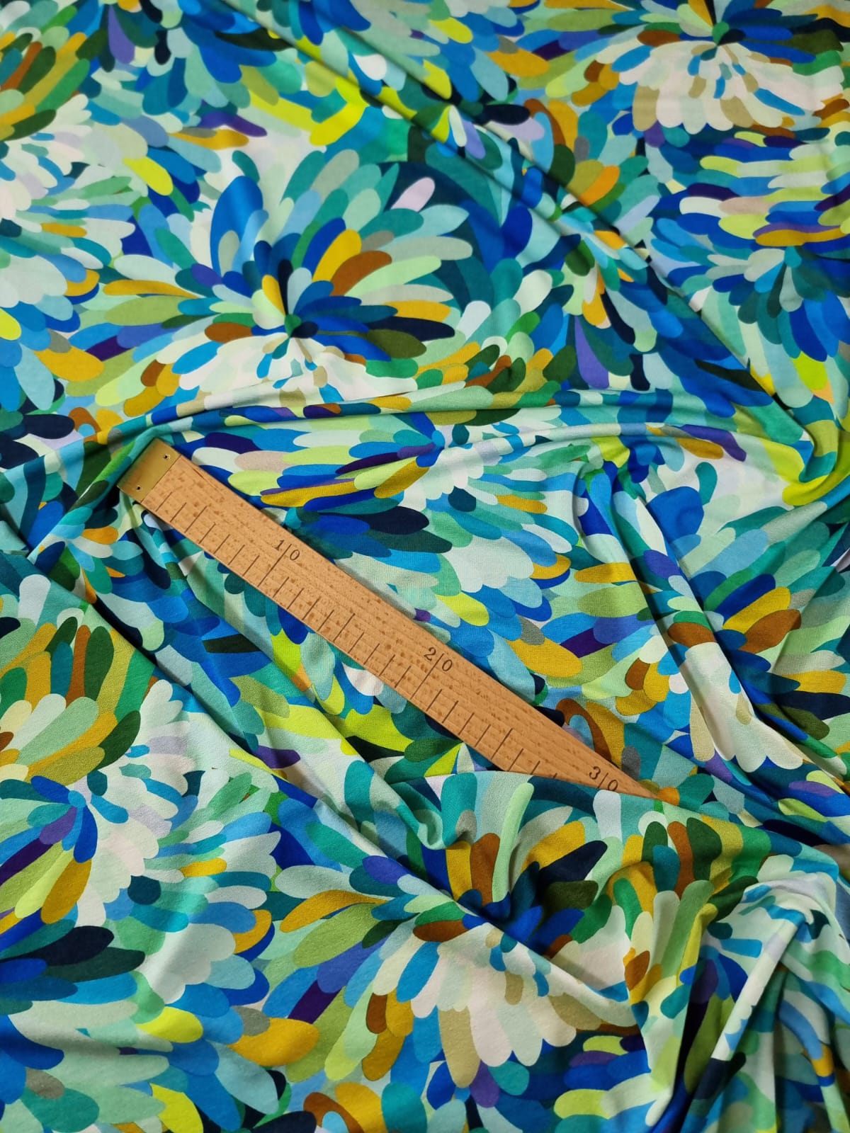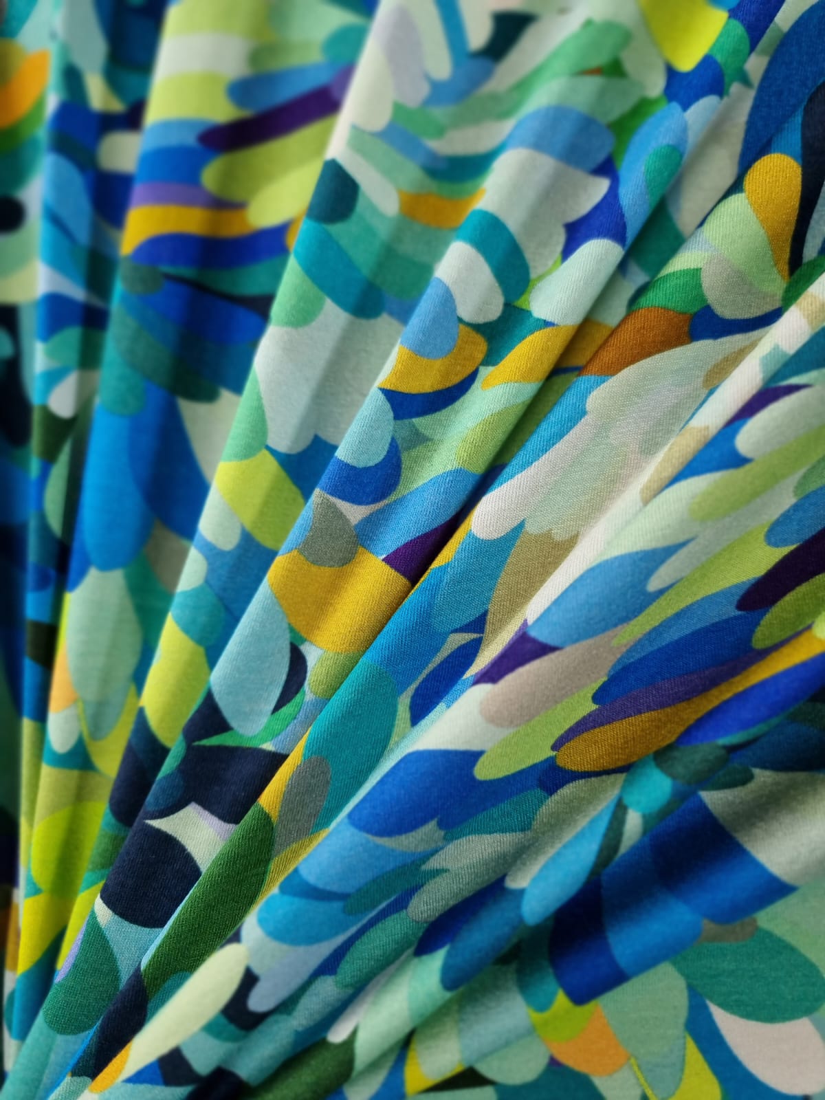 Tesatura jerse din viscoza cu imprimeu abstract – fantasy, Albastru/Verde
