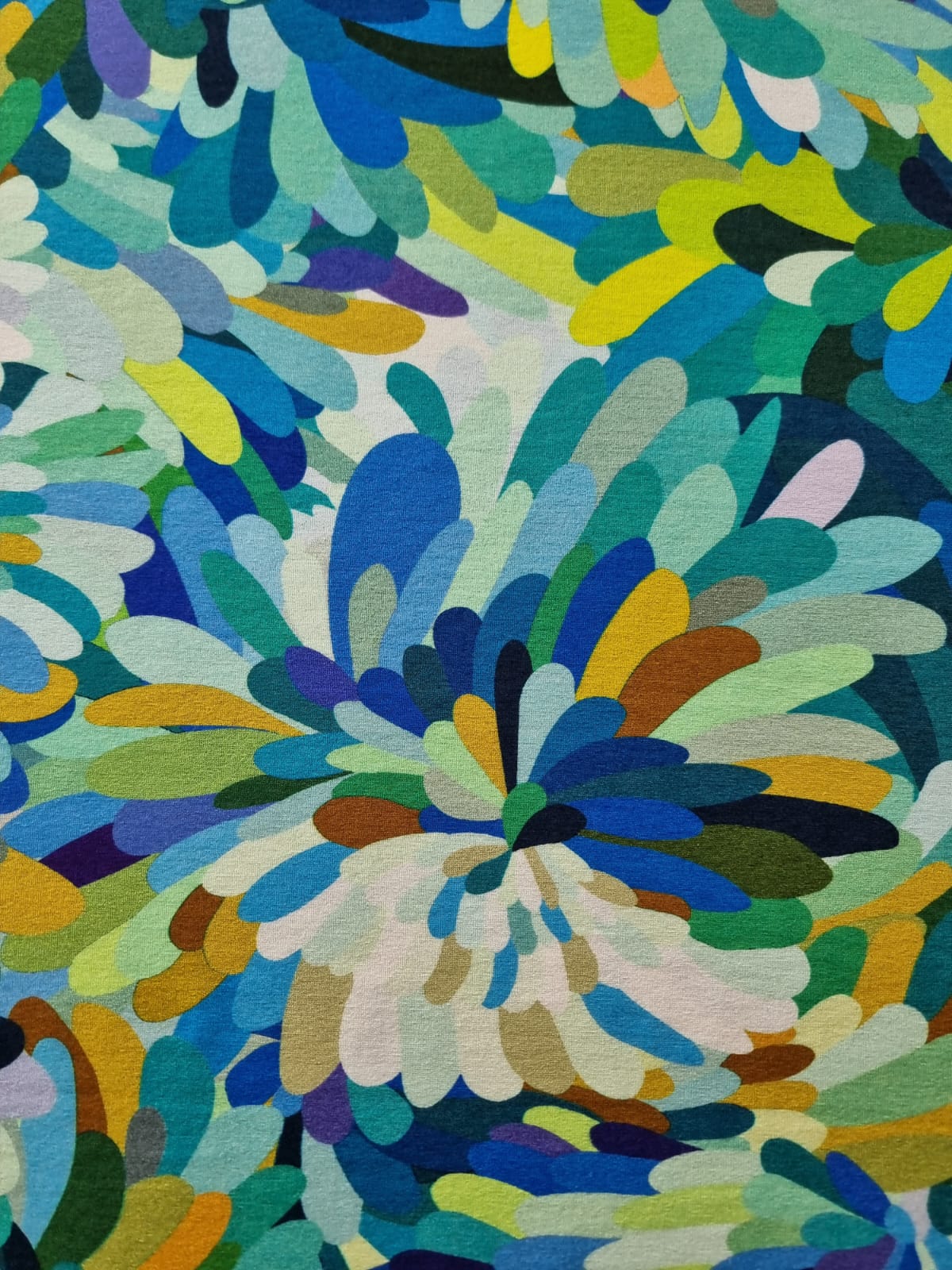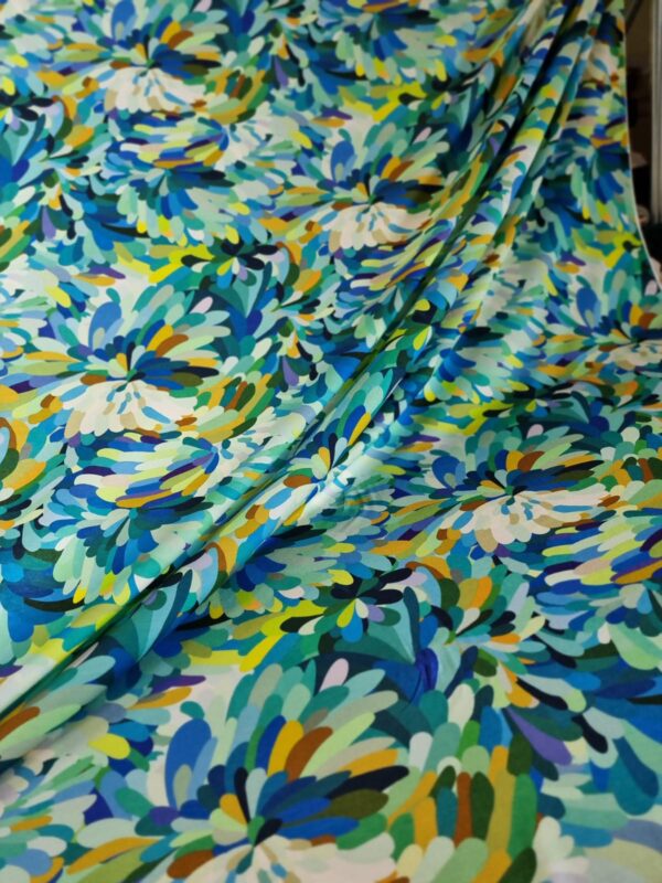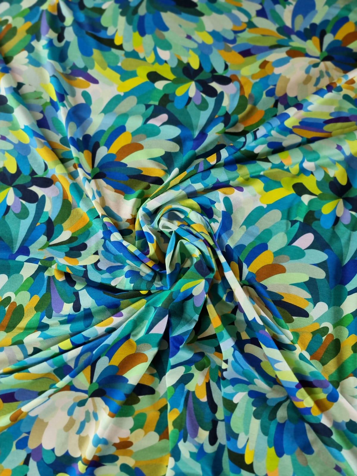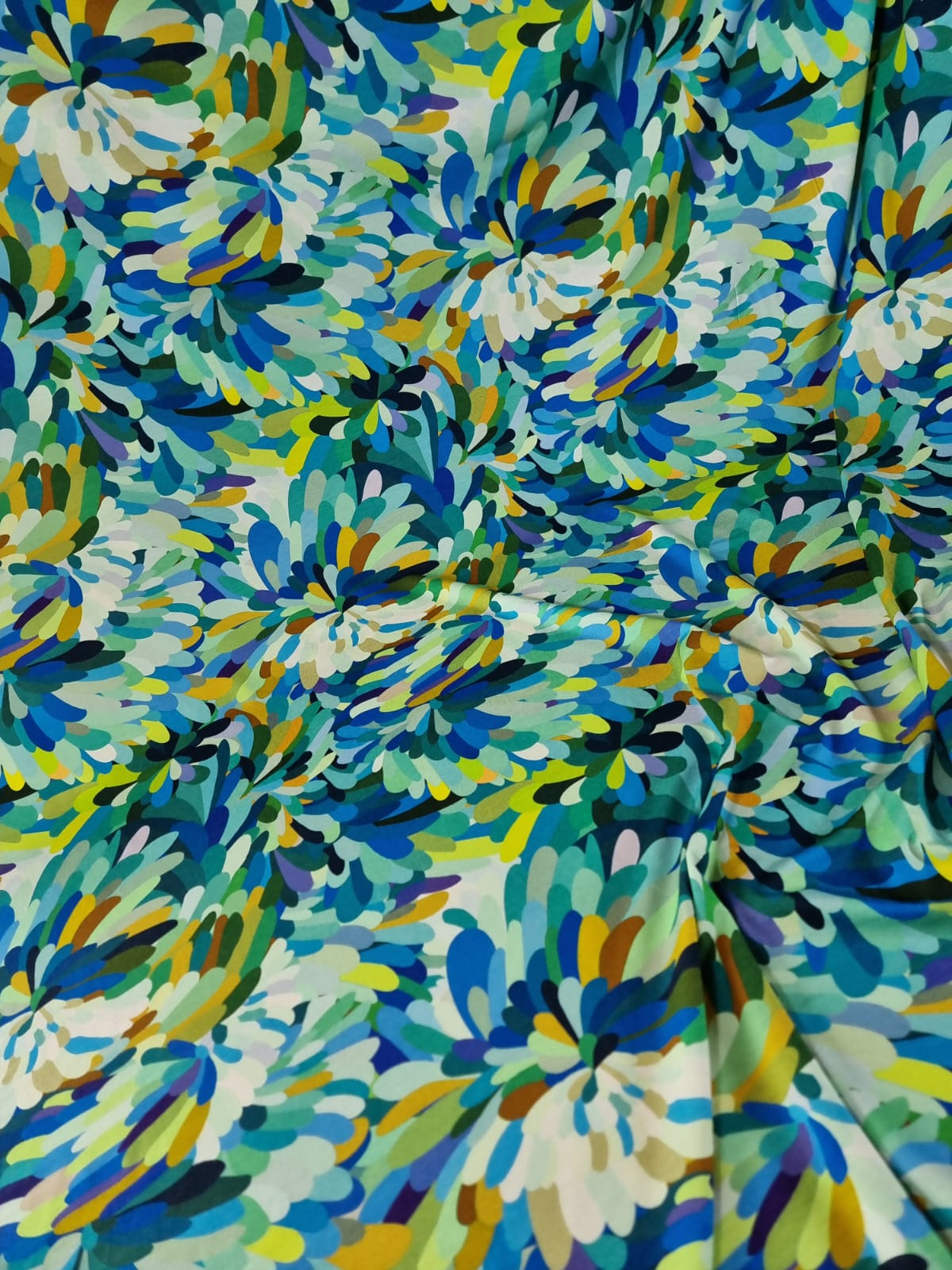 Tesatura jerse din viscoza cu imprimeu abstract – fantasy, Albastru/Verde