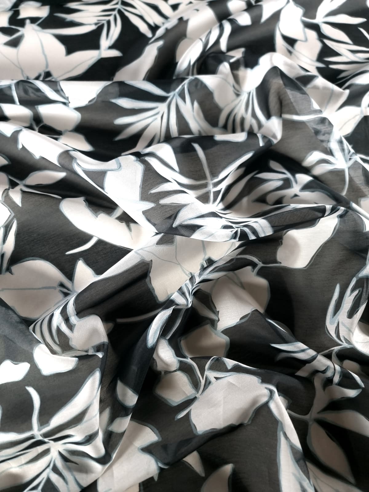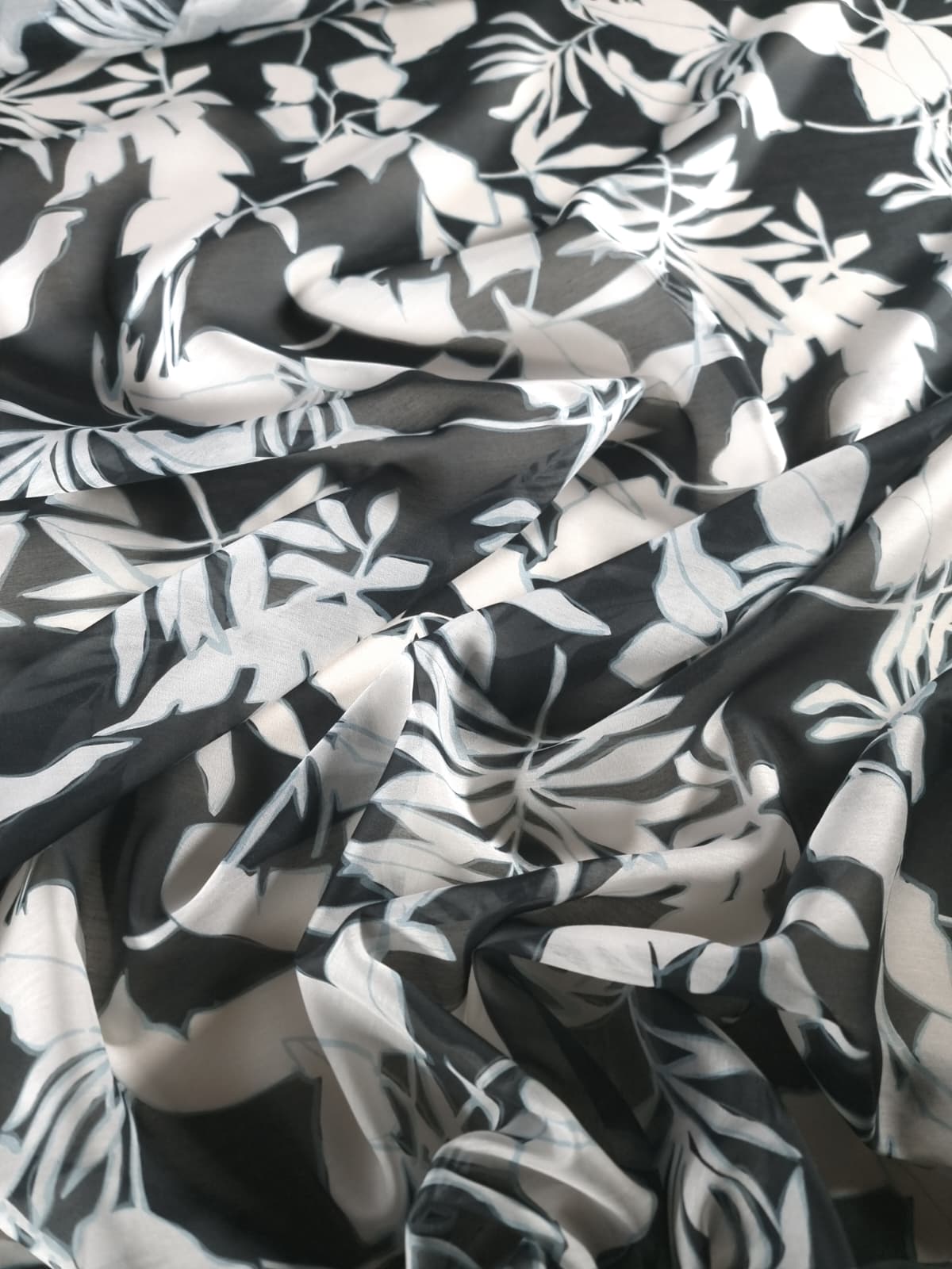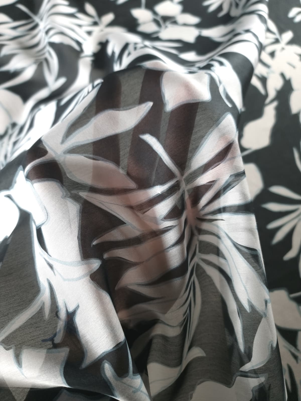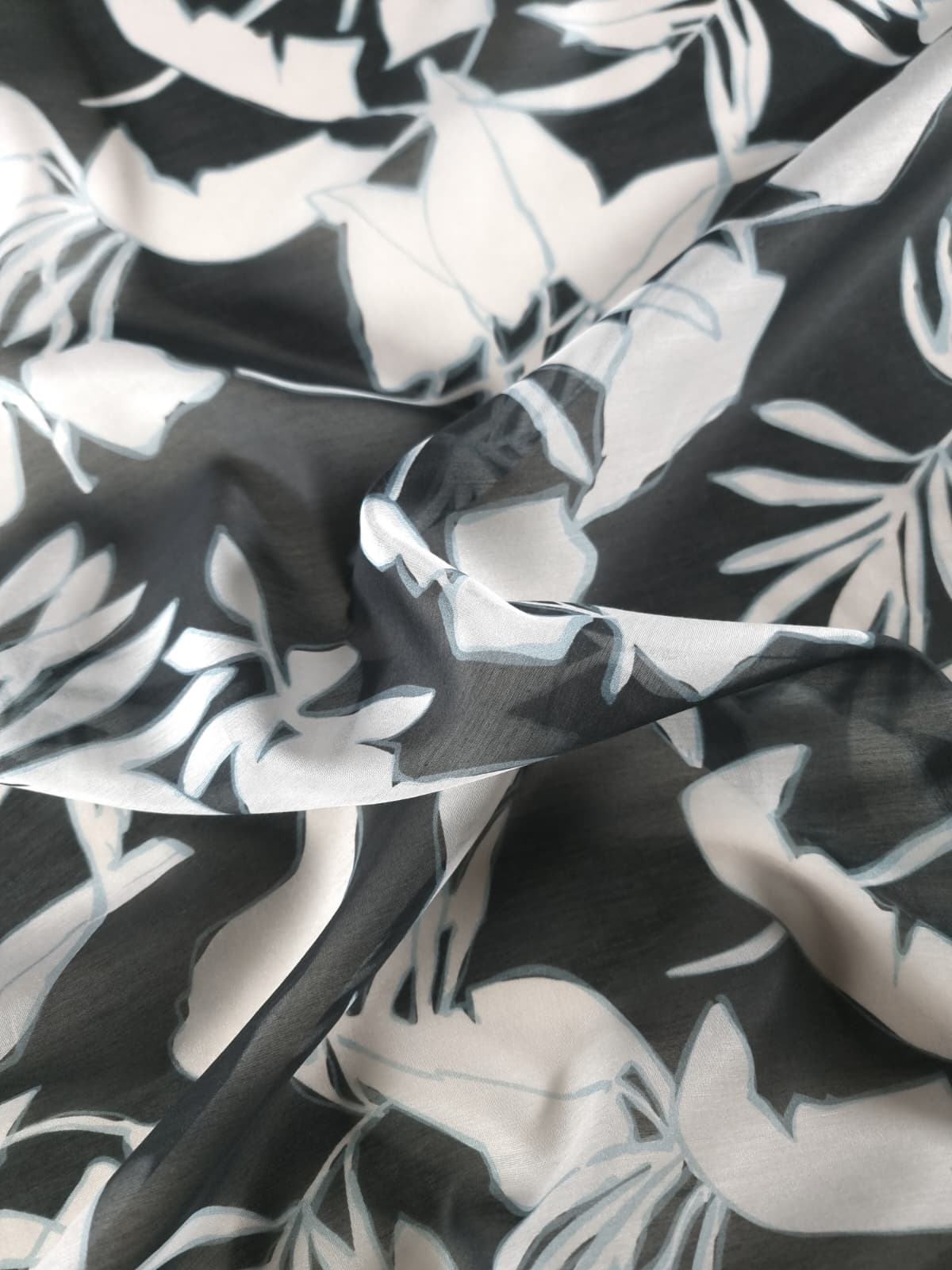 Tesatura mixtă din matase naturala cu bumbac – design Exotic, Alb / Negru