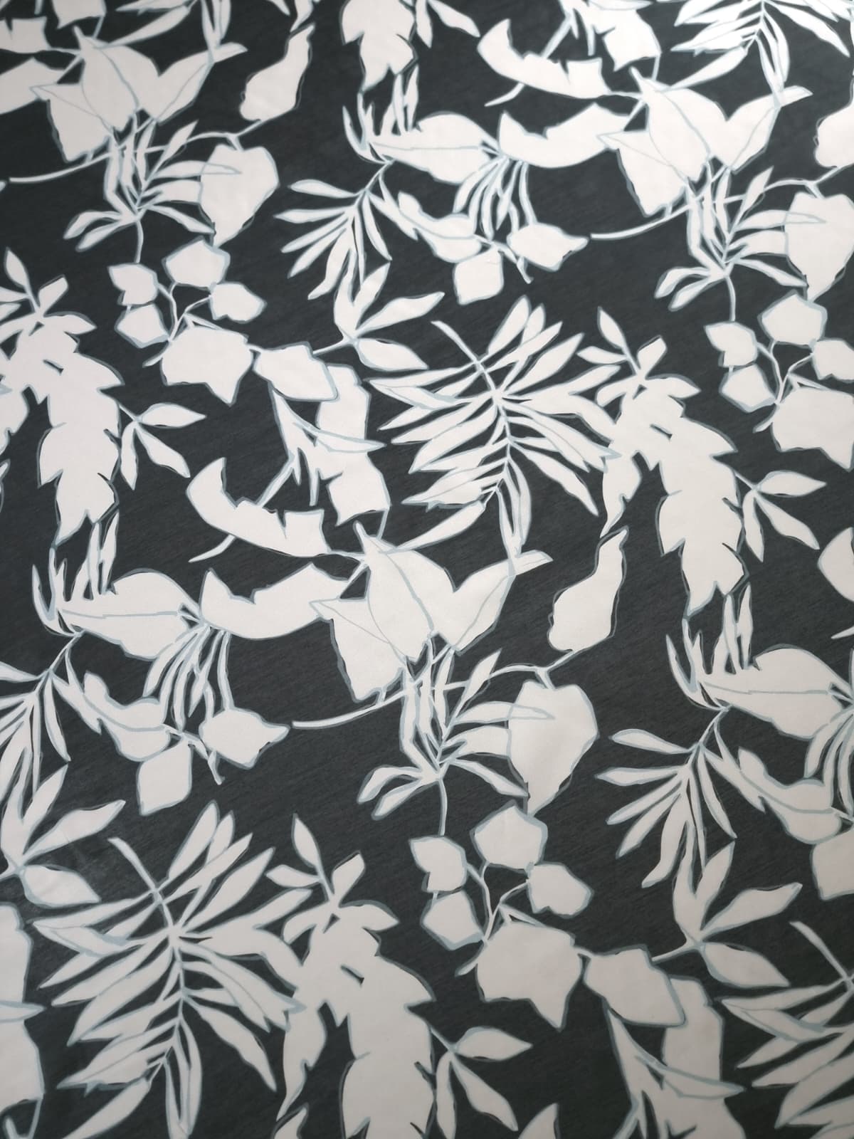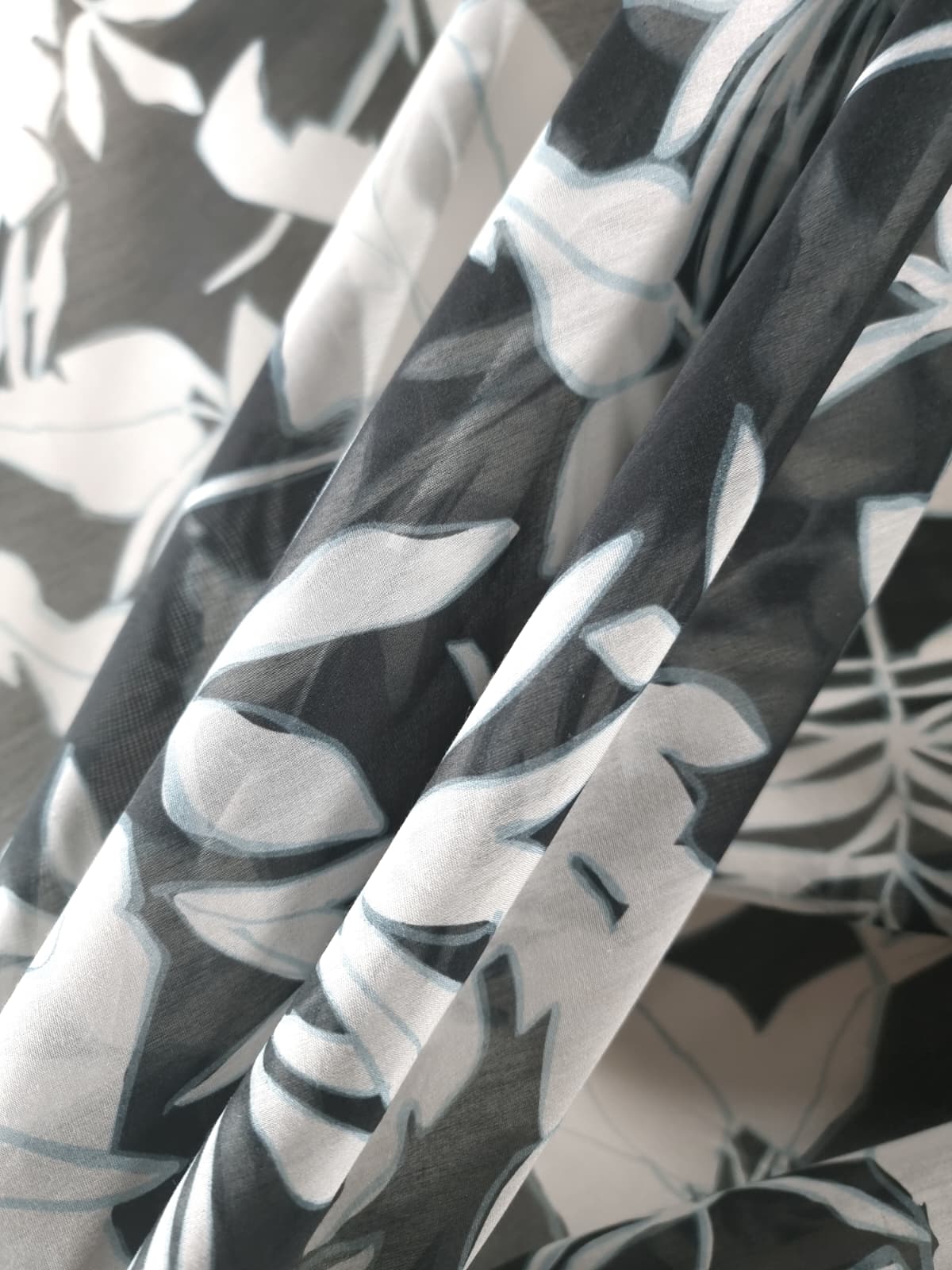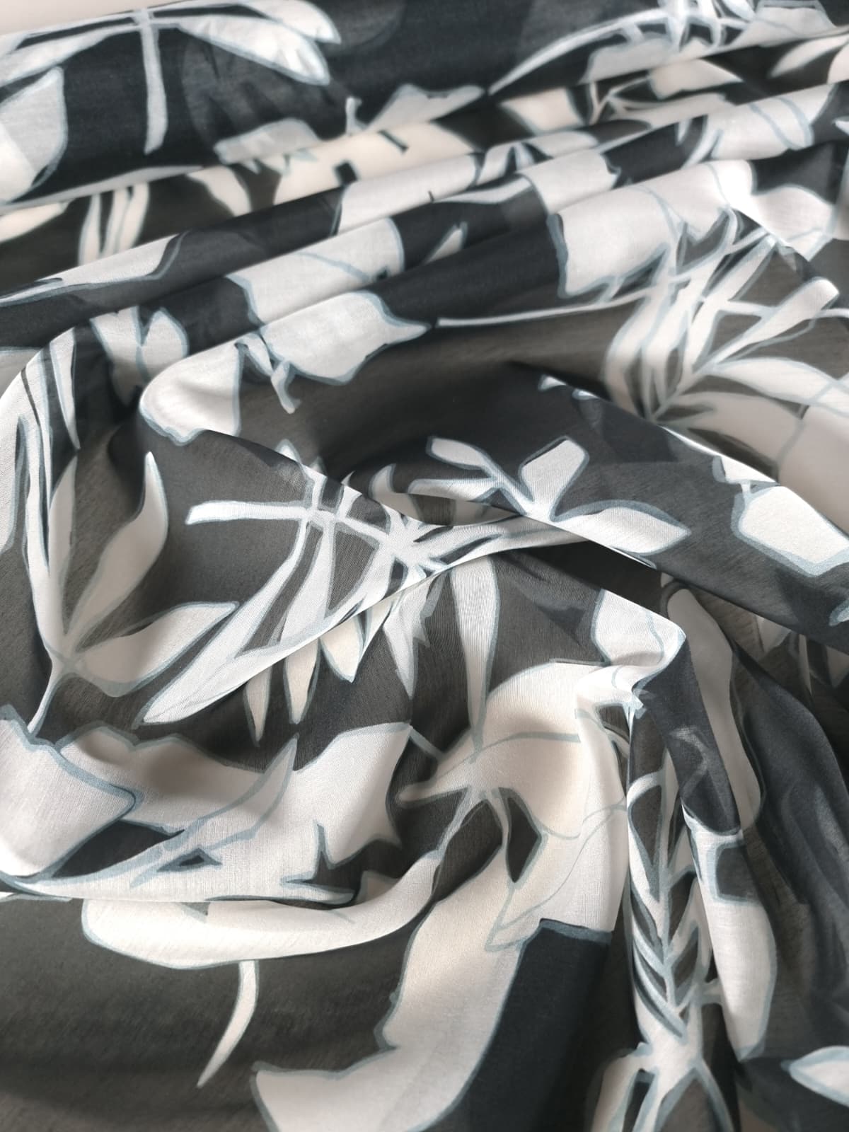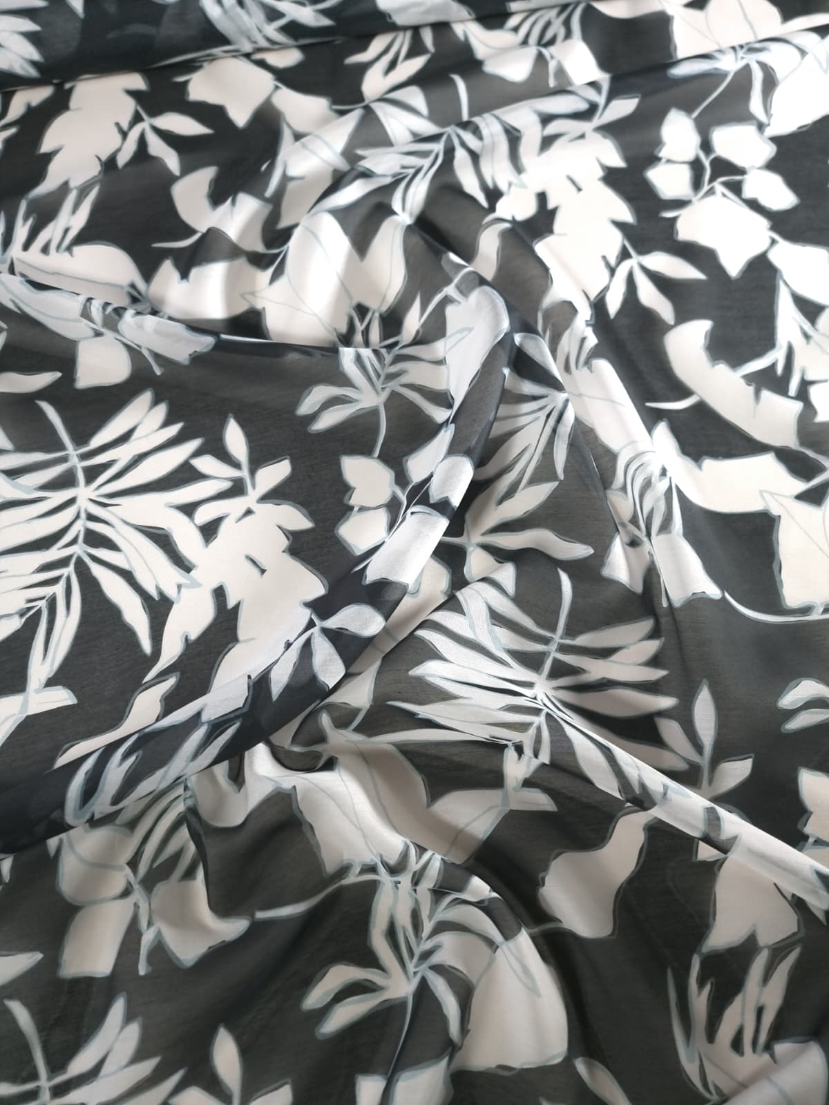 Tesatura mixtă din matase naturala cu bumbac – design Exotic, Alb / Negru