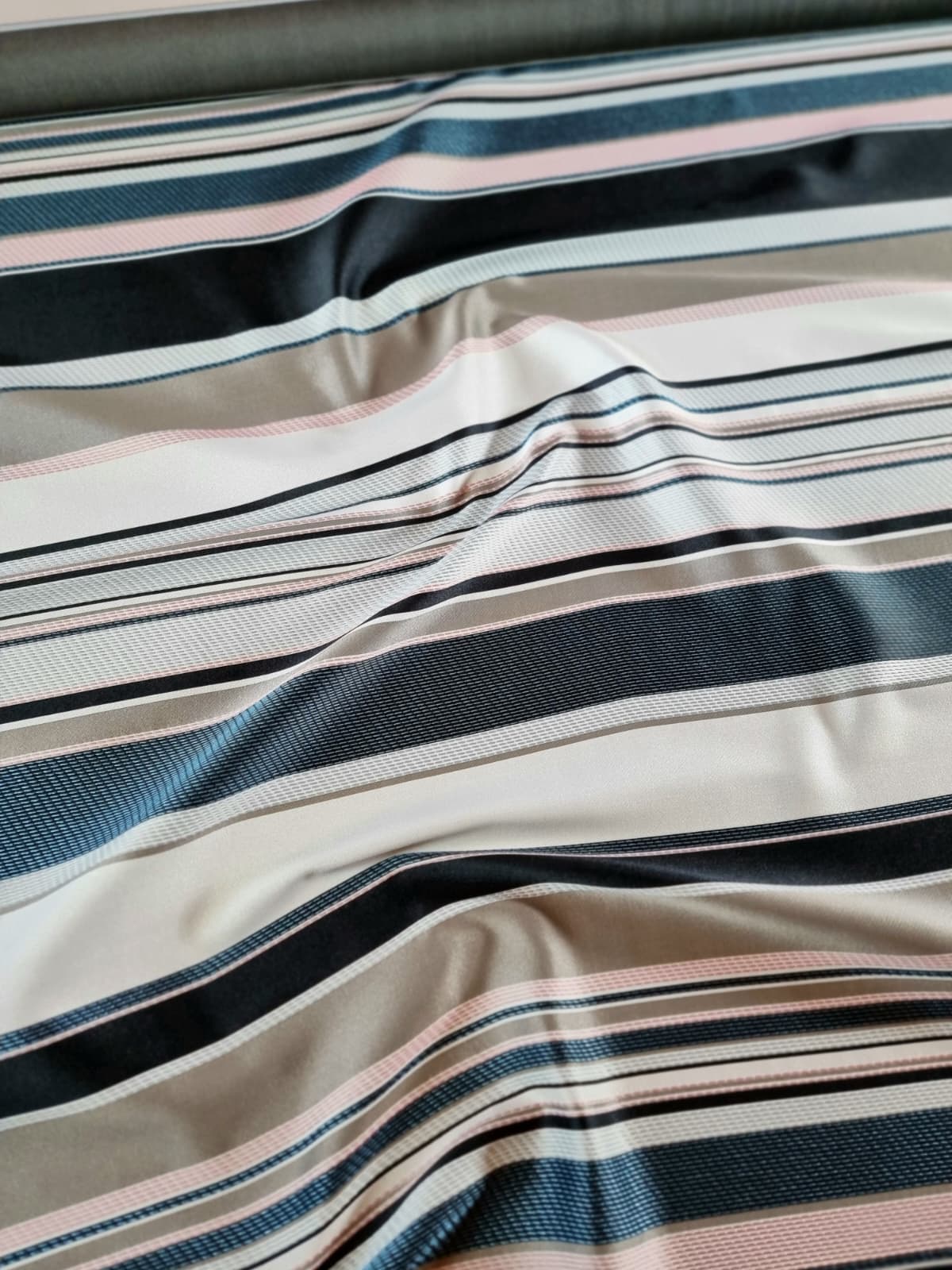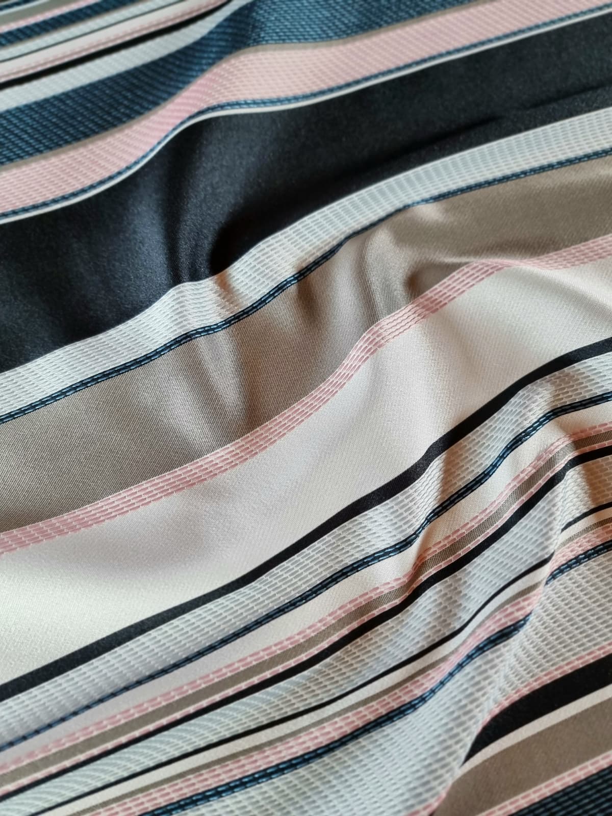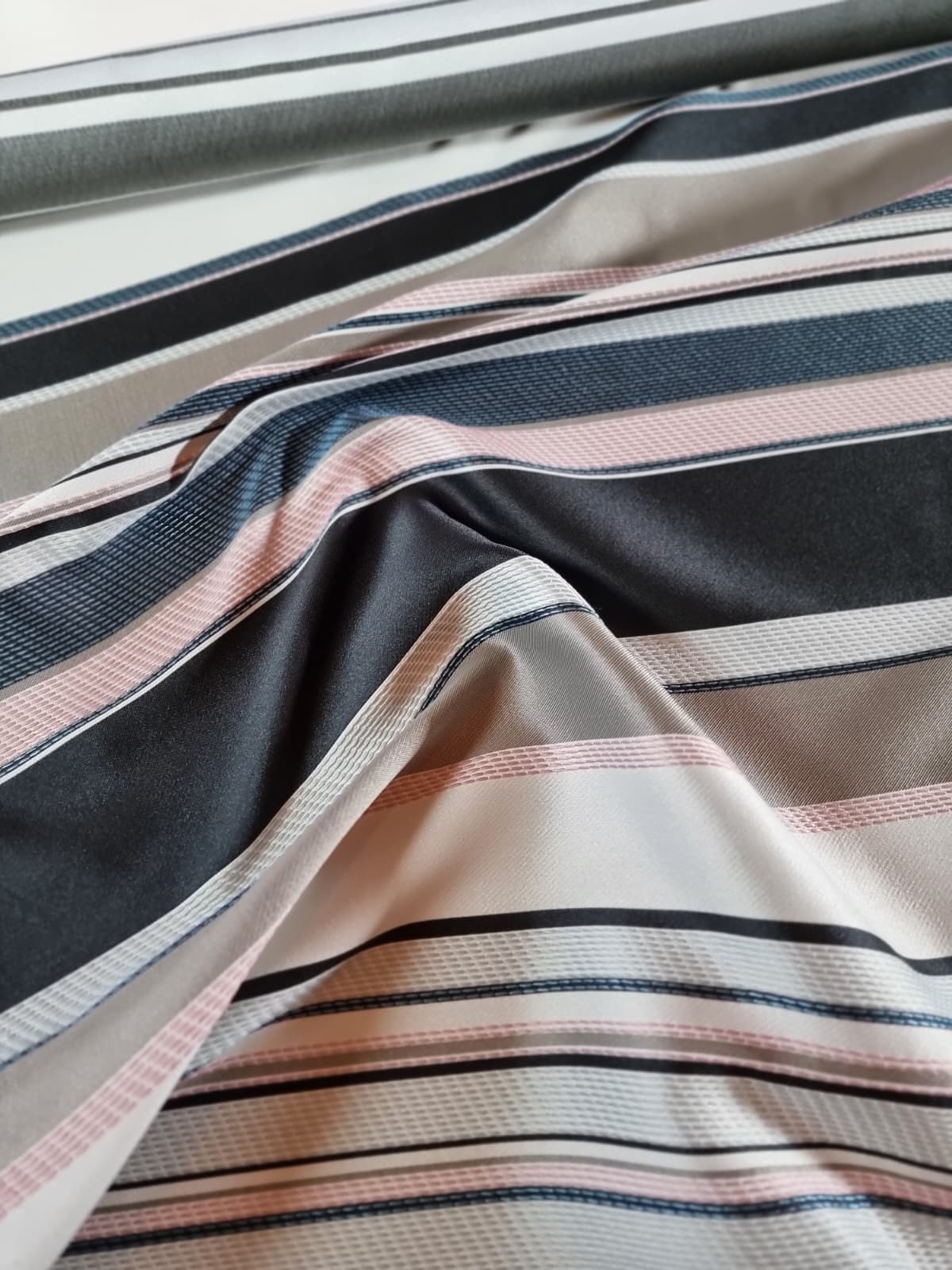 Tesatura plină tip Jacquard, model cu dungi Negre / Bej / Roz