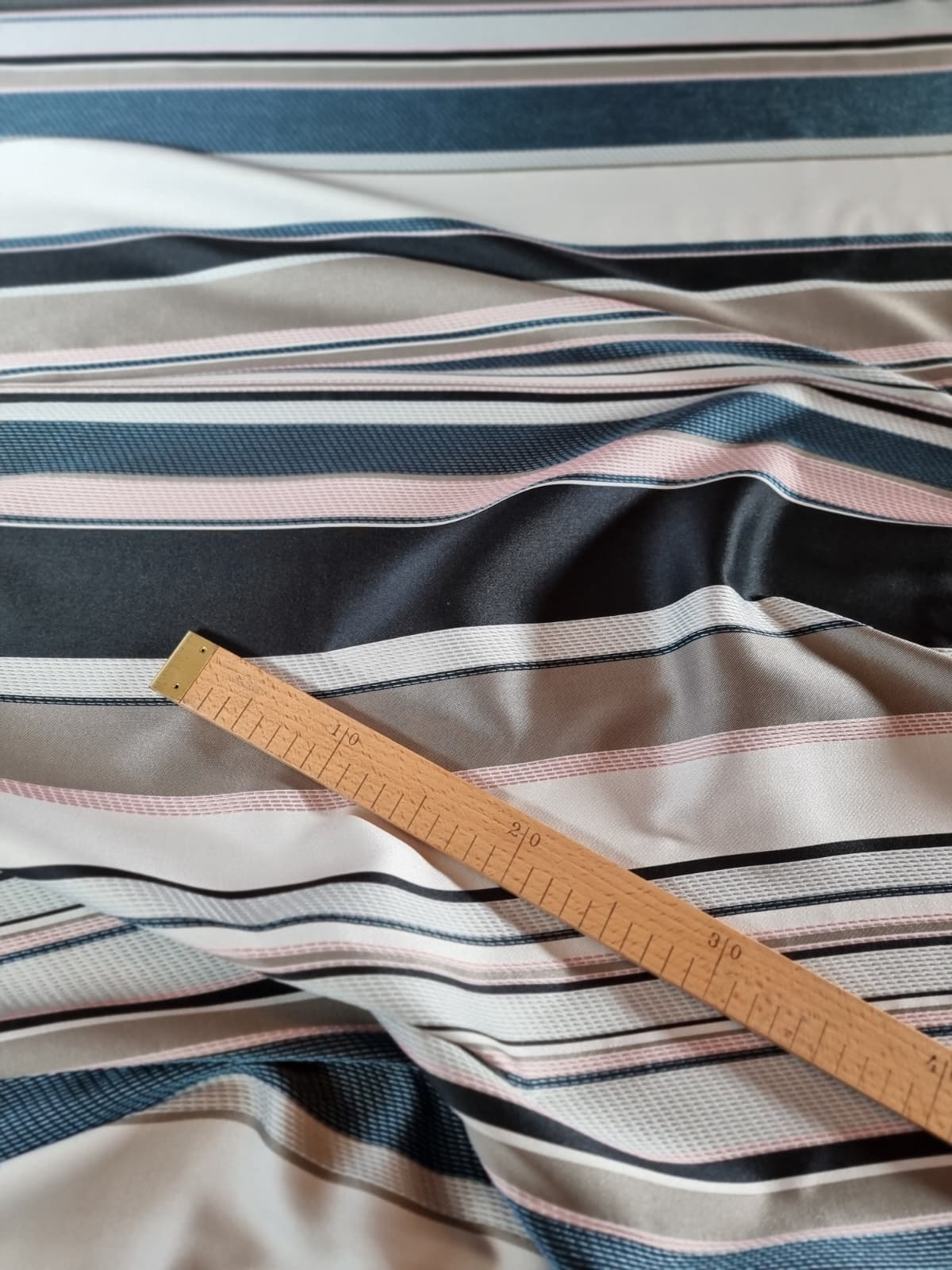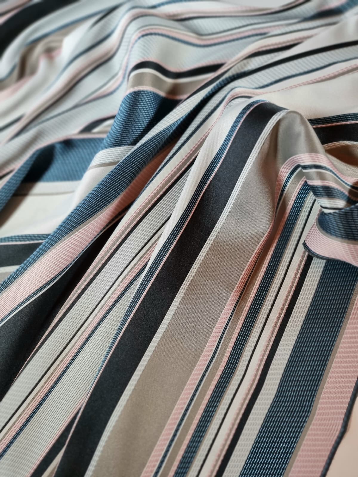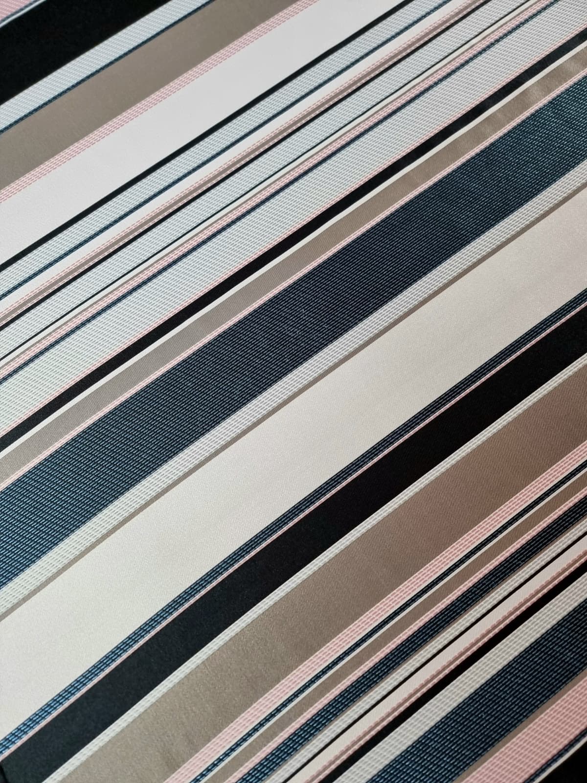 Tesatura plină tip Jacquard, model cu dungi Negre / Bej / Roz