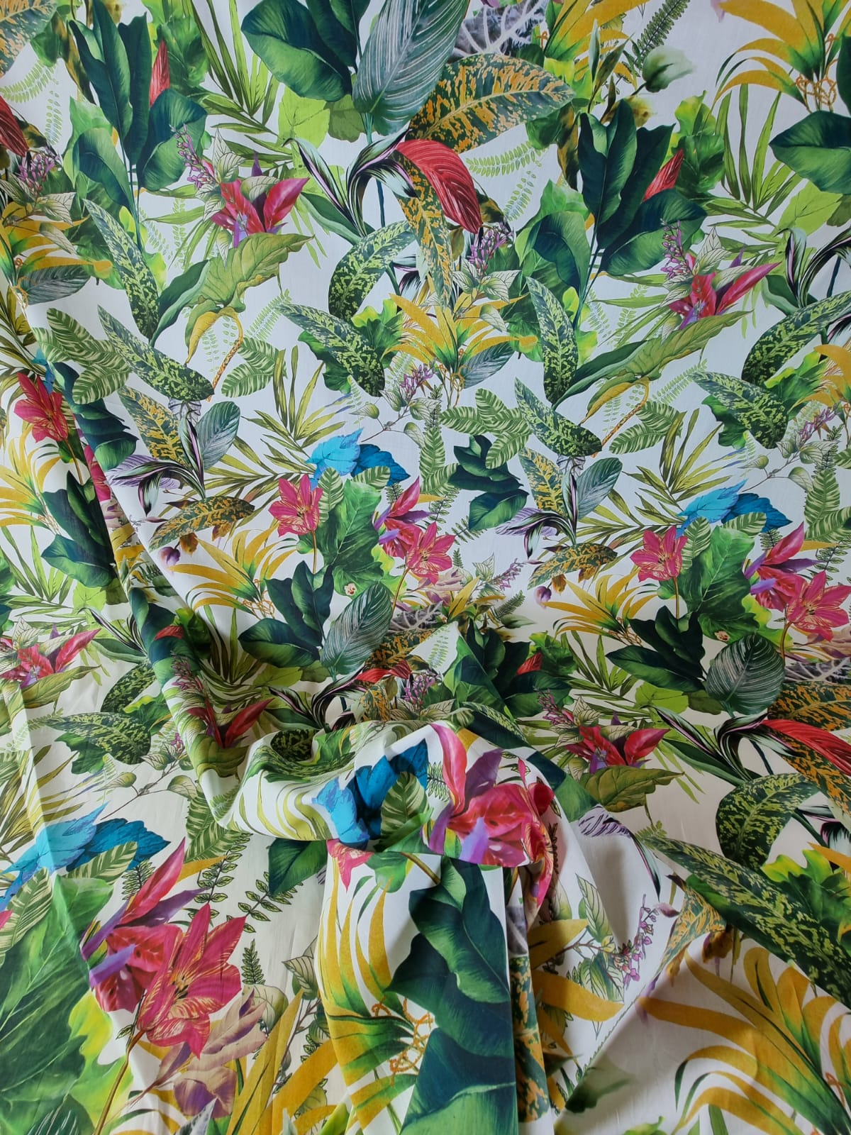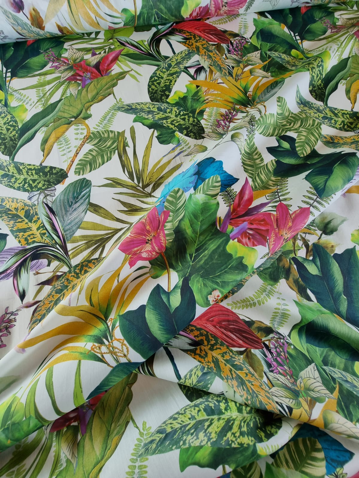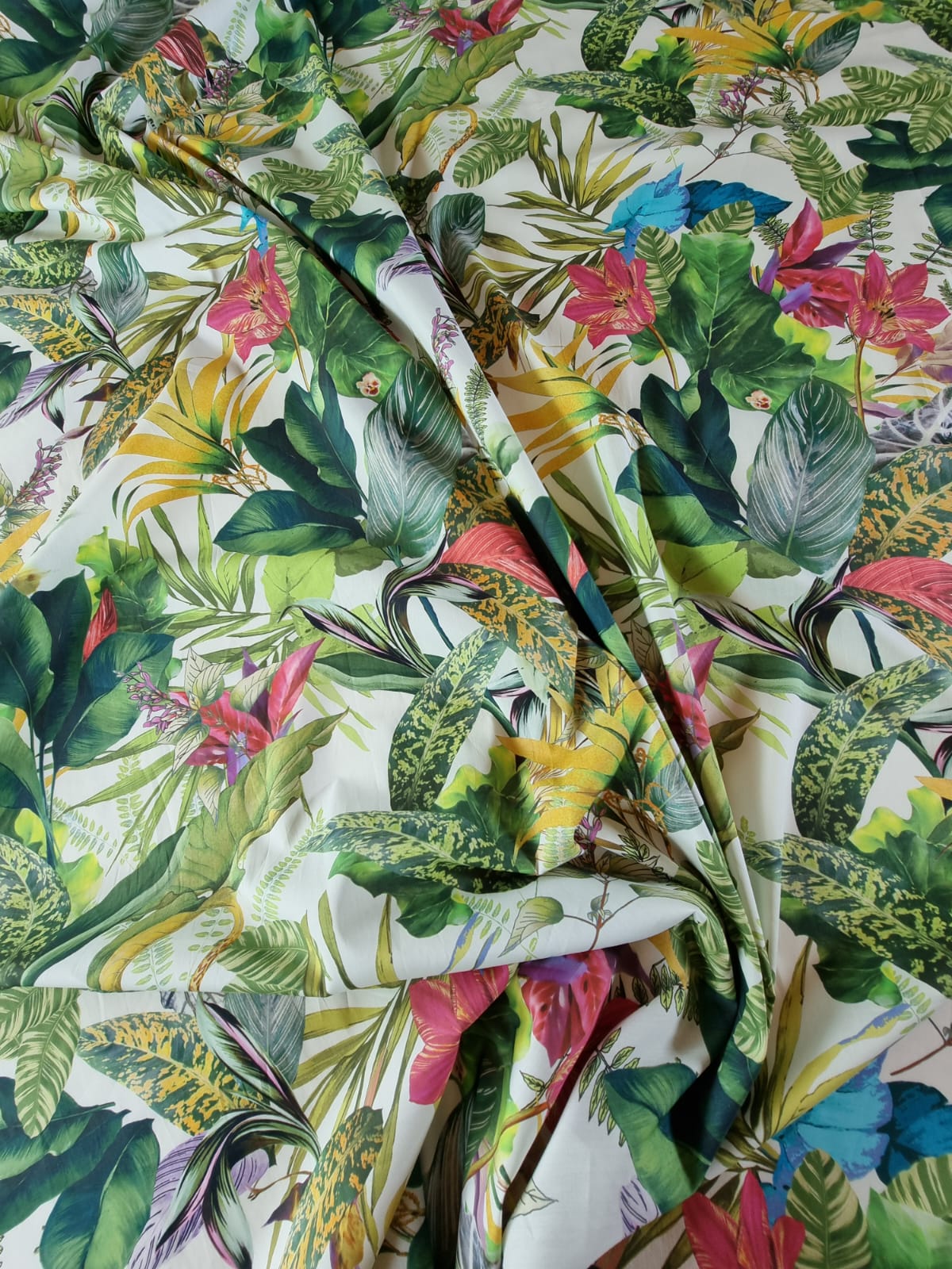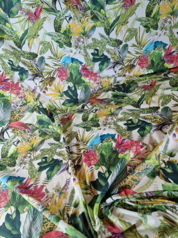 Tesatura Poplin fina din bumbac cu imprimeu exotic, Multicolor