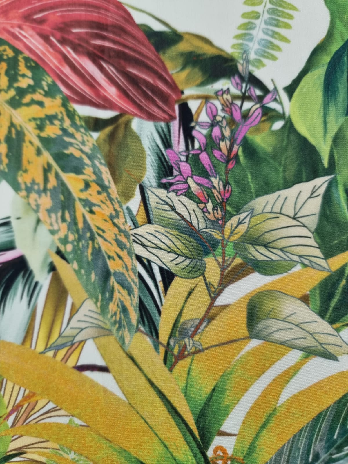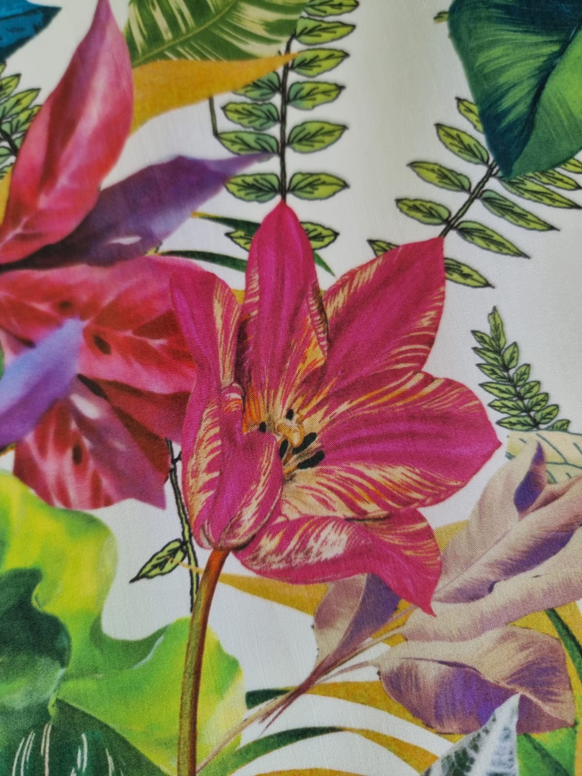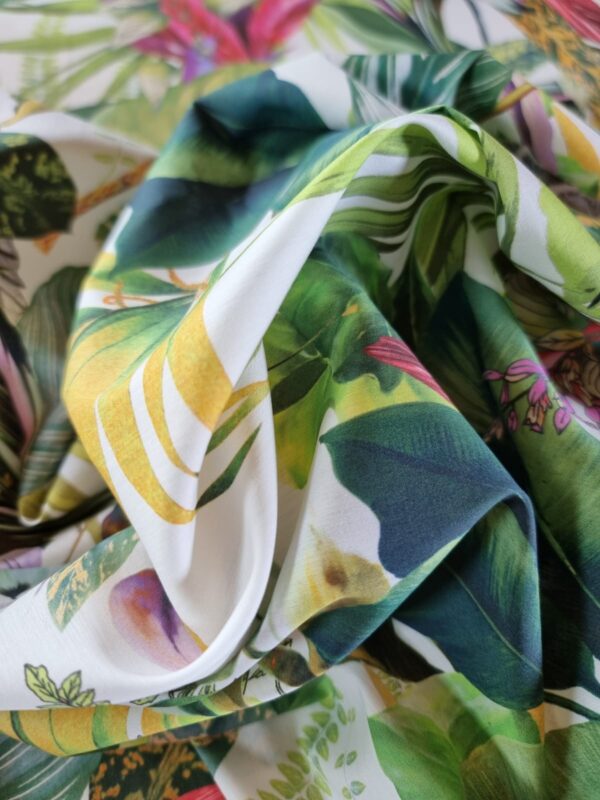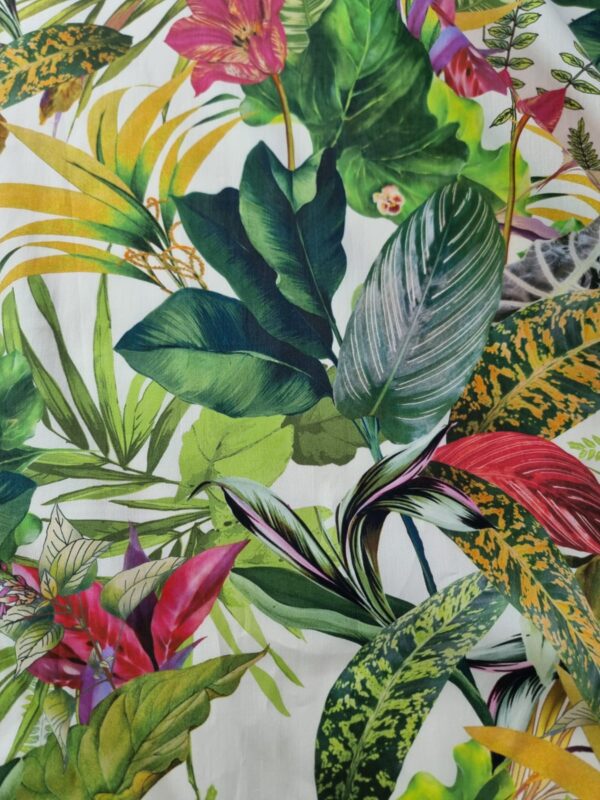Tesatura Poplin fina din bumbac cu imprimeu exotic, Multicolor