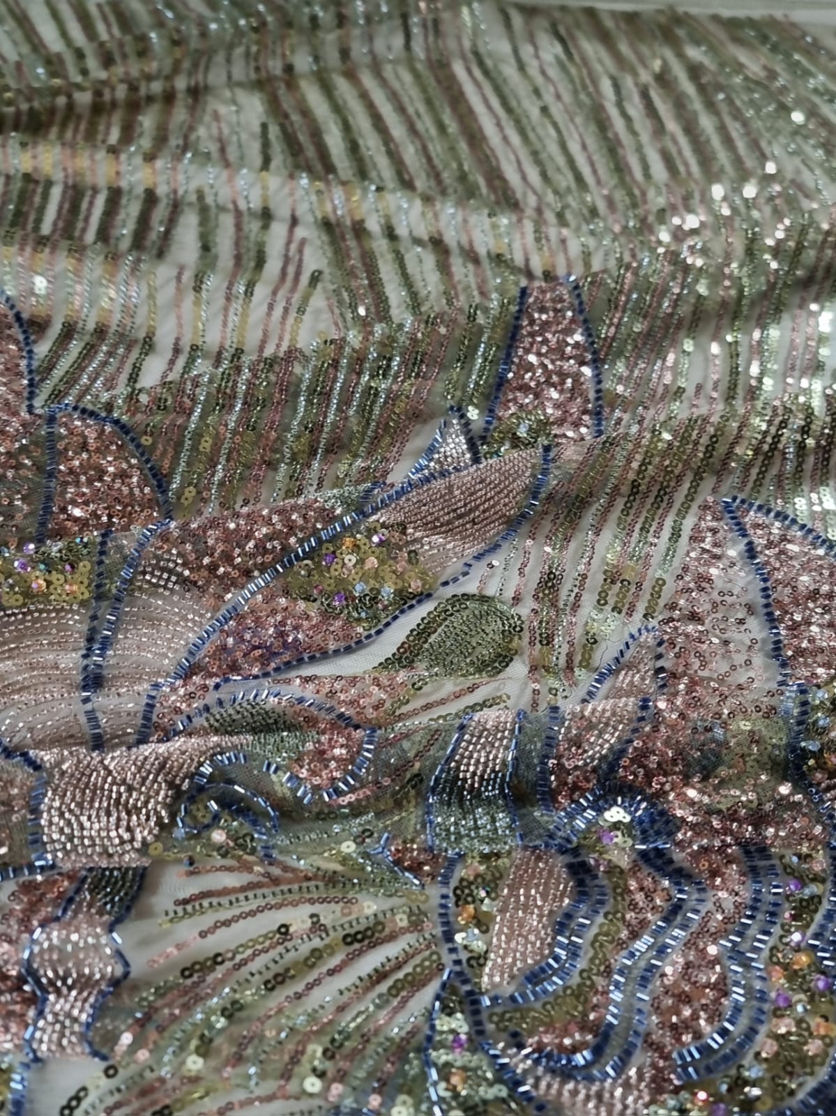 Tesatura acoperita cu paiete prin coasere manuala sau mecanica. In functie de modelul de aplicare se obtin modele spectaculoase , stralucitoare. Paietele sunt mici forme confectionate din metal, plastic sau sticla cu rol decorativ.